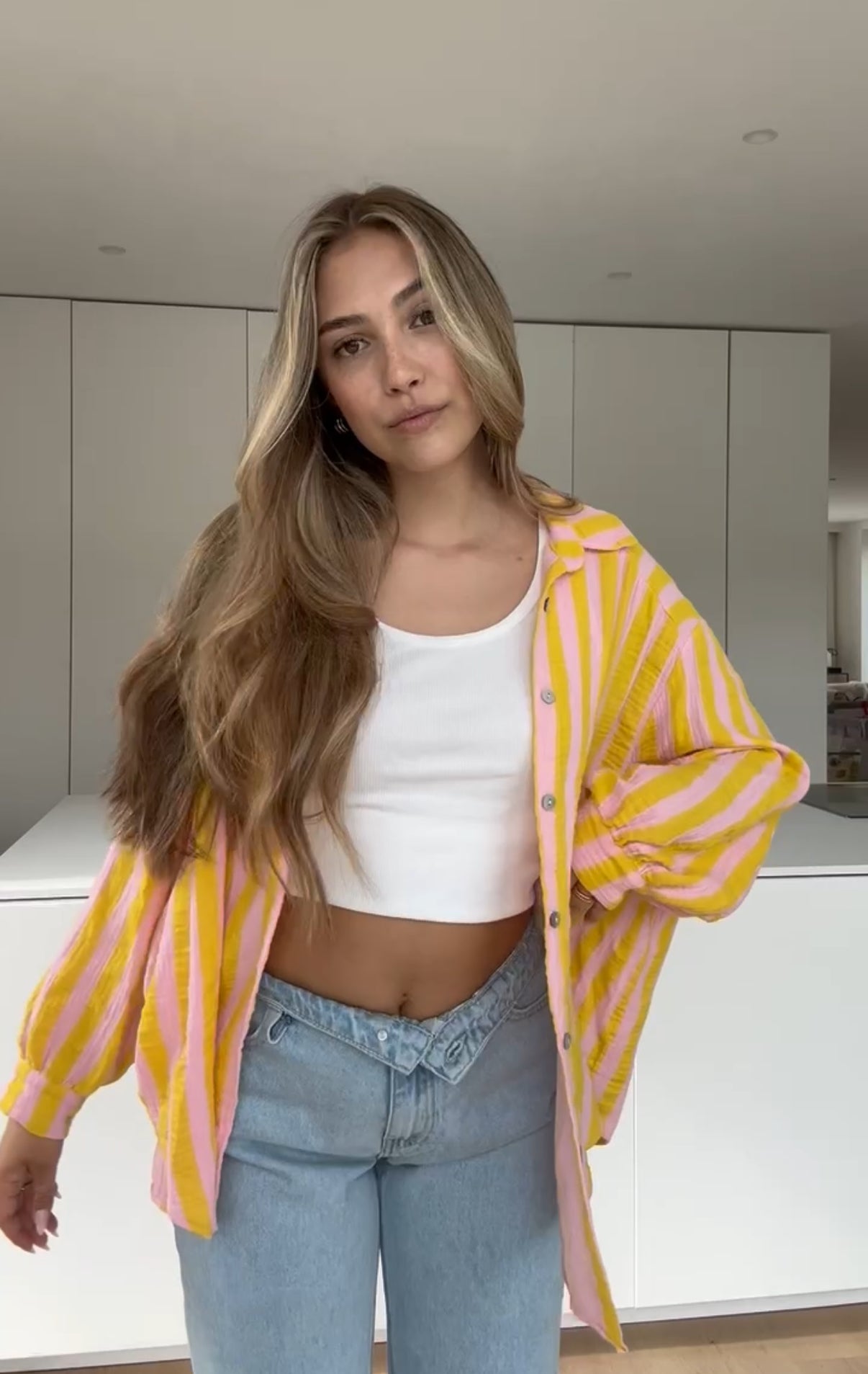 STRIPED WAFFLE BLUSE PEACH LEMON