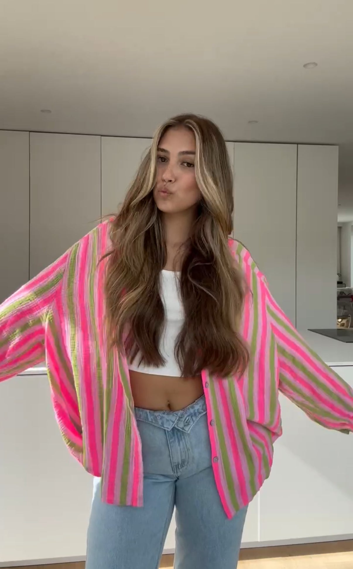 STRIPED WAFFLE BLUSE WATERMELON