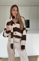 KNITTED STRIPE CARDIGAN MILK CHOCOLATE