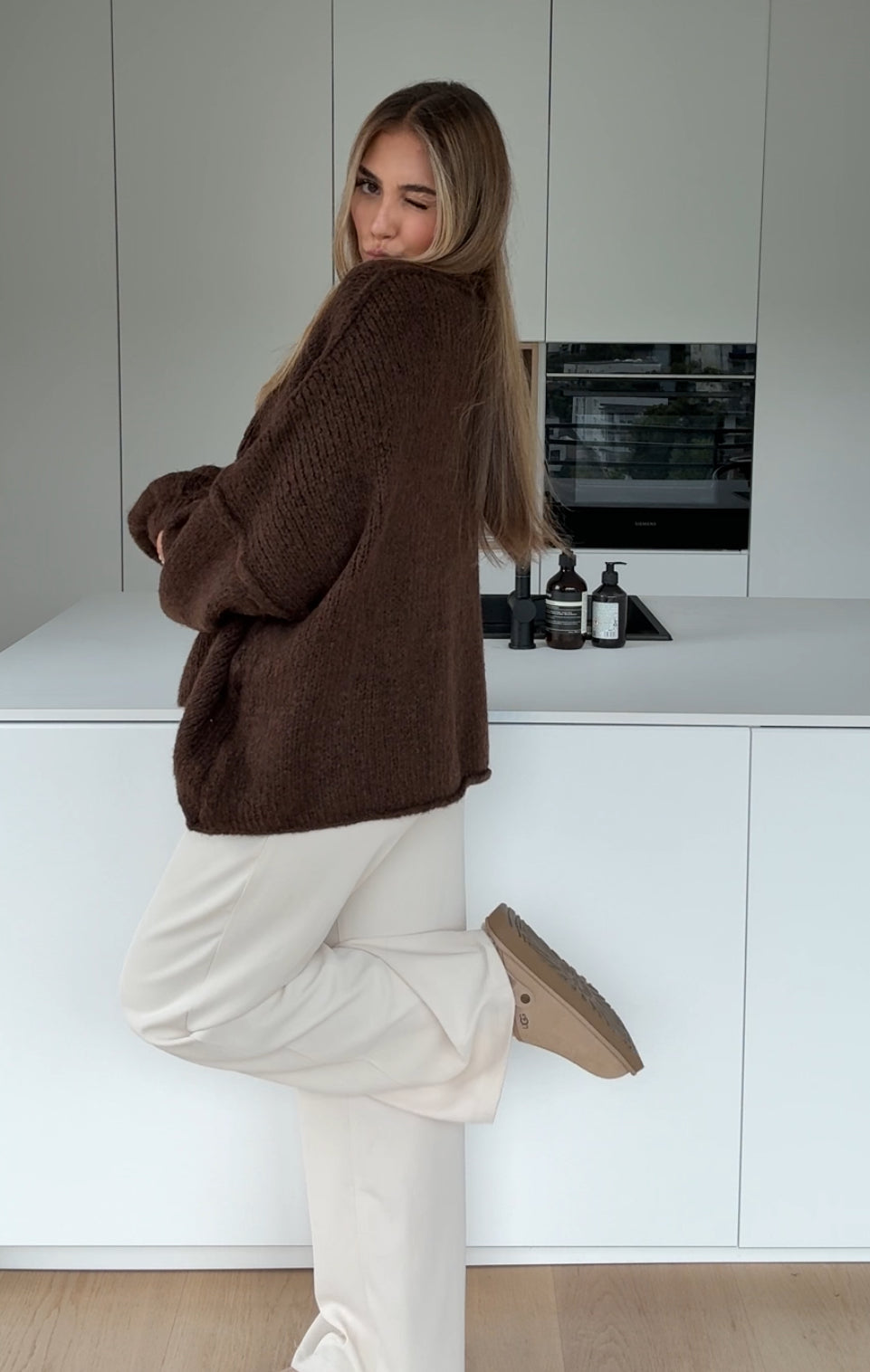 CLASSIC CHUNKY CARDIGAN DARK CHOCOLATE