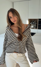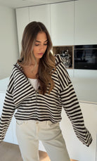 STRIPED ZIP KNIT CARDIGAN CHOCOLATE