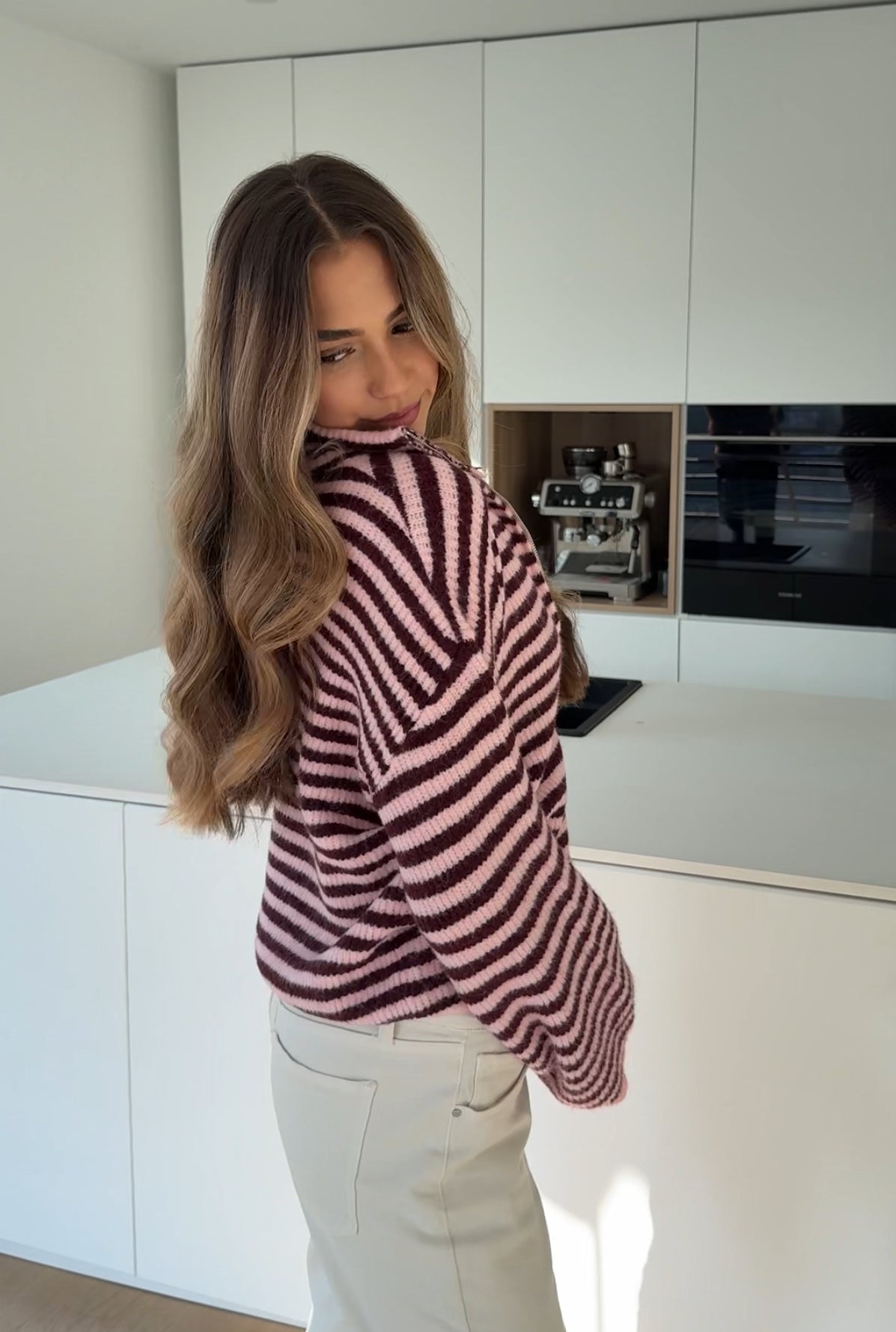STRIPED ZIP KNIT CARDIGAN BURGUNDY