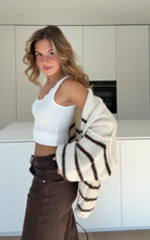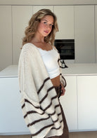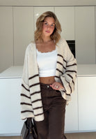 STRIPED CHUNKY CARDIGAN VANILLA CHOCOLATE