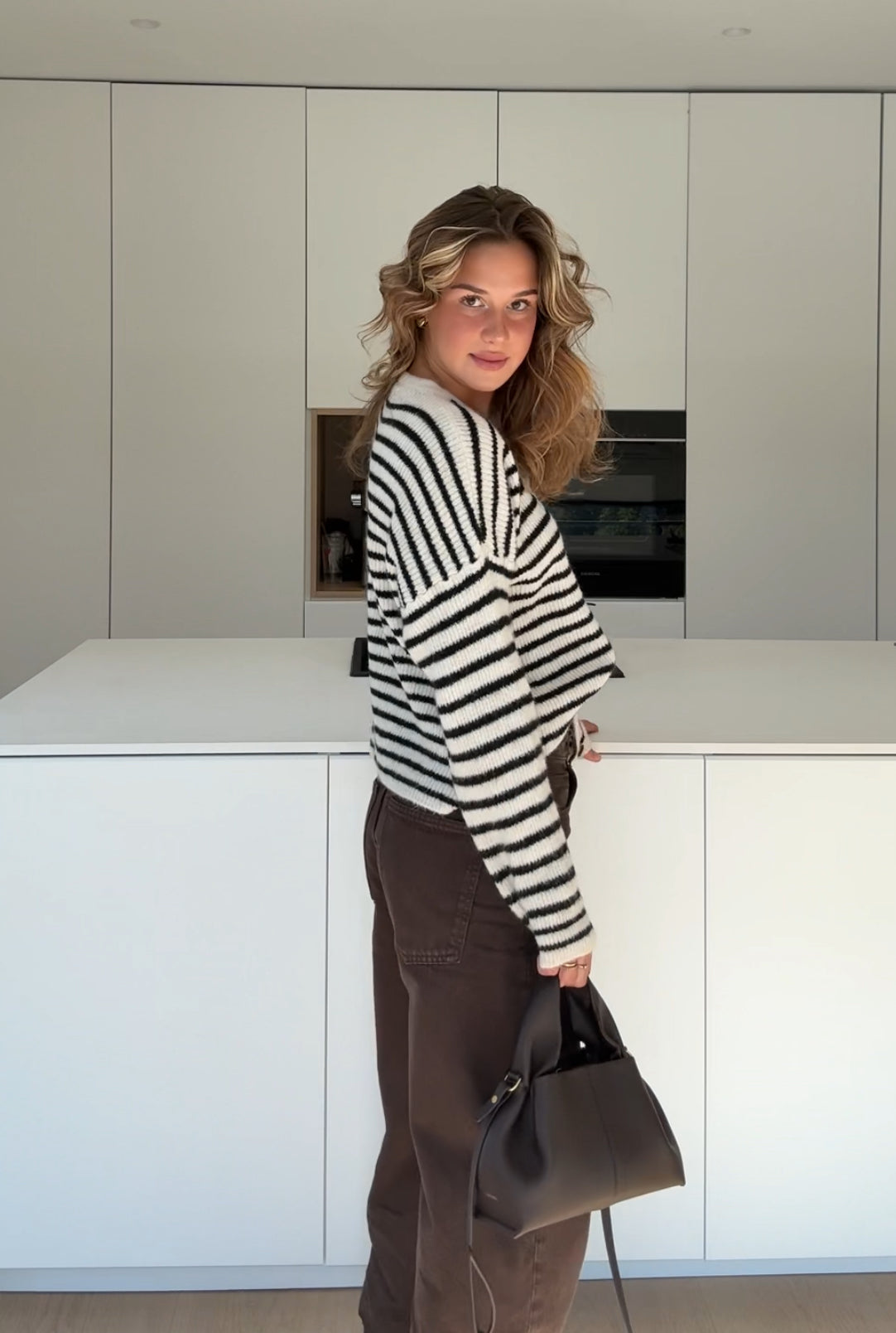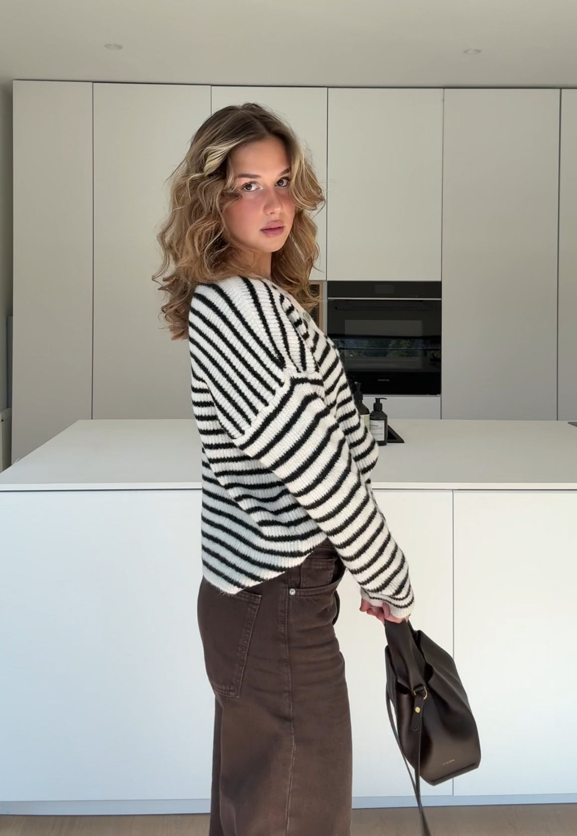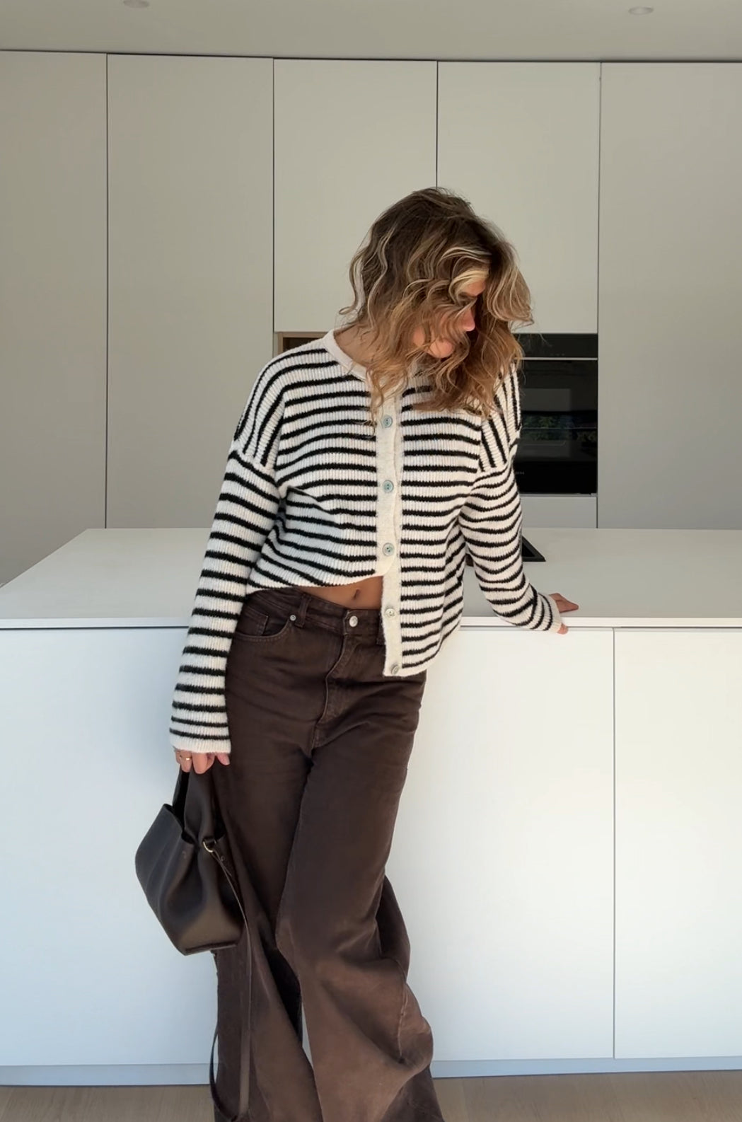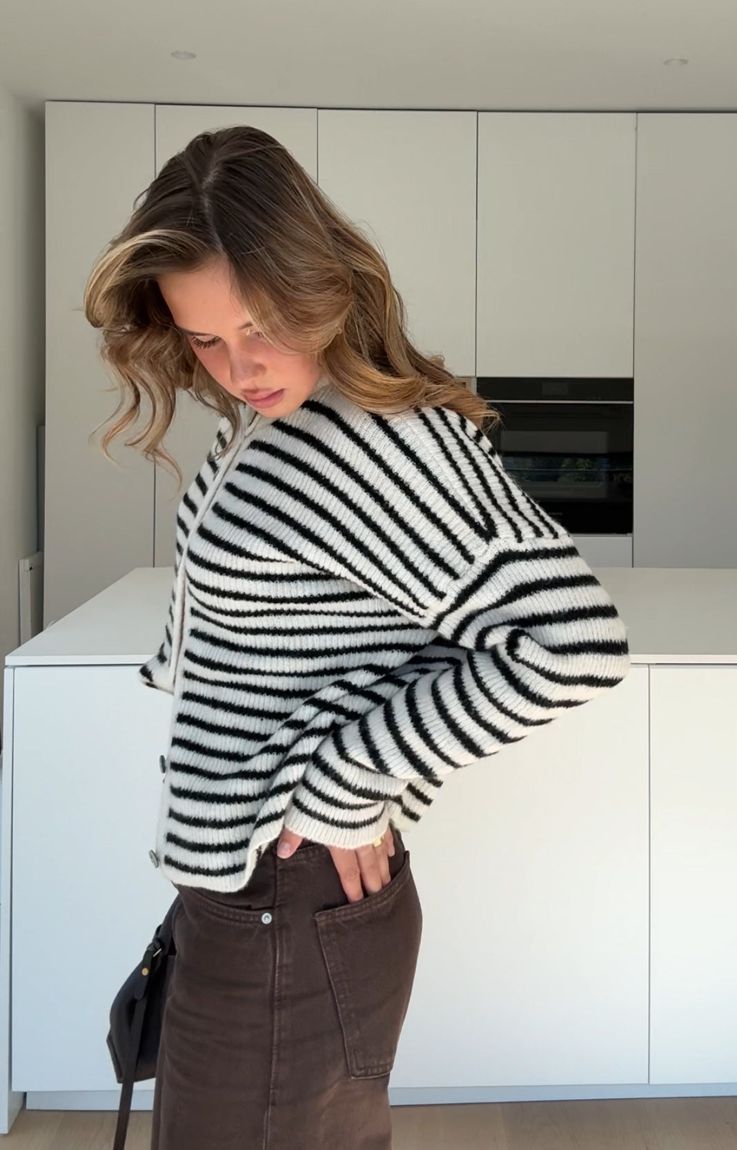 STRIPED CHUNKY CARDIGAN CHOCOLATE