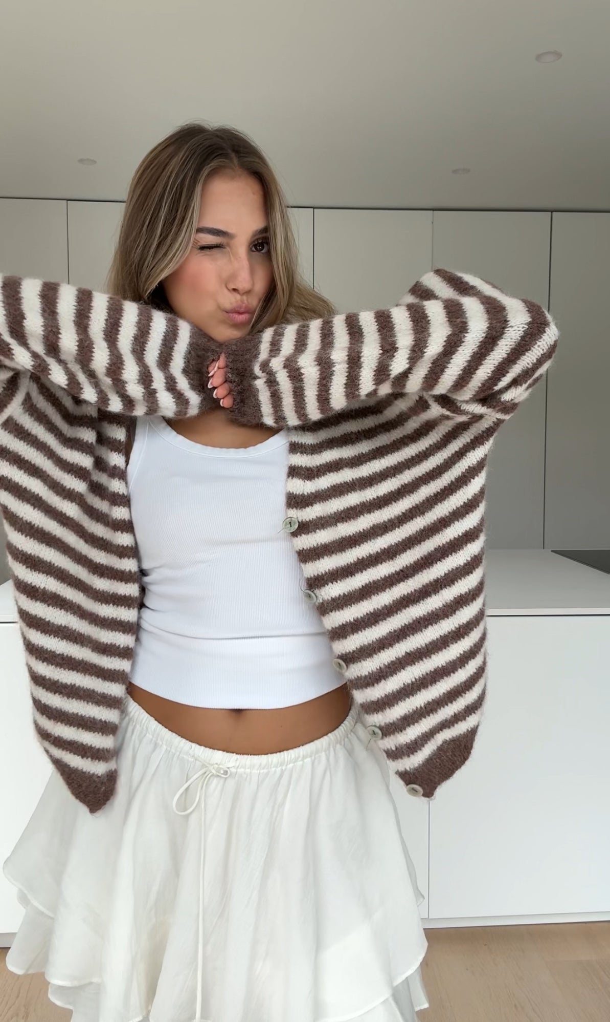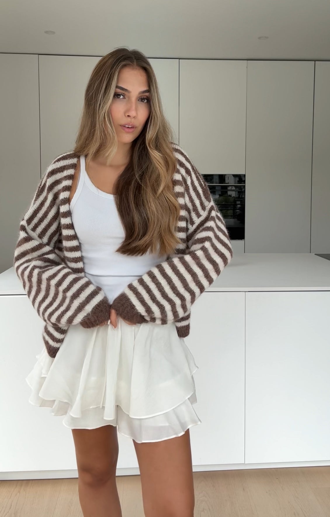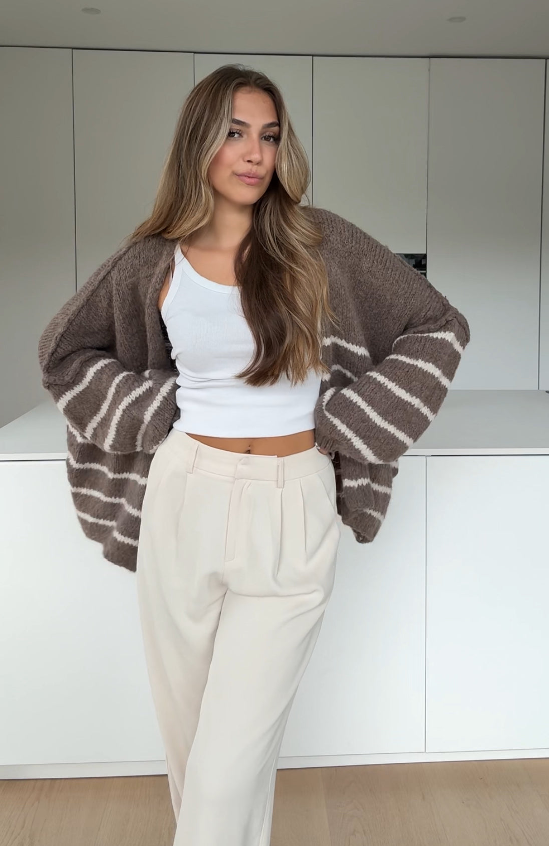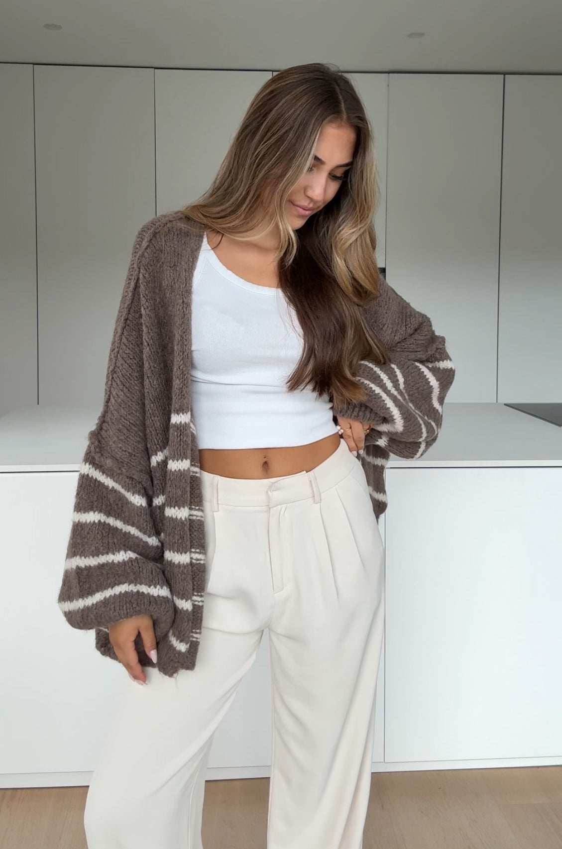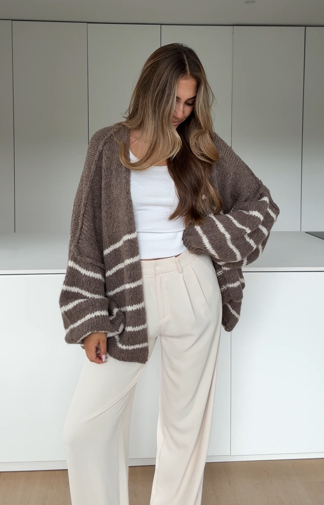 STRIPED CHUNKY CARDIGAN VANILLA CHOCOLATE