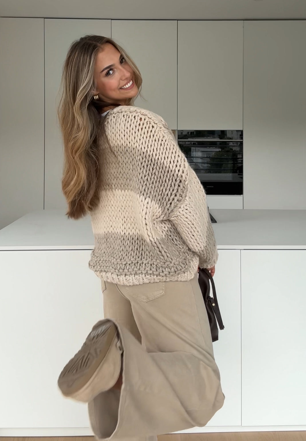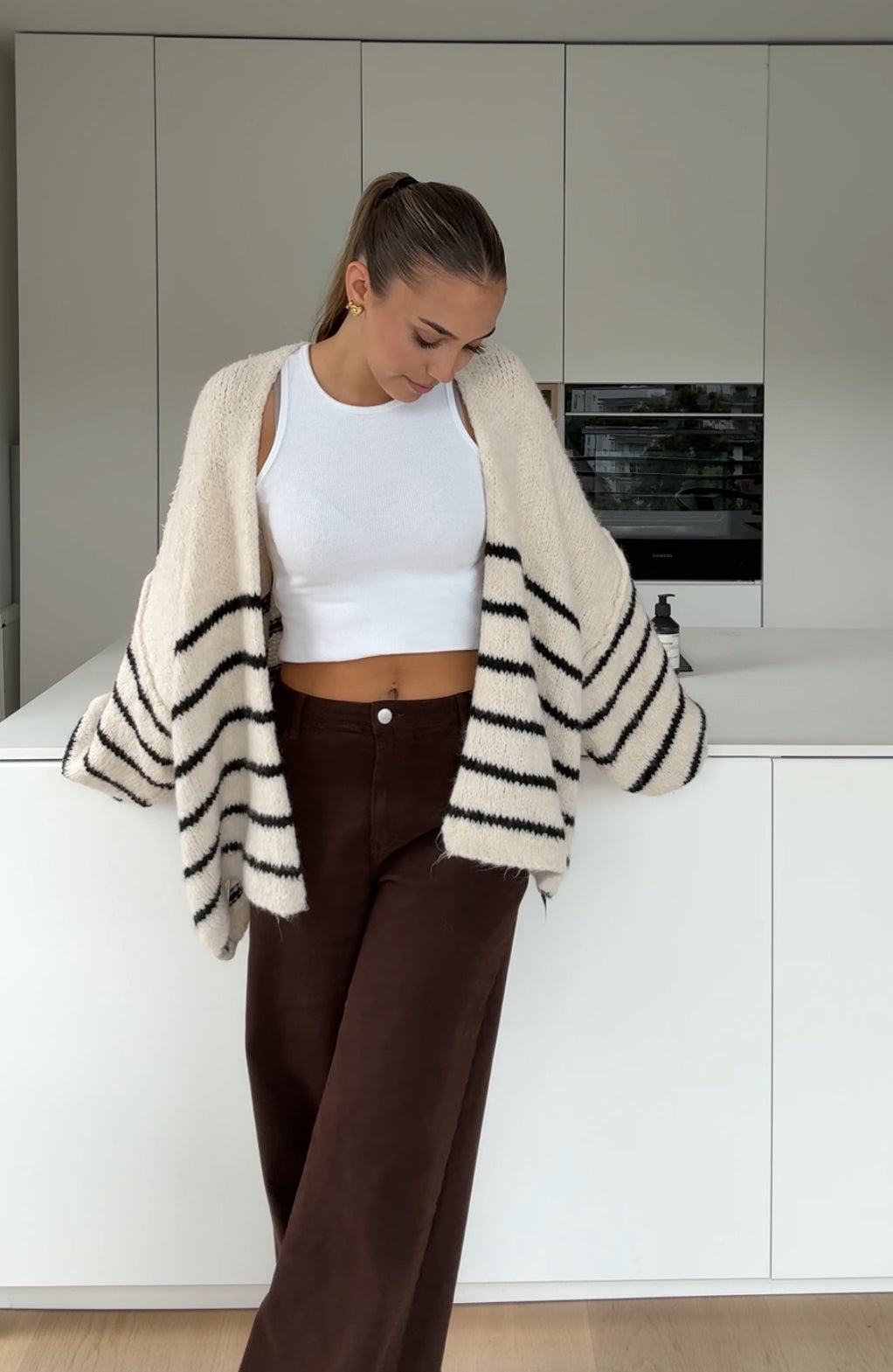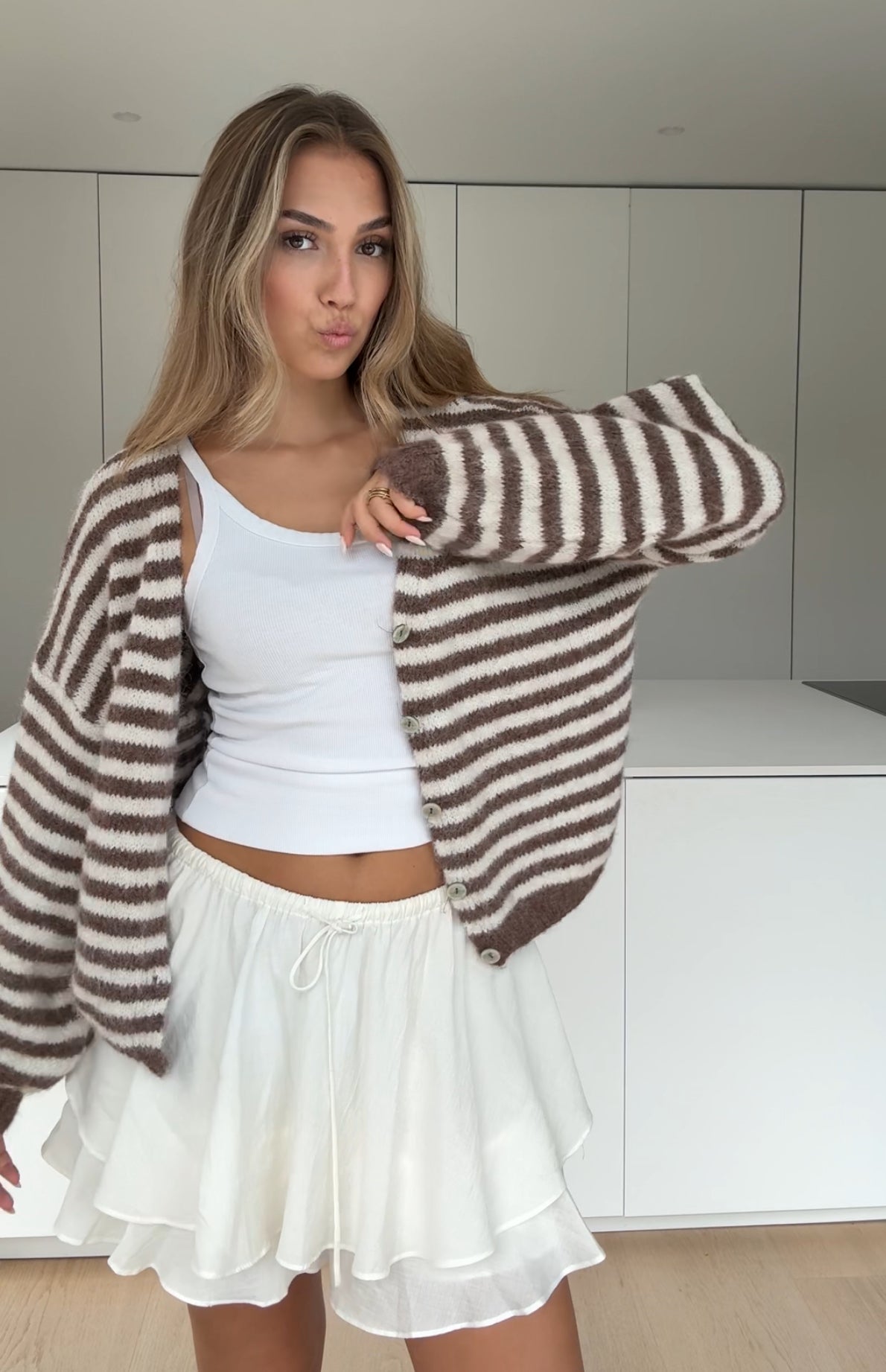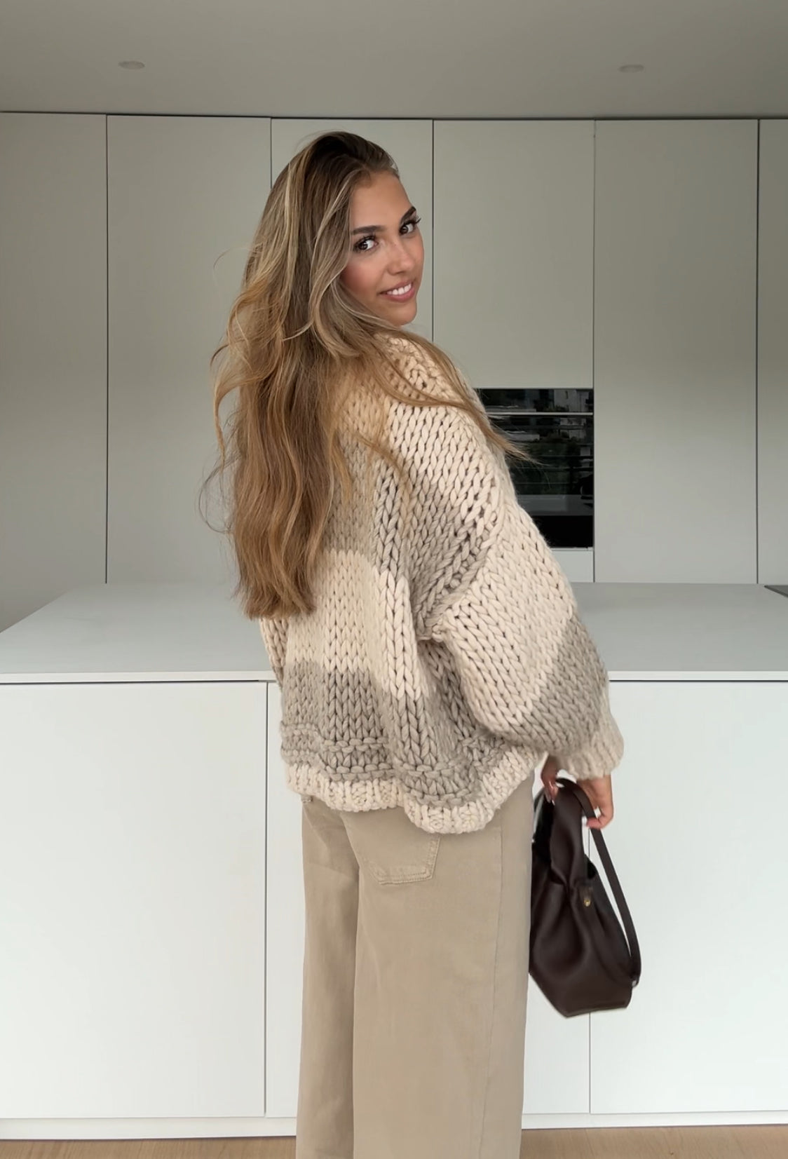 STRIPED CHUNKY CARDIGAN VANILLA CHOCOLATE