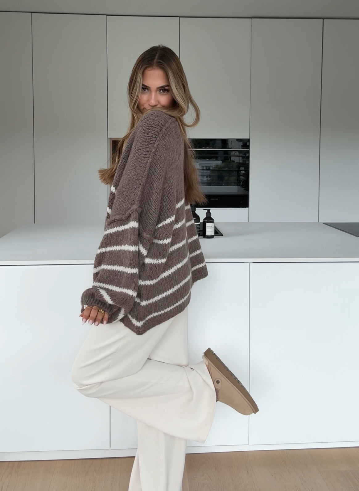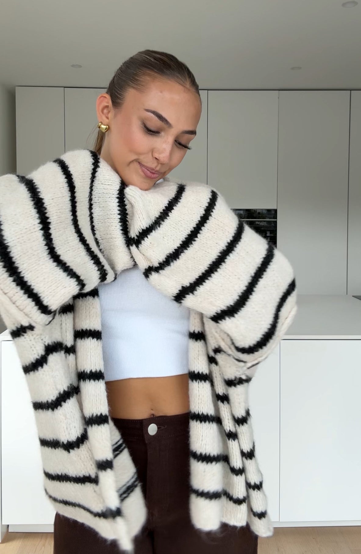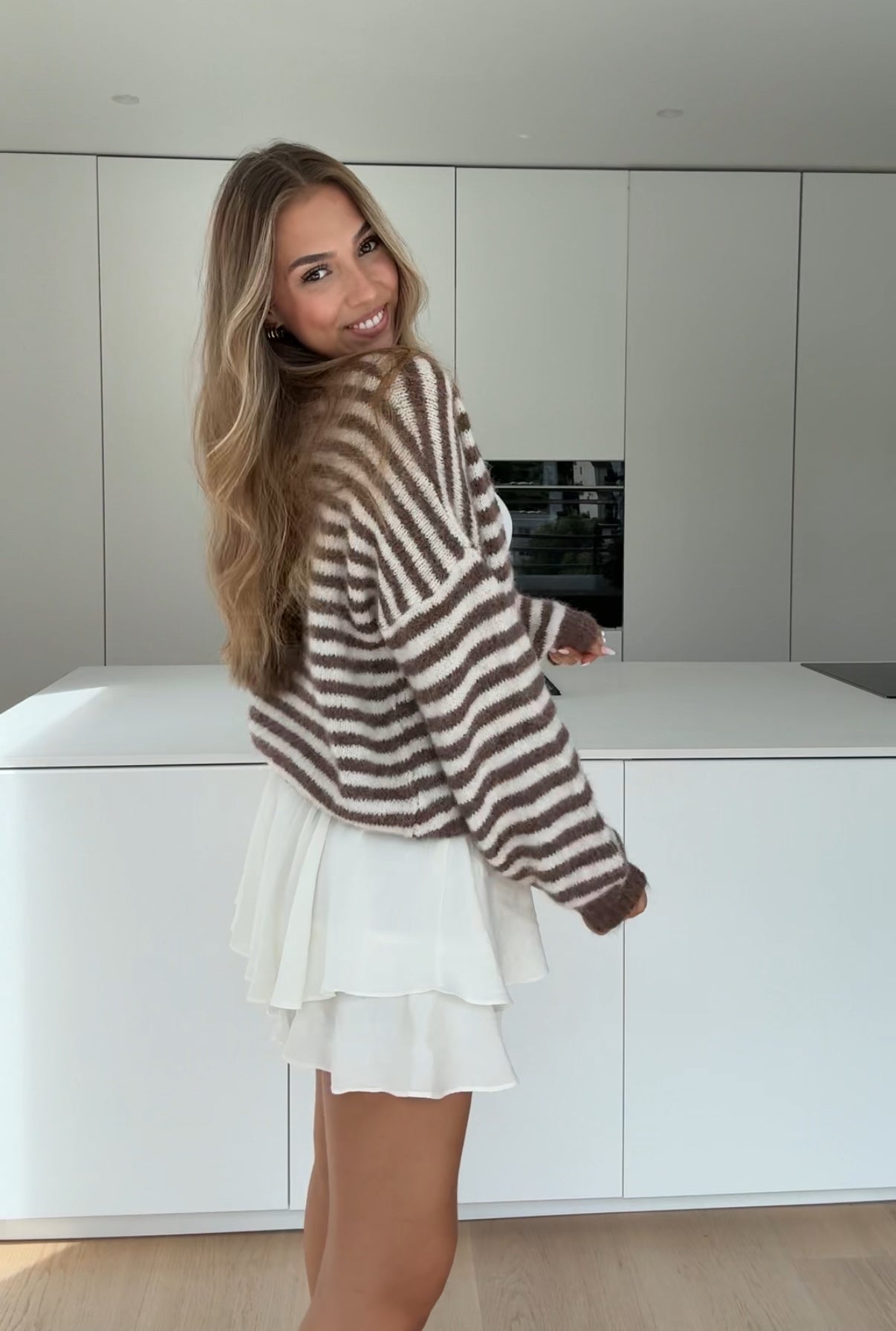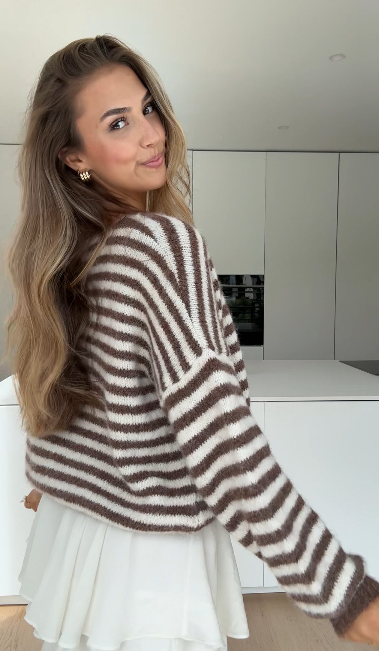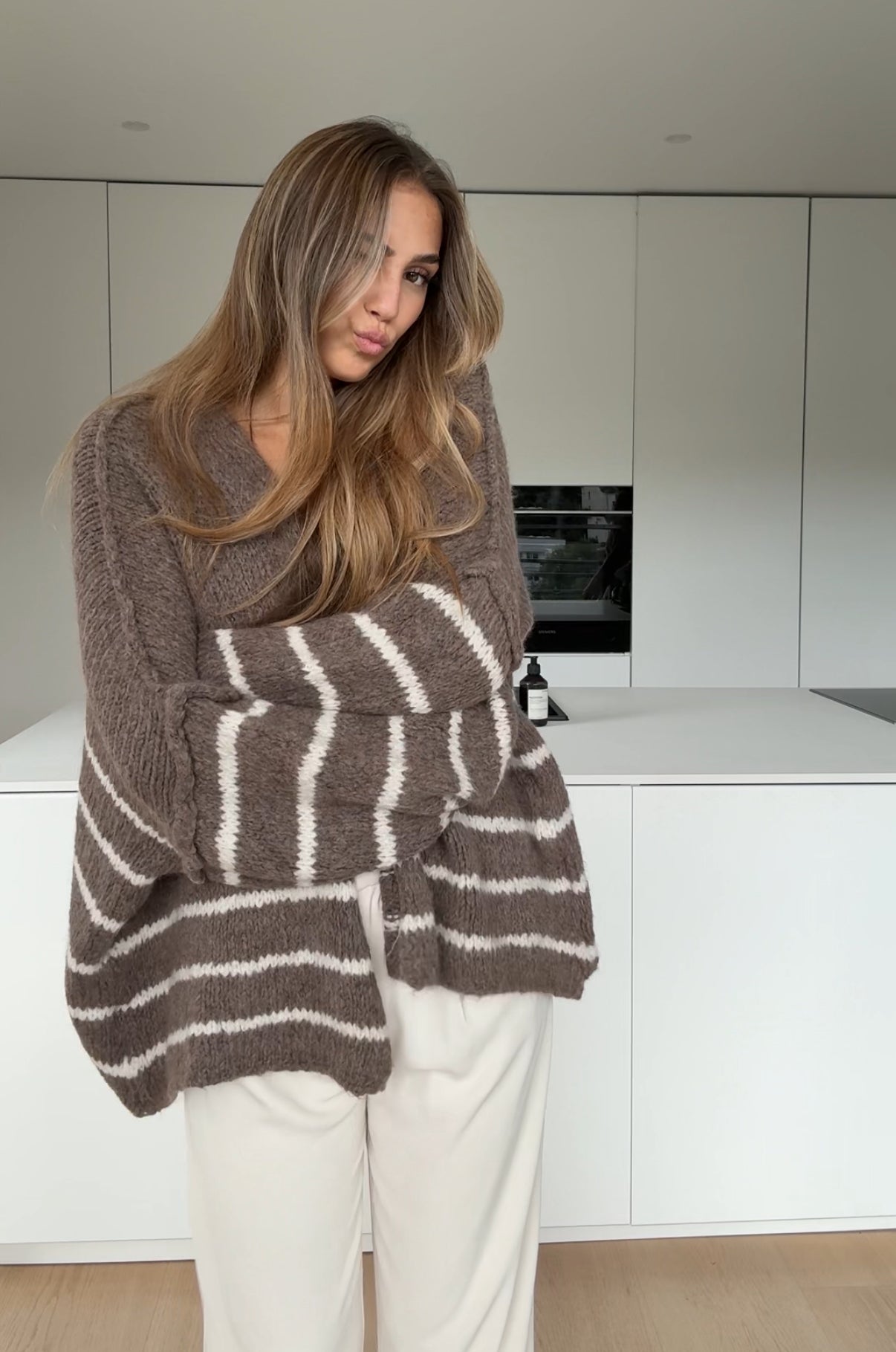 STRIPED CHUNKY CARDIGAN VANILLA CHOCOLATE