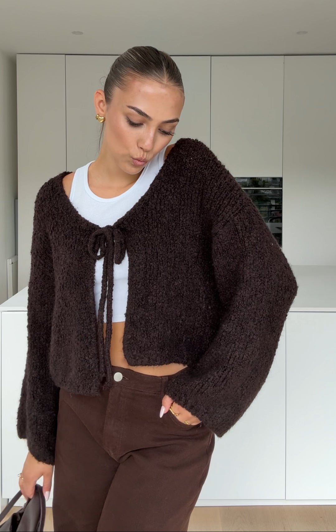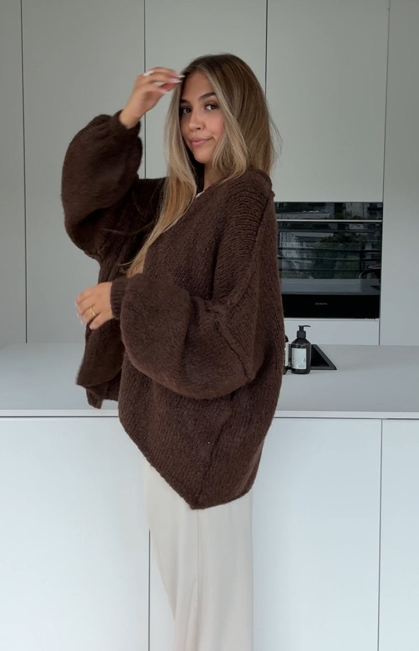 TEDDY KNOT CARDIGAN DARK CHOCOLATE