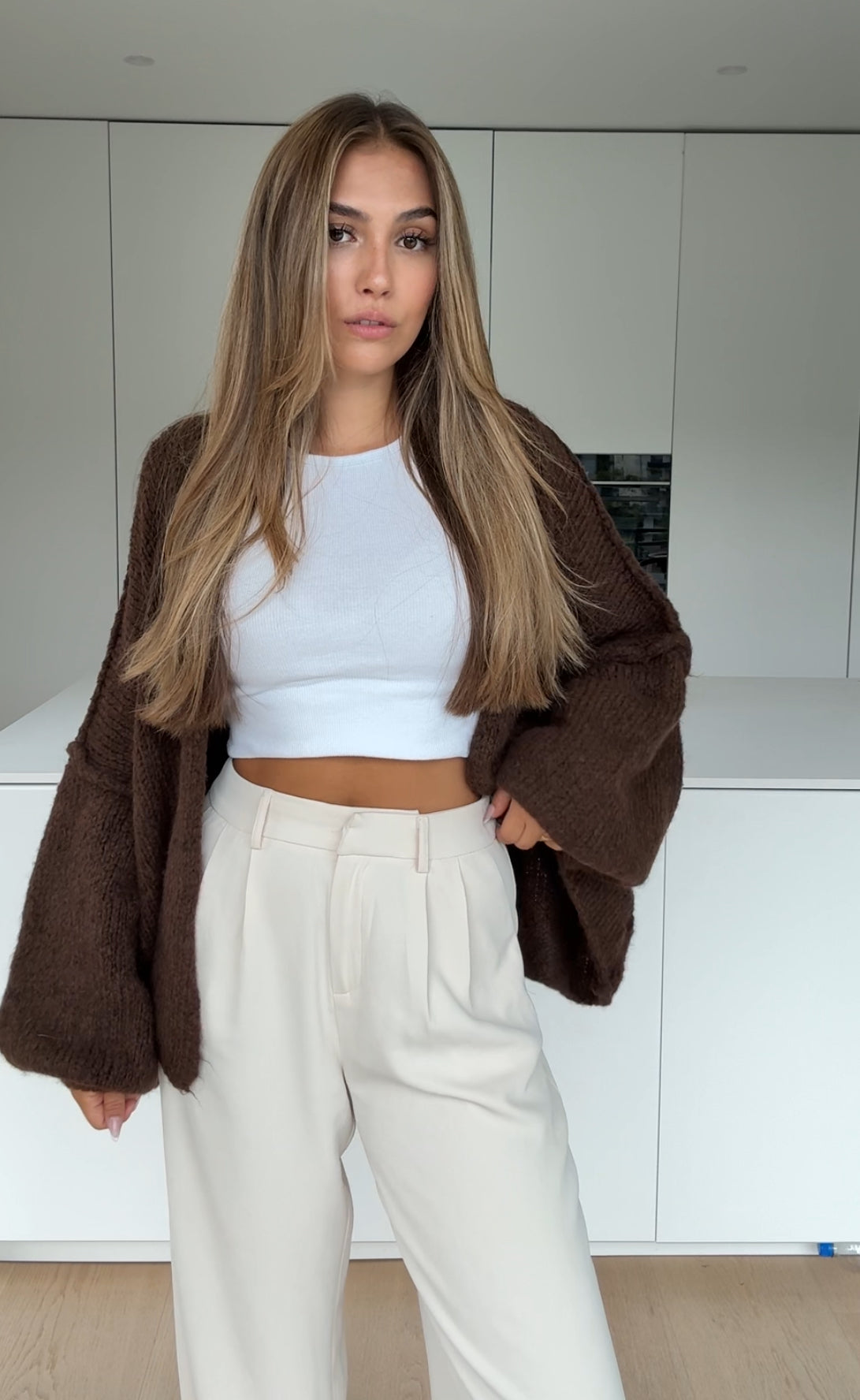 CLASSIC CHUNKY CARDIGAN DARK CHOCOLATE
