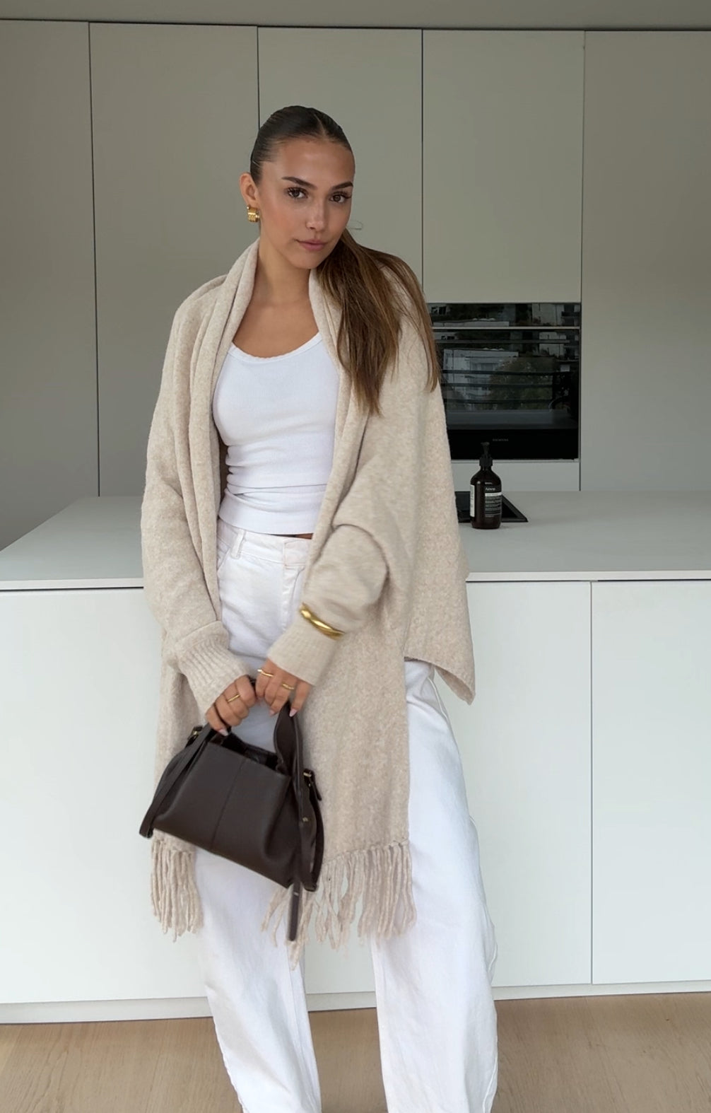 SCARF CARDIGAN VANILLA