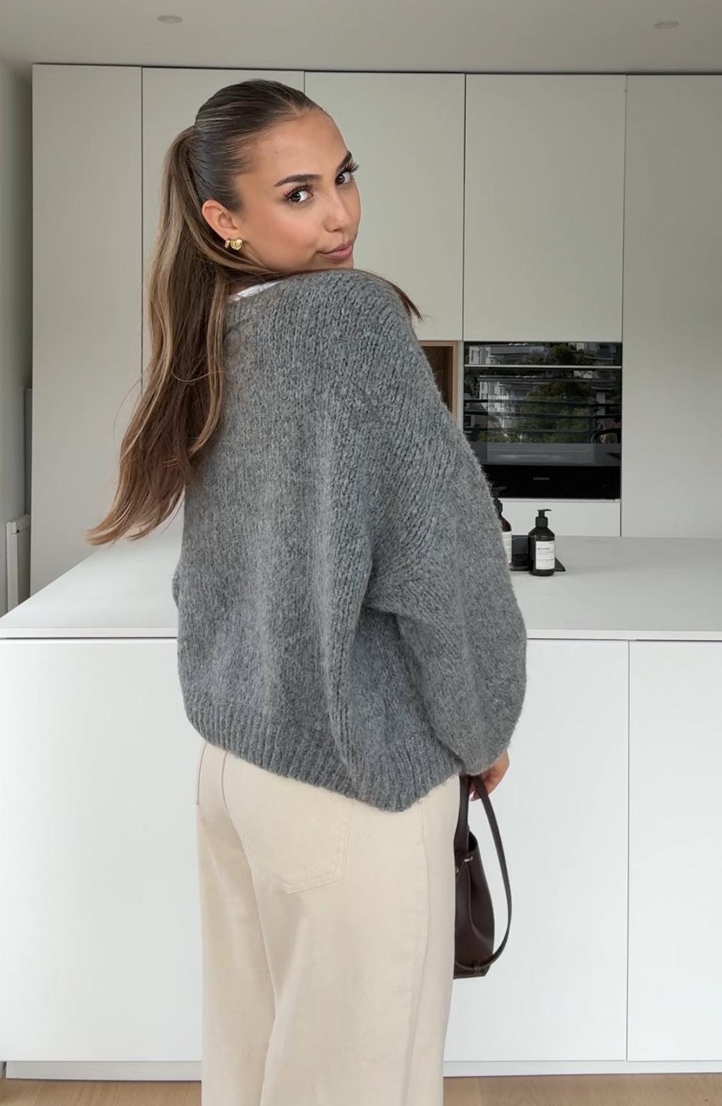 BOW CARDIGAN GREY
