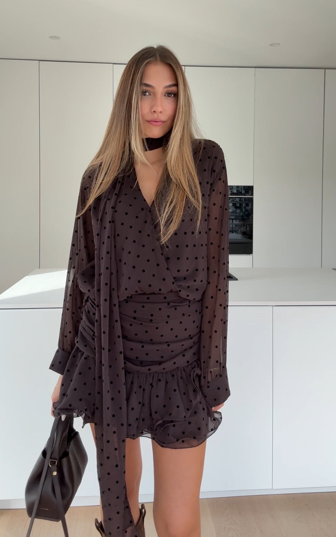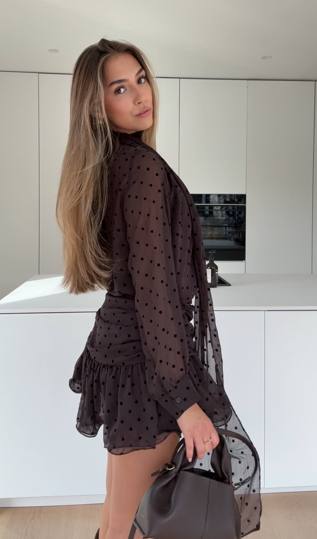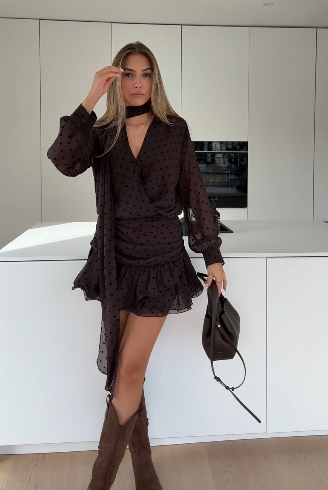 POLKA DOT DRESS DARK BROWN