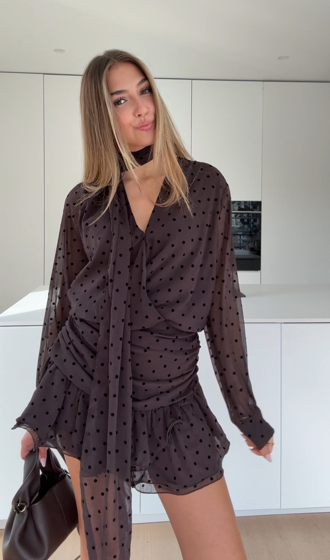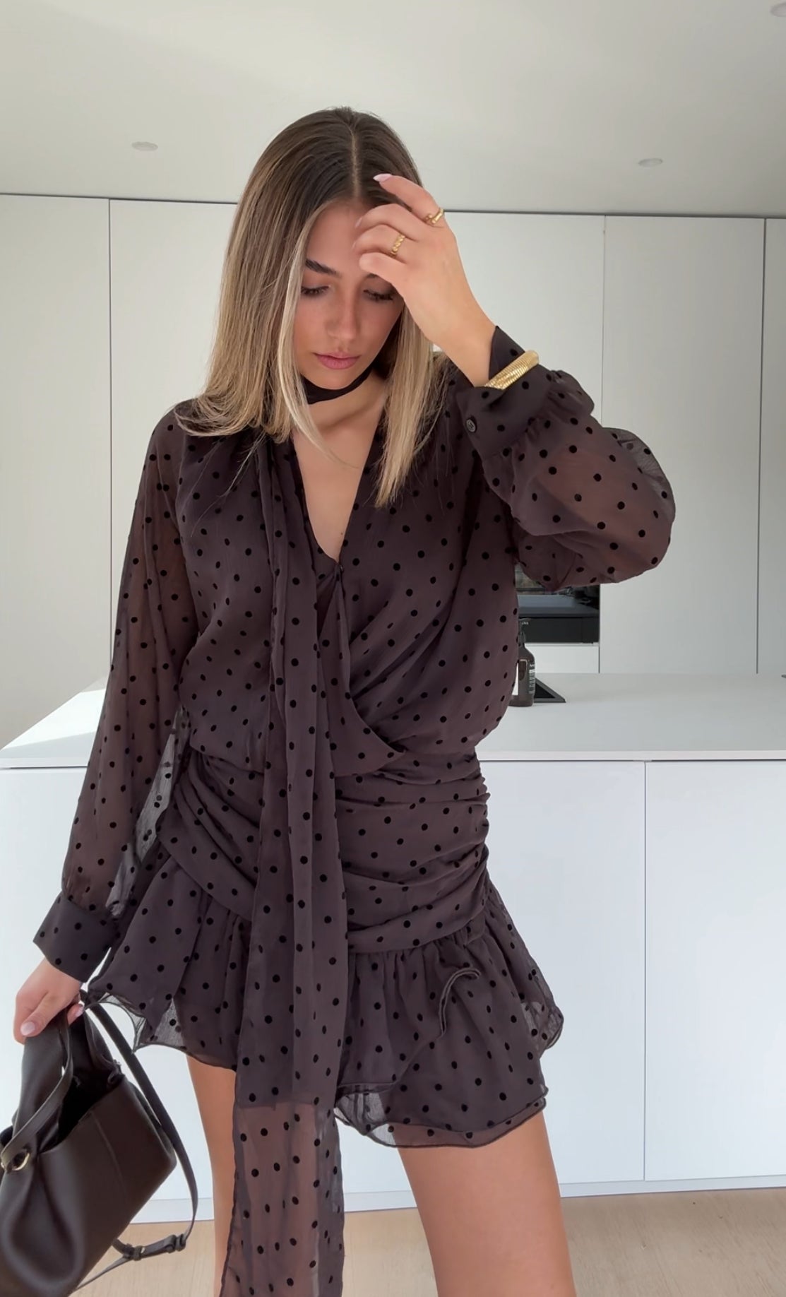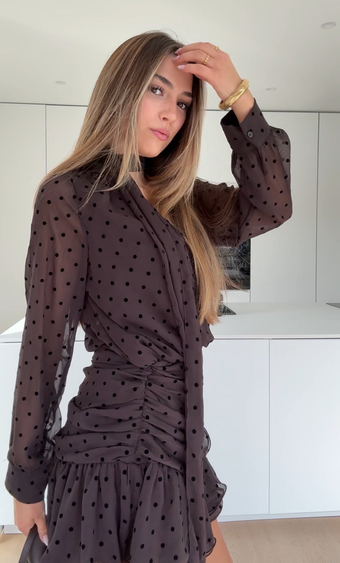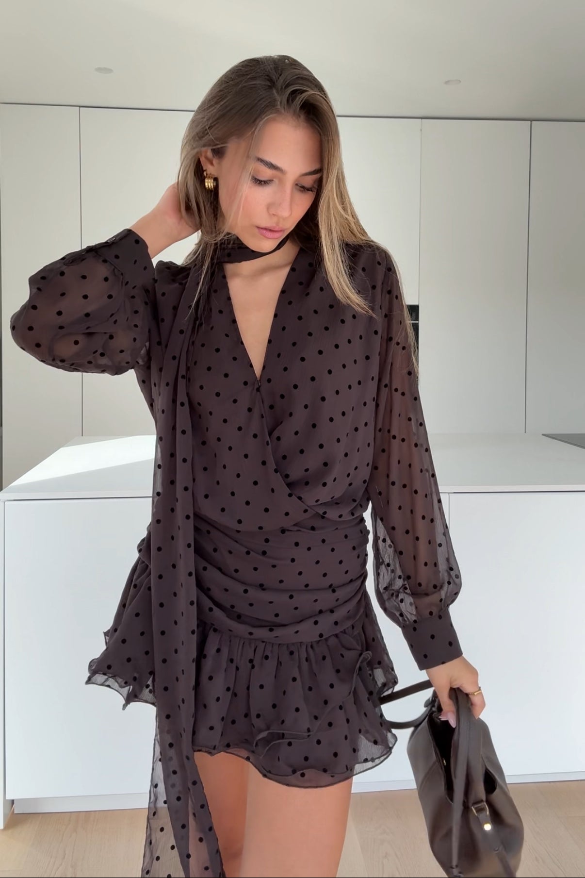 POLKA DOT DRESS DARK BROWN