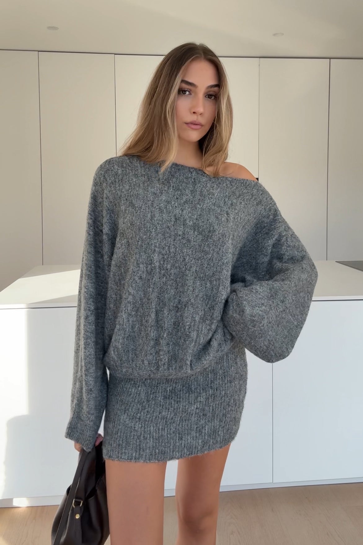 OFFSHOULDER DRESS GREY