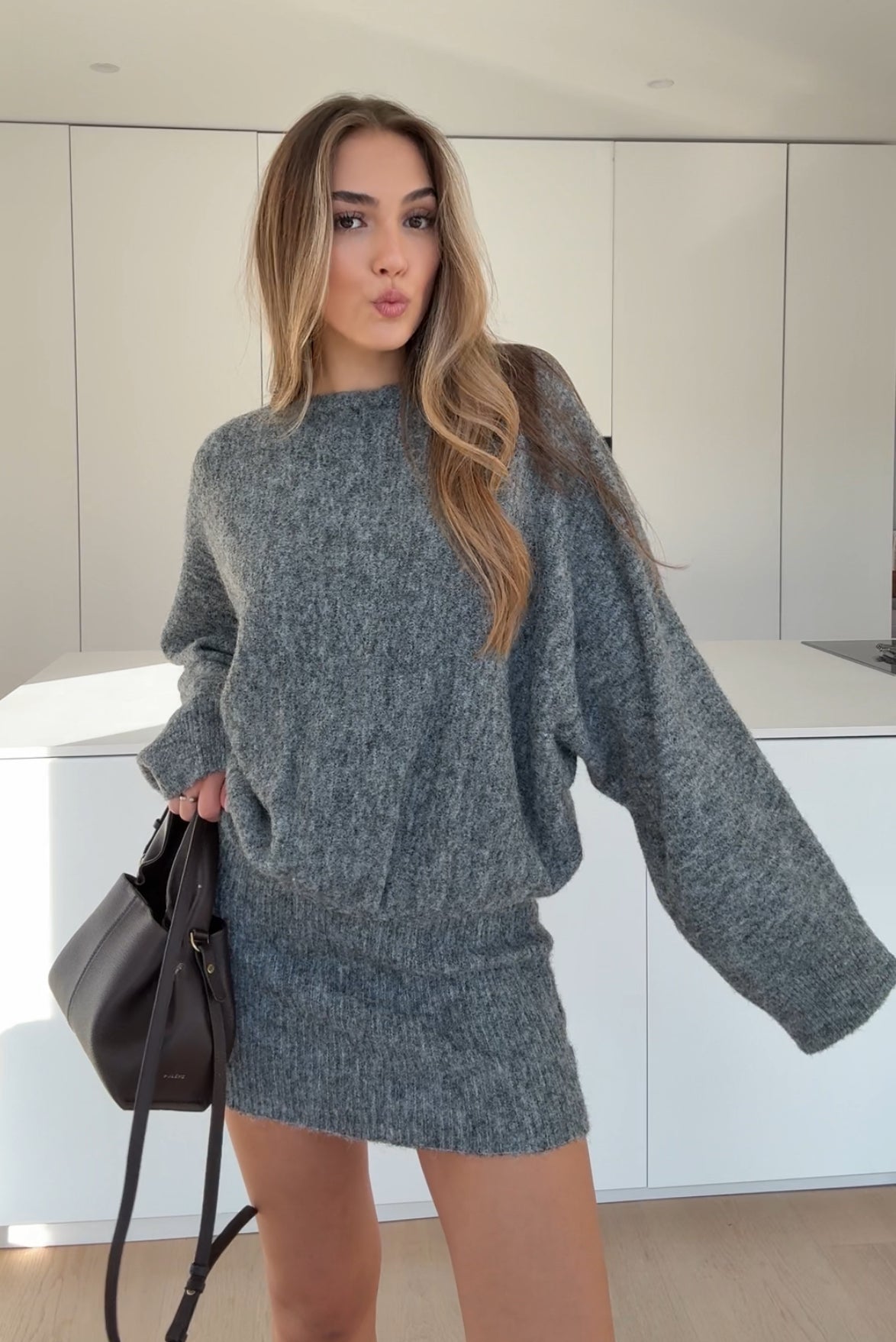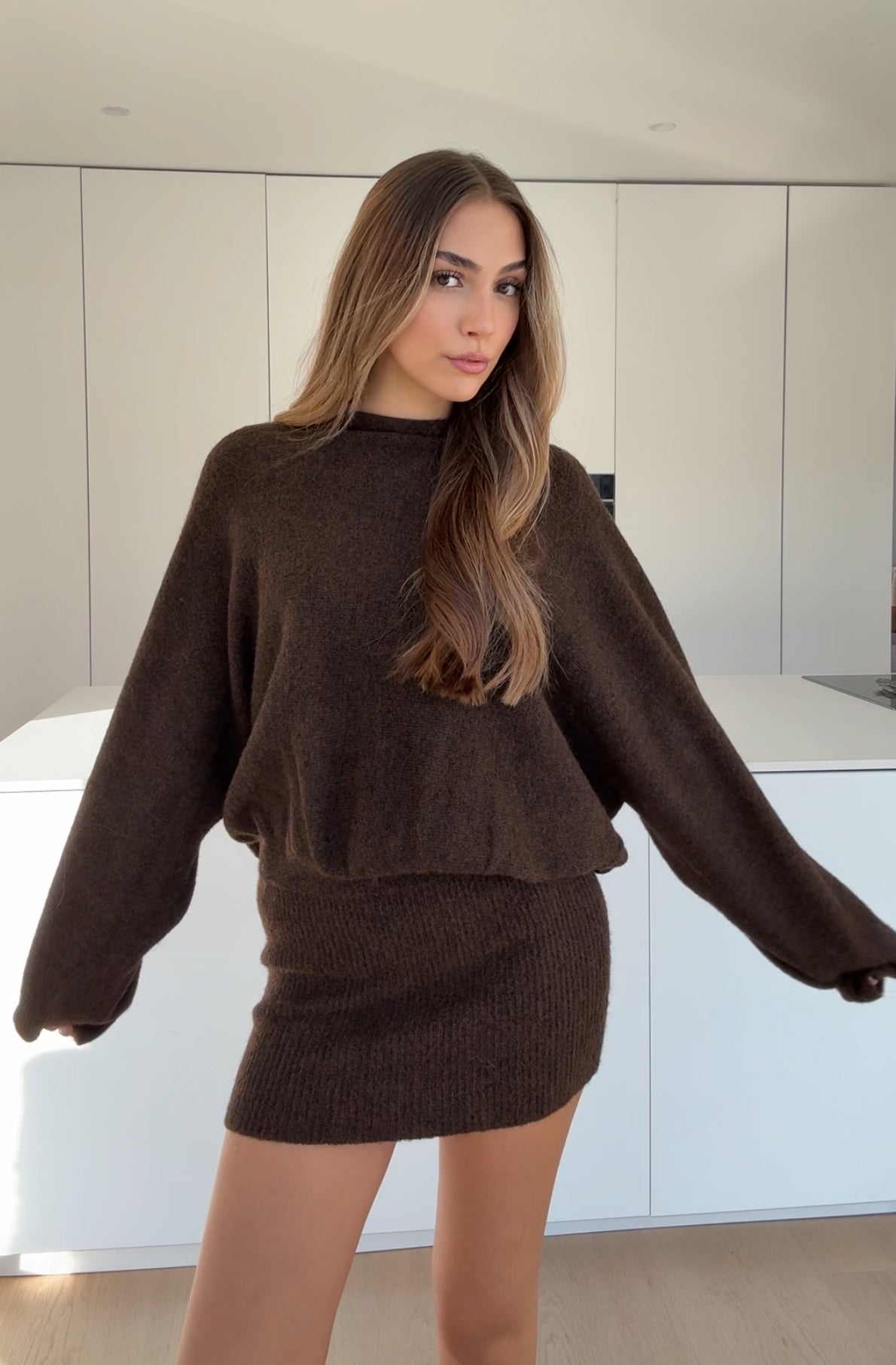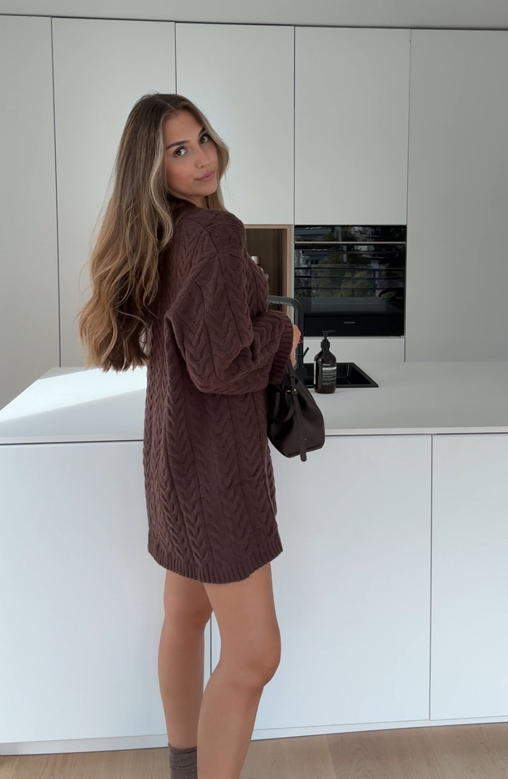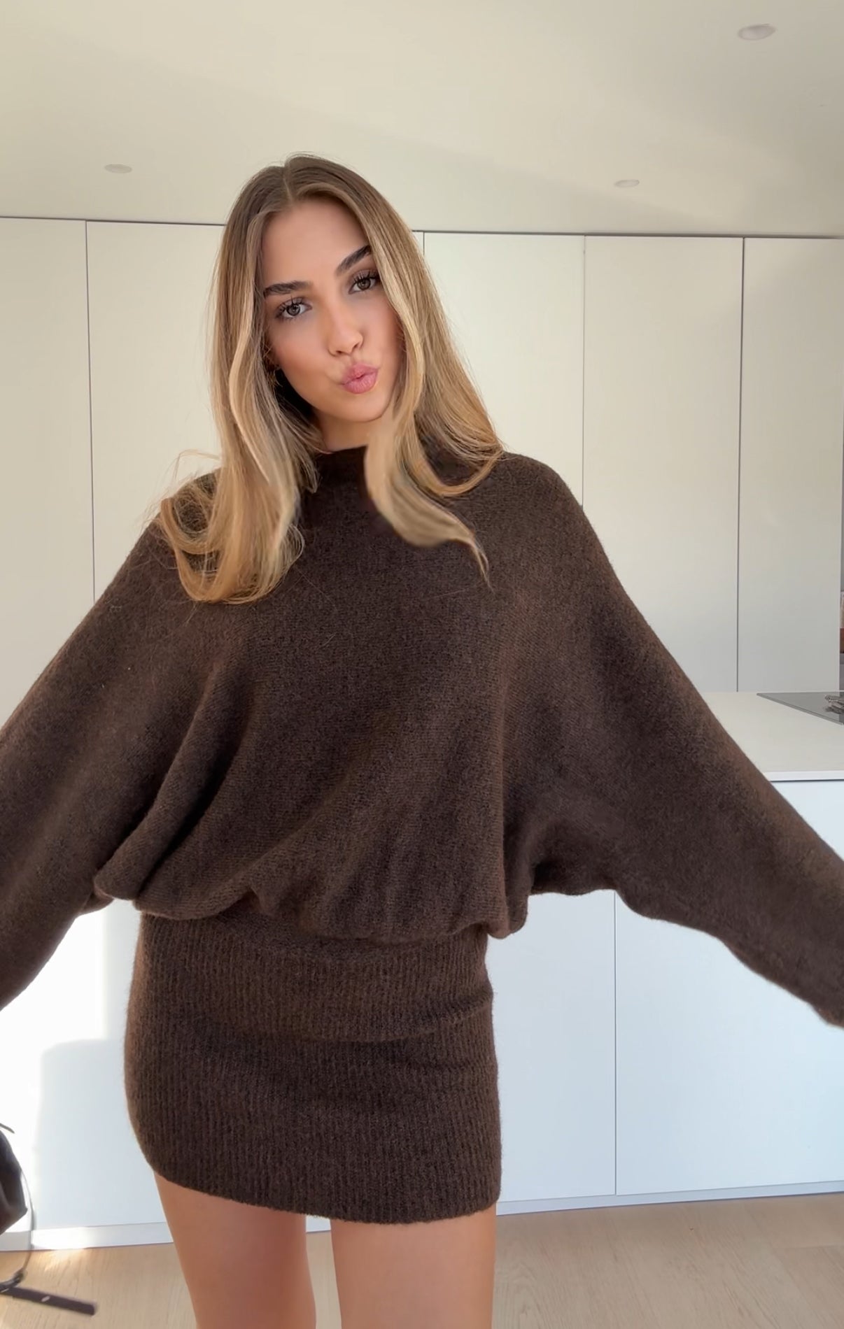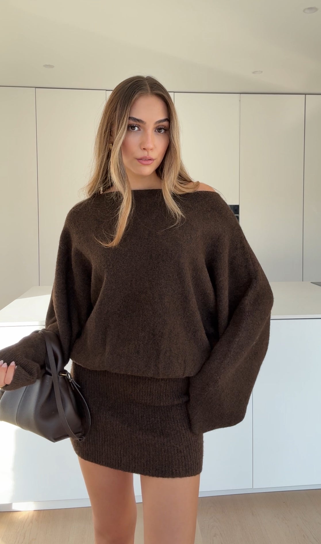 FUZZY KNIT DRESS CHOCOLATE