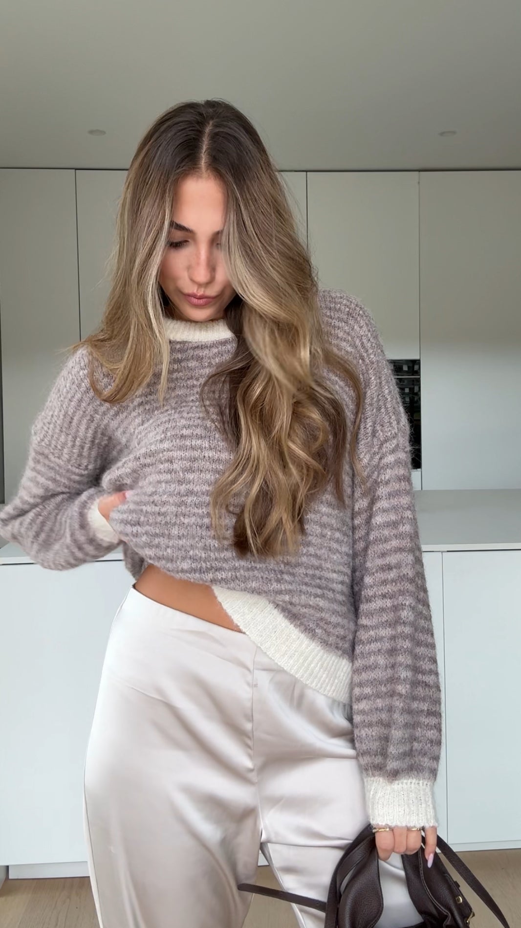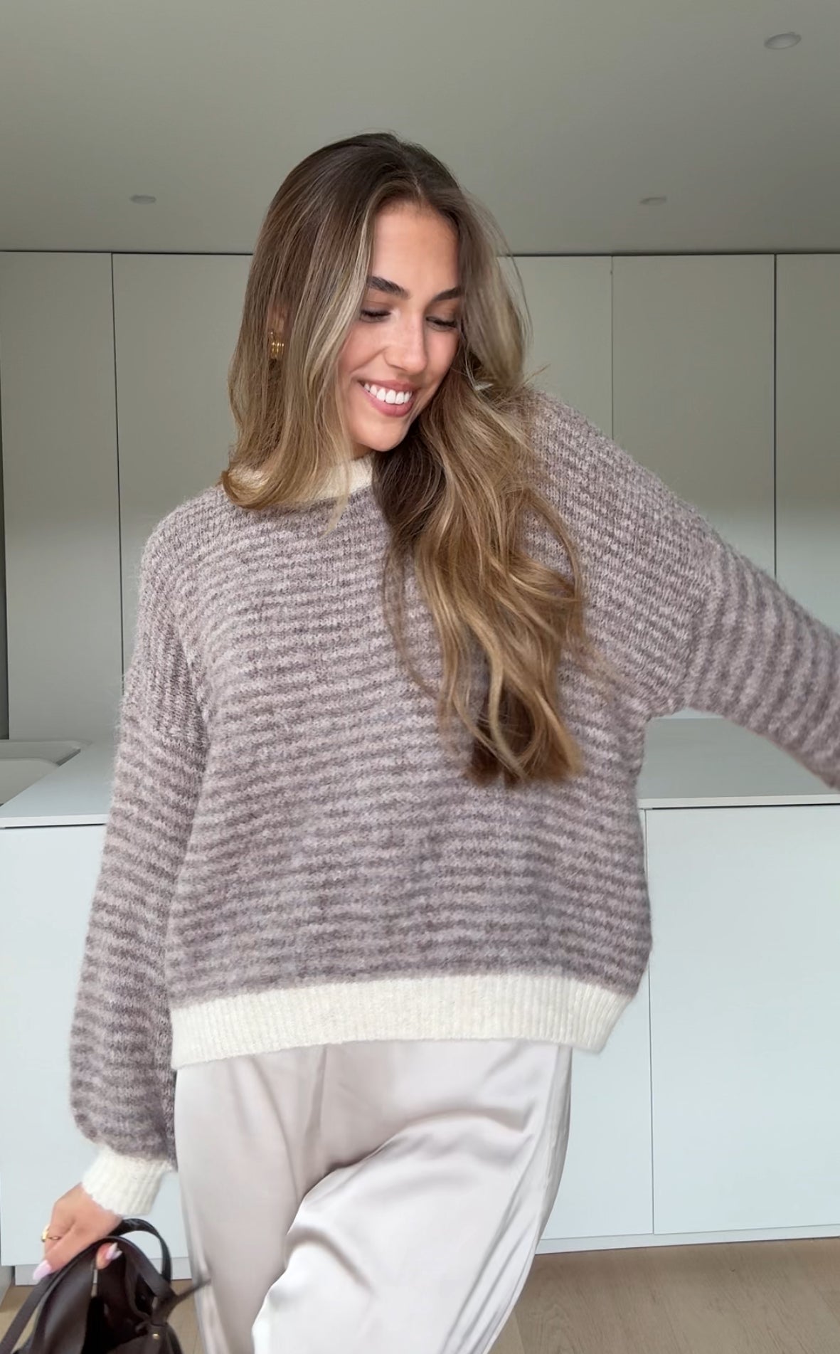 SOFT STRIPE PULLOVER TAUPE