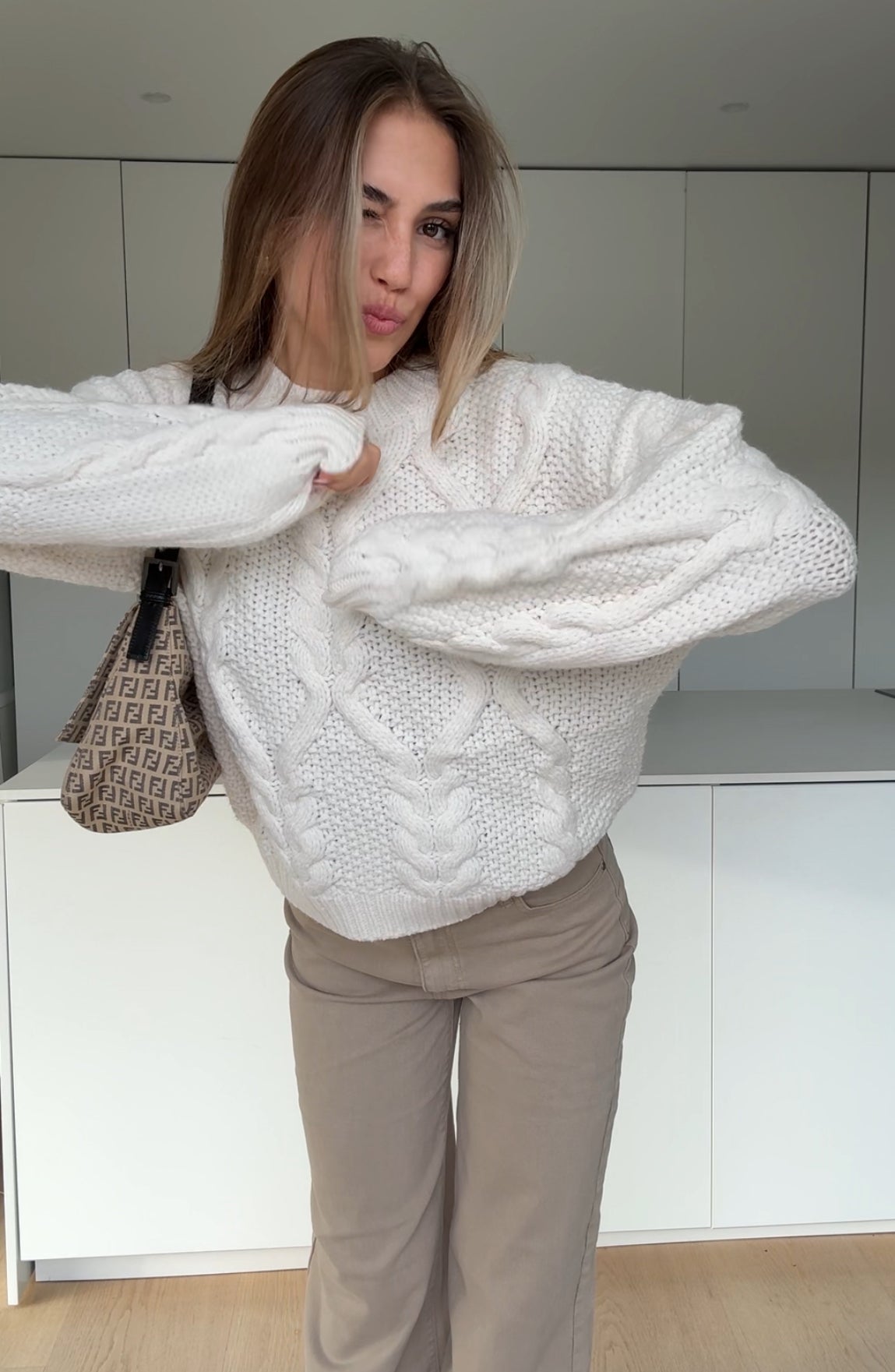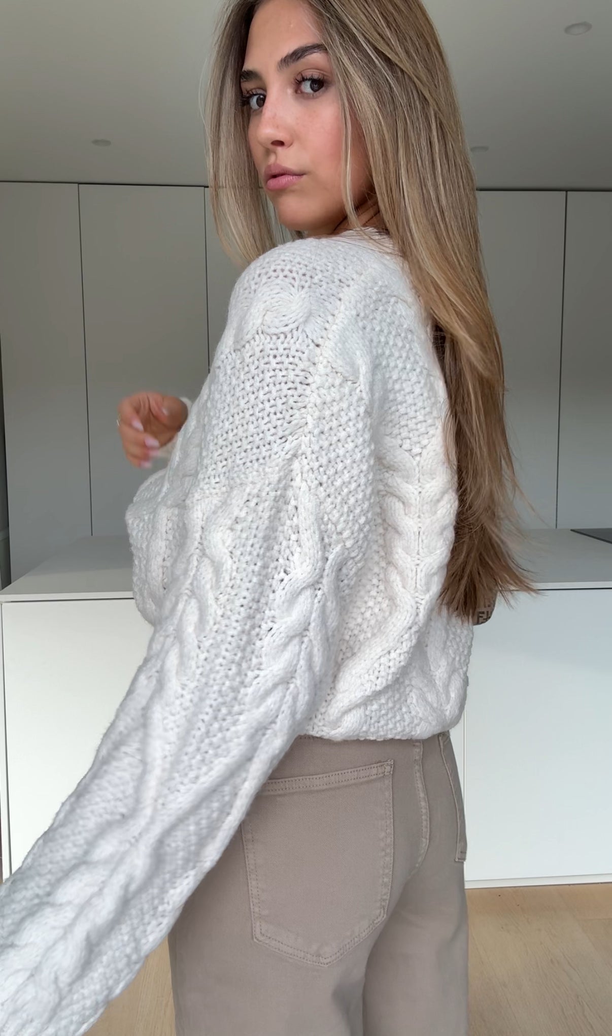 CHUNKY CABLEKNIT PULLOVER CREME