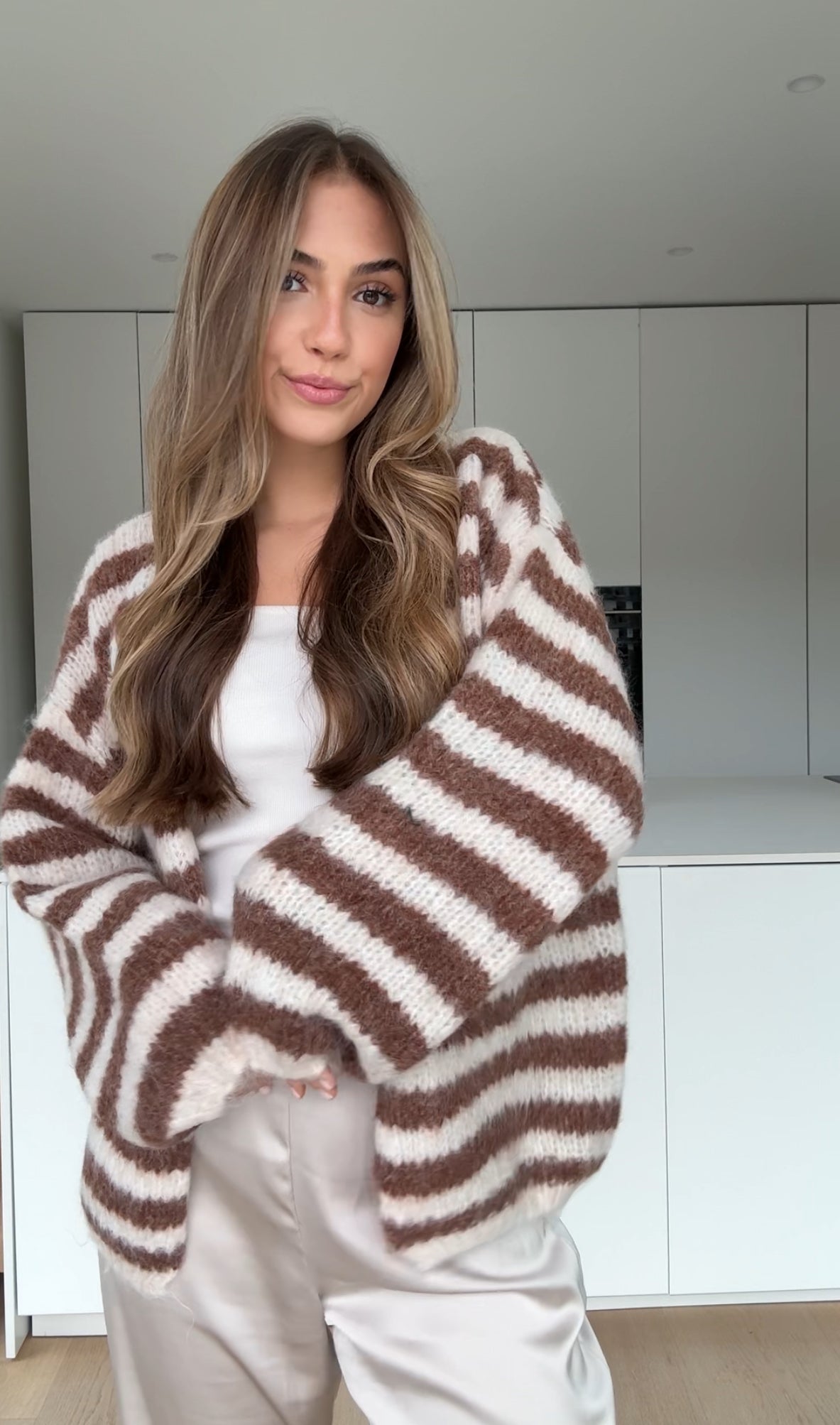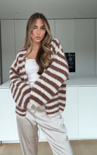 FLUFFY STRIPE CARDIGAN TOFFEE