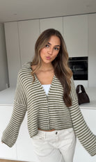 STRIPED ZIP KNIT CARDIGAN MATCHA