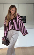 STRIPED V-NECK CARDIGAN WINTER BERRY
