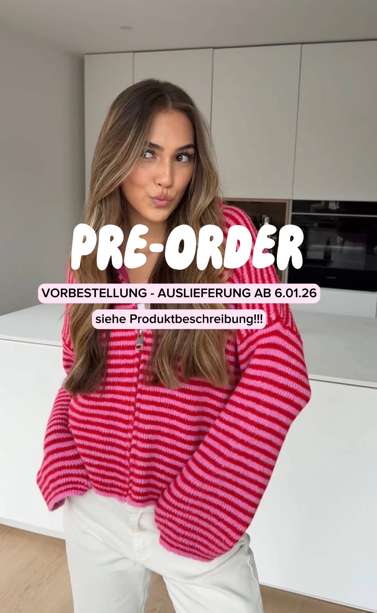 Der ZIP Cardigan ist eine Pre-Order, das bedeutet Vorbestellung. Die Auslieferung startet ab dem 6. Januar 2026.