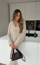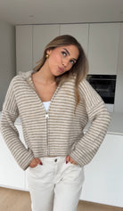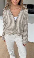 STRIPED ZIP KNIT CARDIGAN CREAM