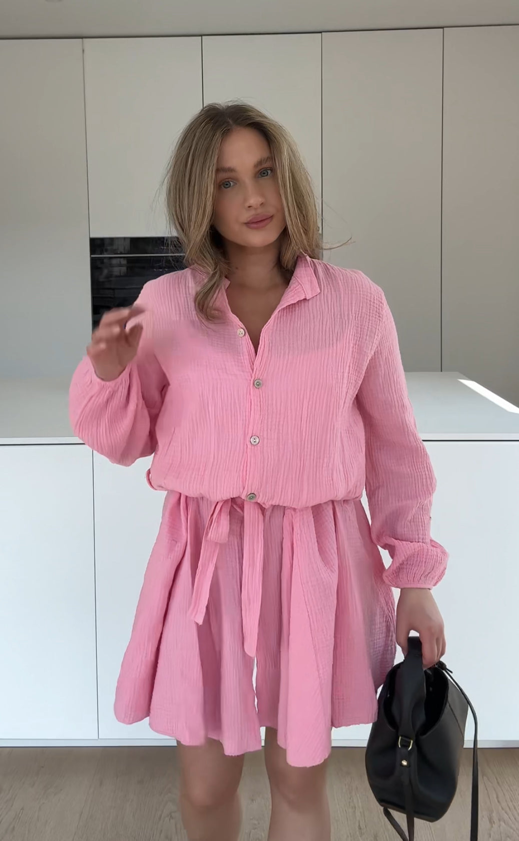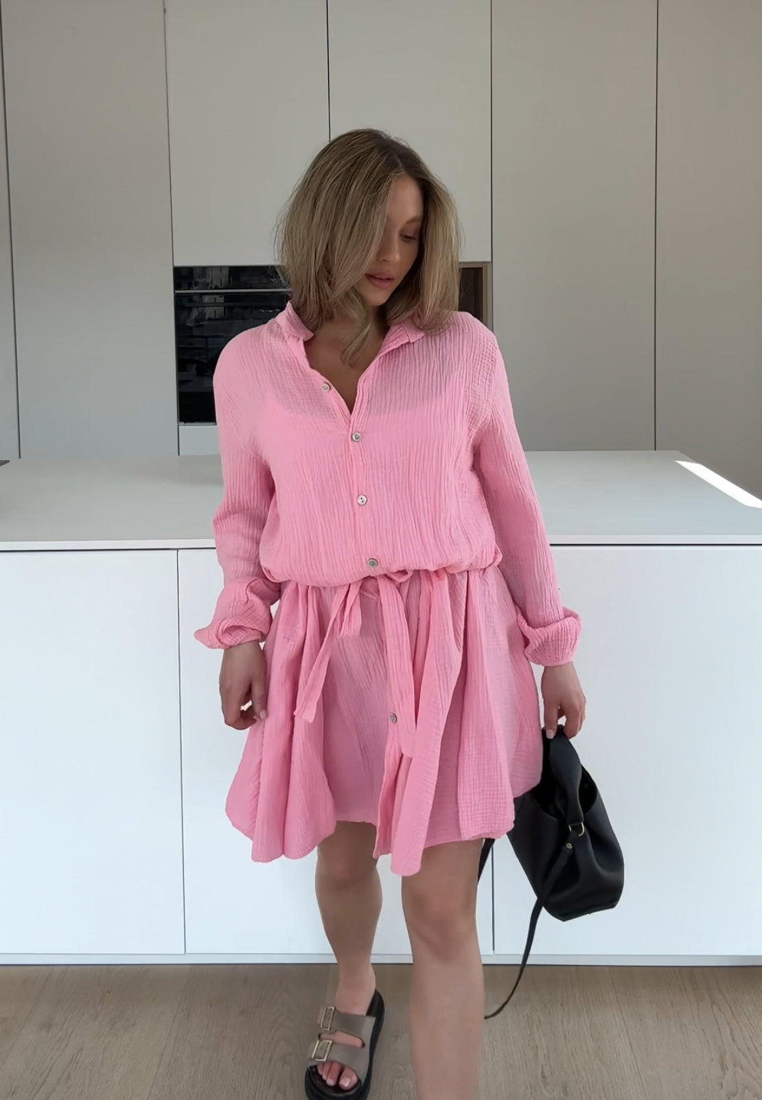 WAFFLE DRESS PINK
