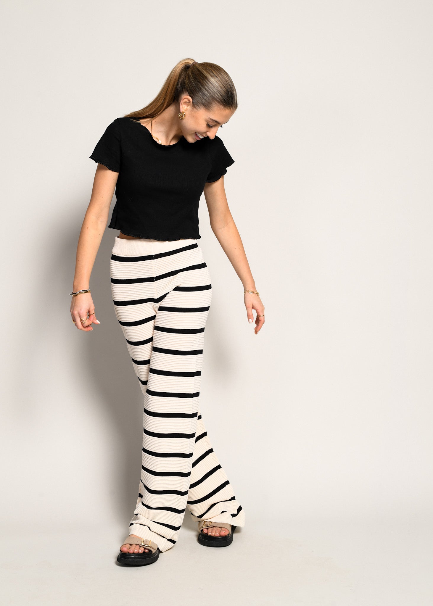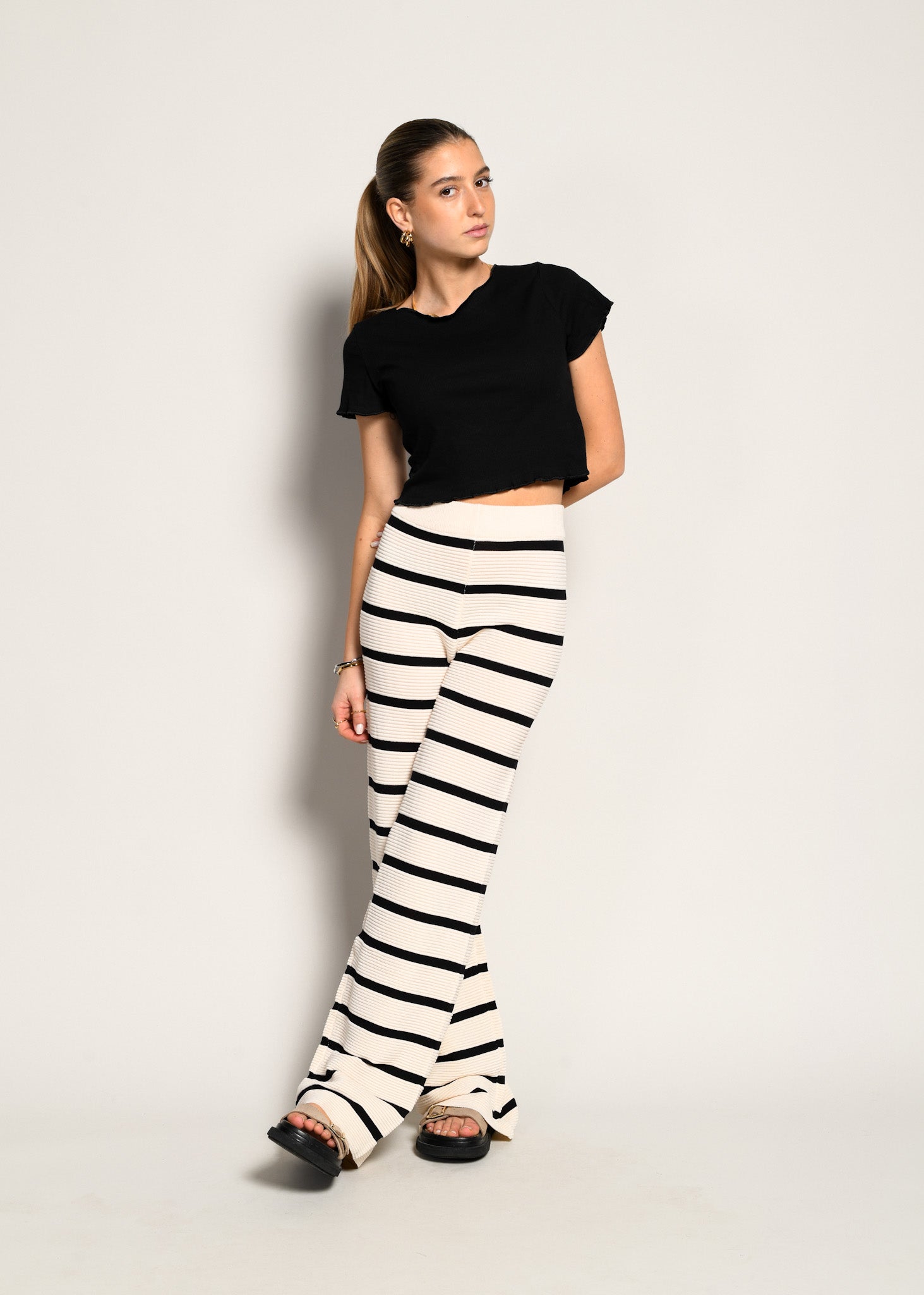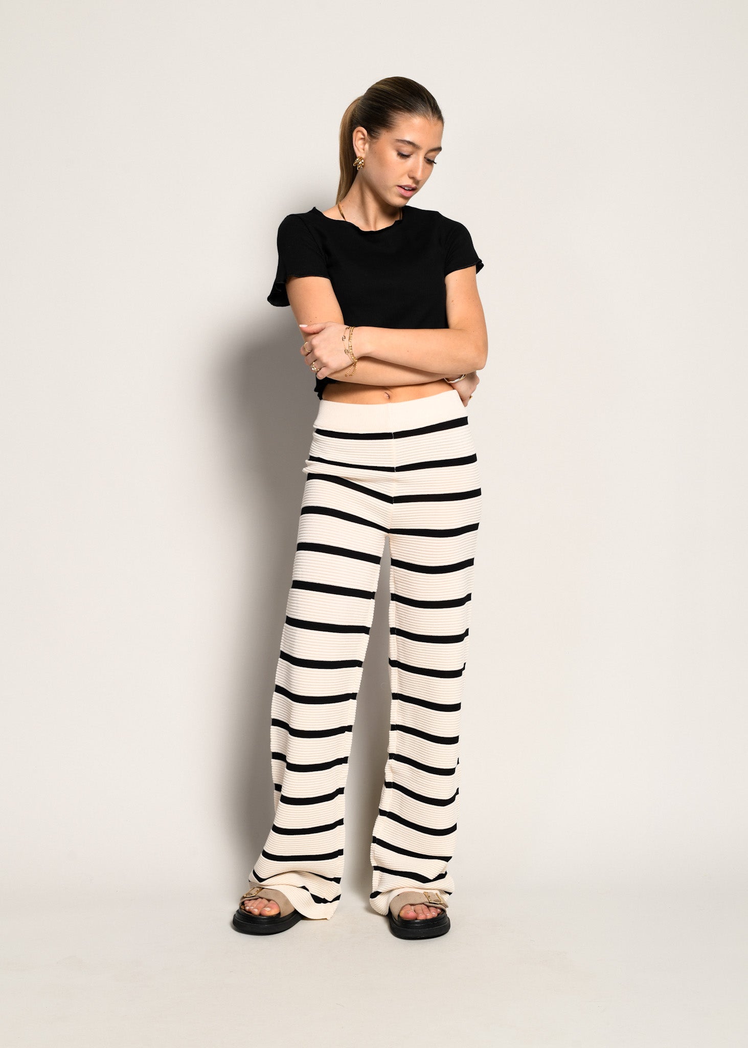 ARTIKELDETAILS: gestreifte Hose mit hohem Bund in beige