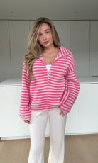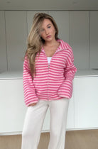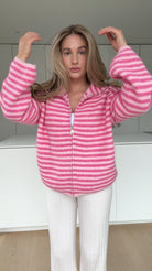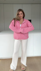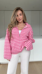 STRIPED ZIP KNIT CARDIGAN HIMBEERE
