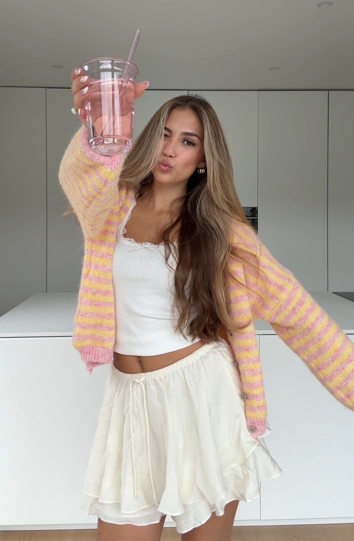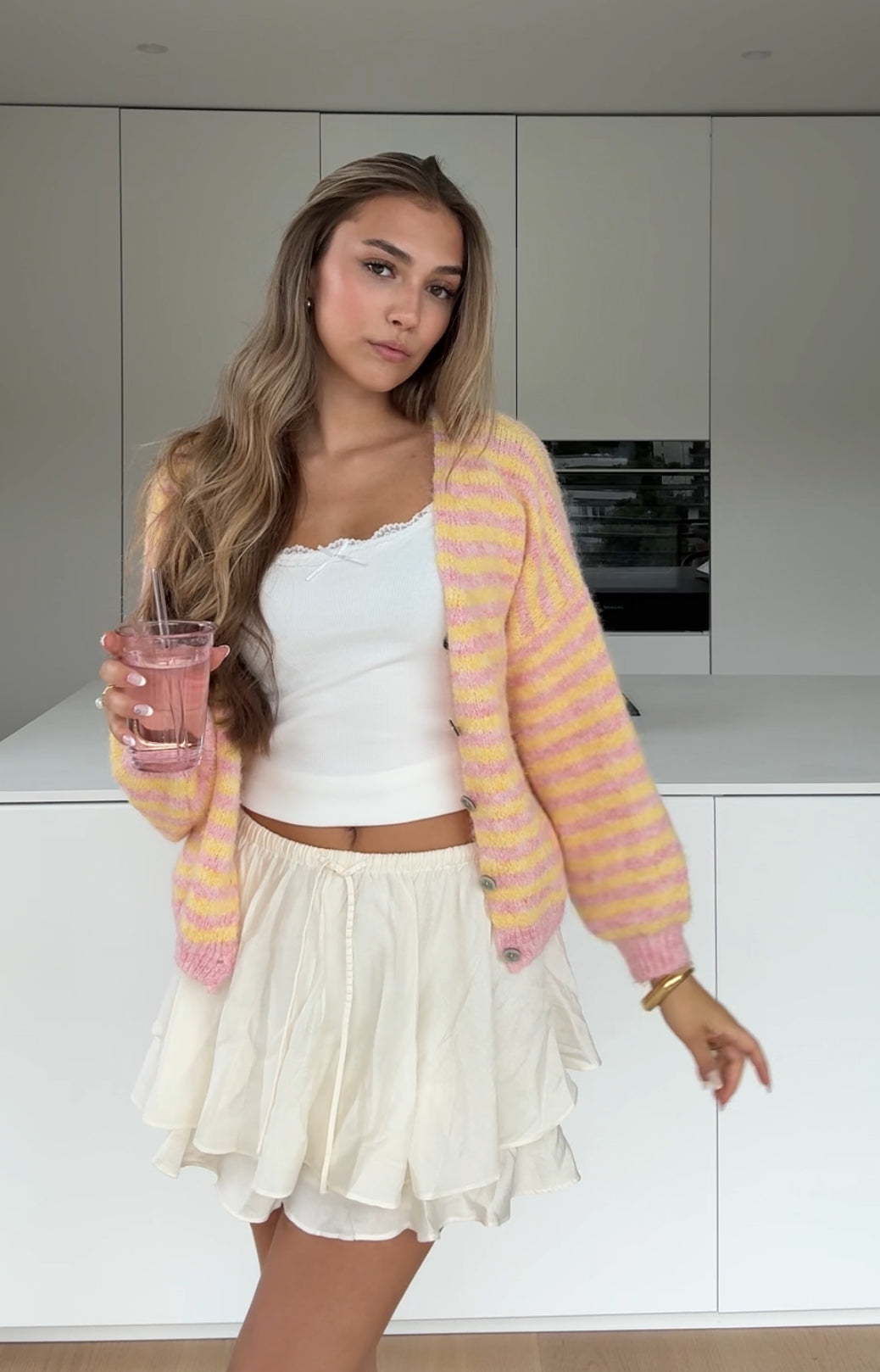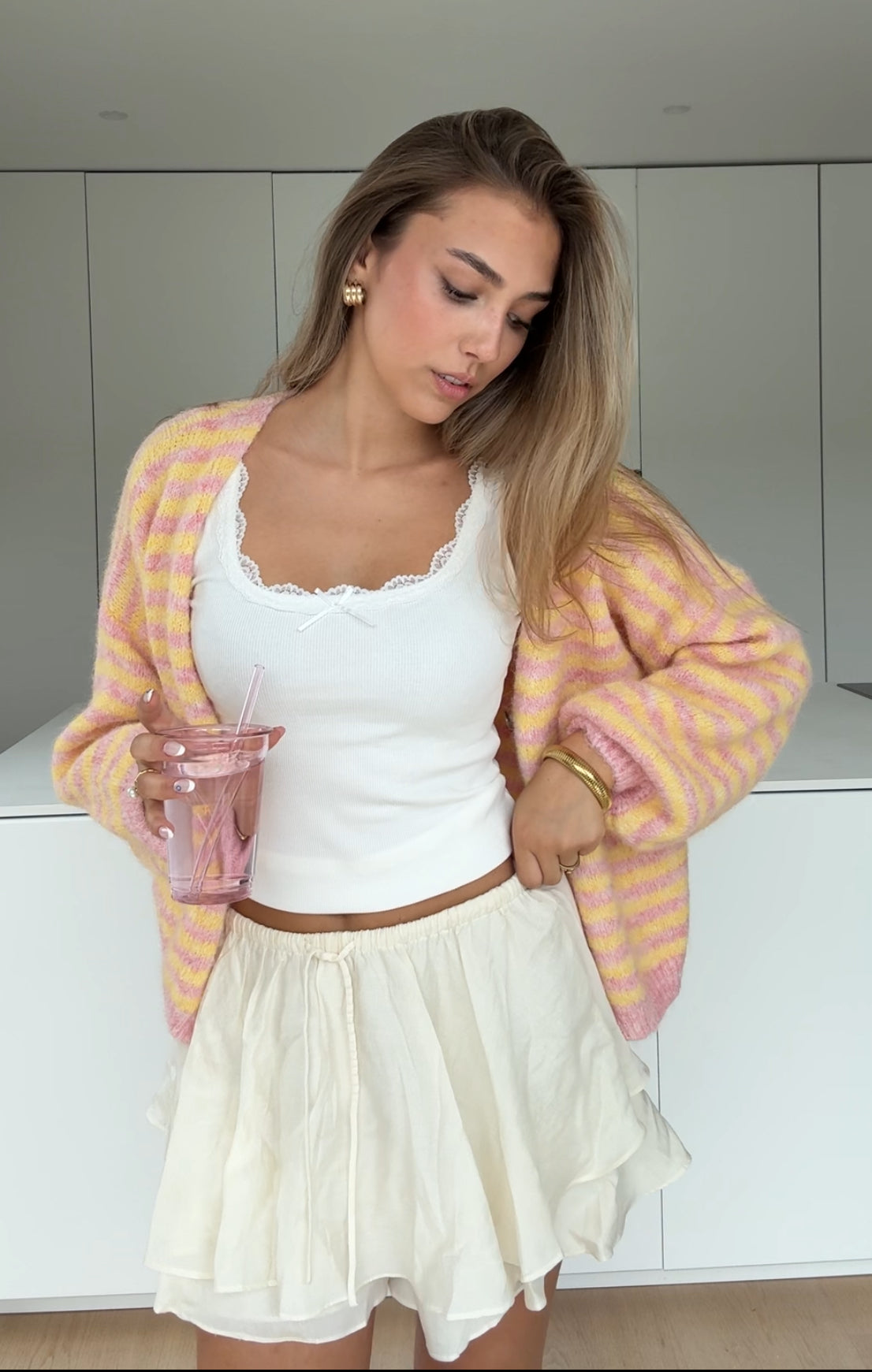 STRIPED WAFFLE BLUSE PEACH LEMON