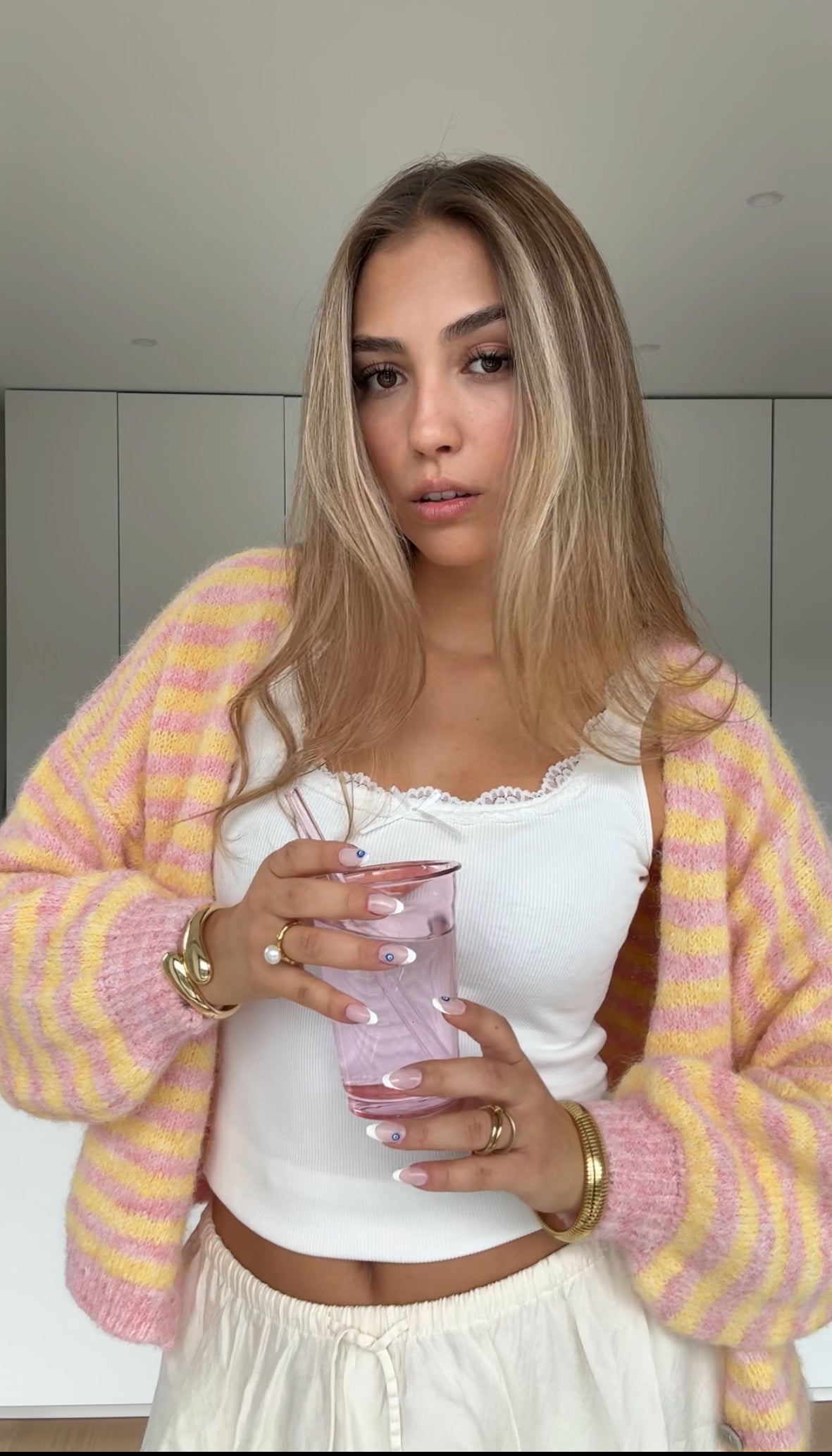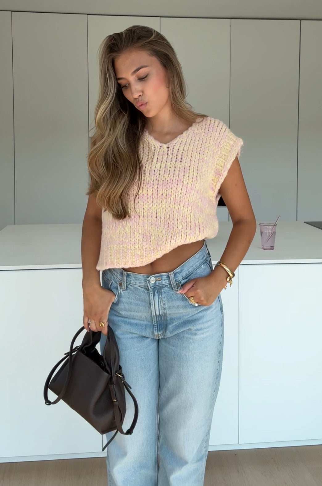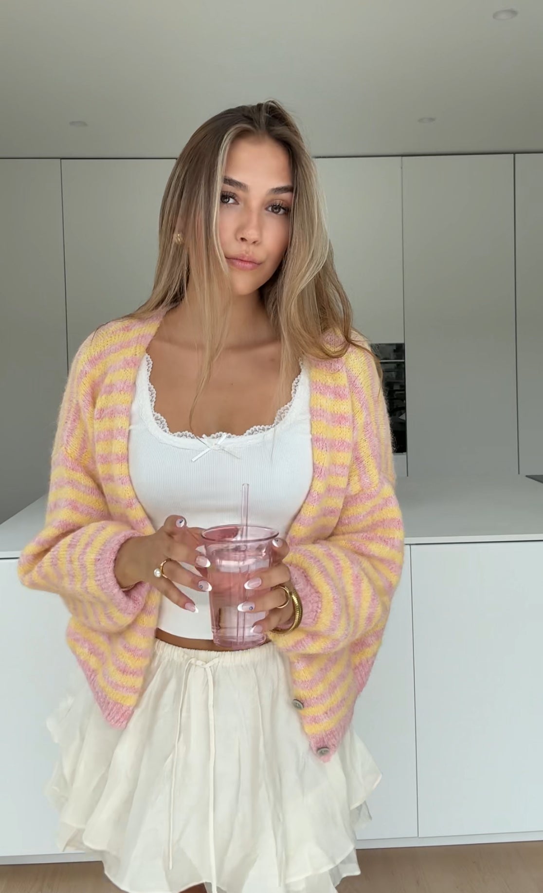 STRIPED WAFFLE BLUSE PEACH LEMON