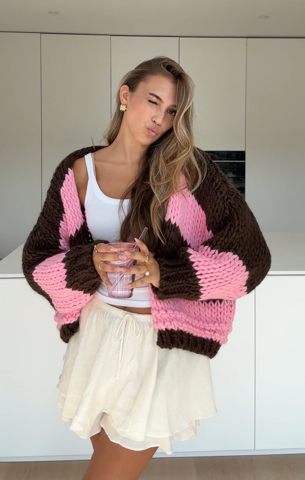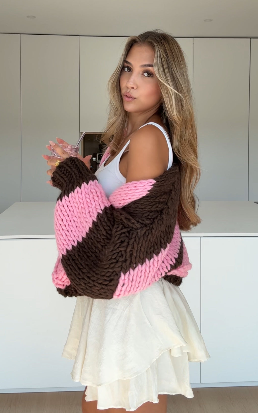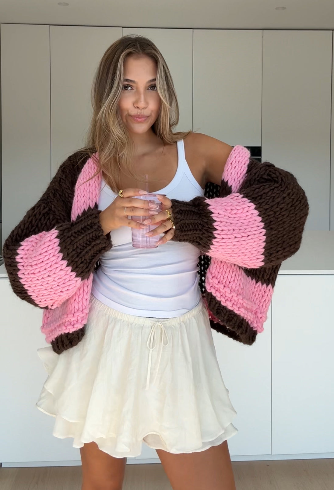 CHUNKY STRIPED CARDIGAN TOFFEE