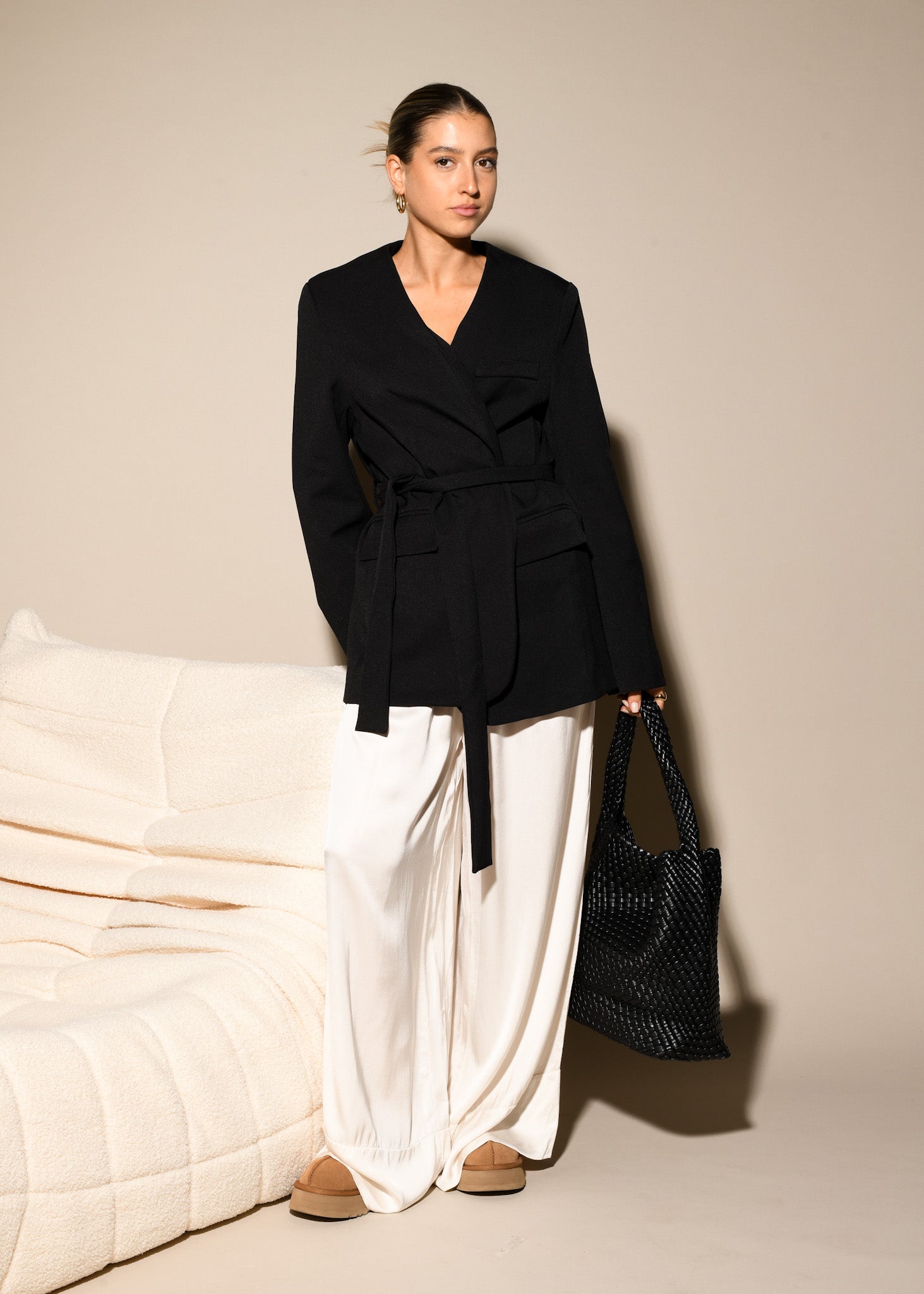 ARTIKELDETAILS: schicker Blazer mit Gürtel in der Farbe schwarz