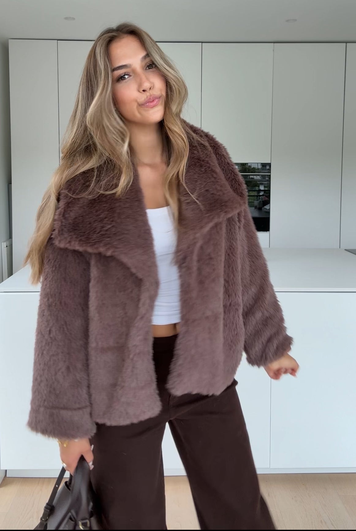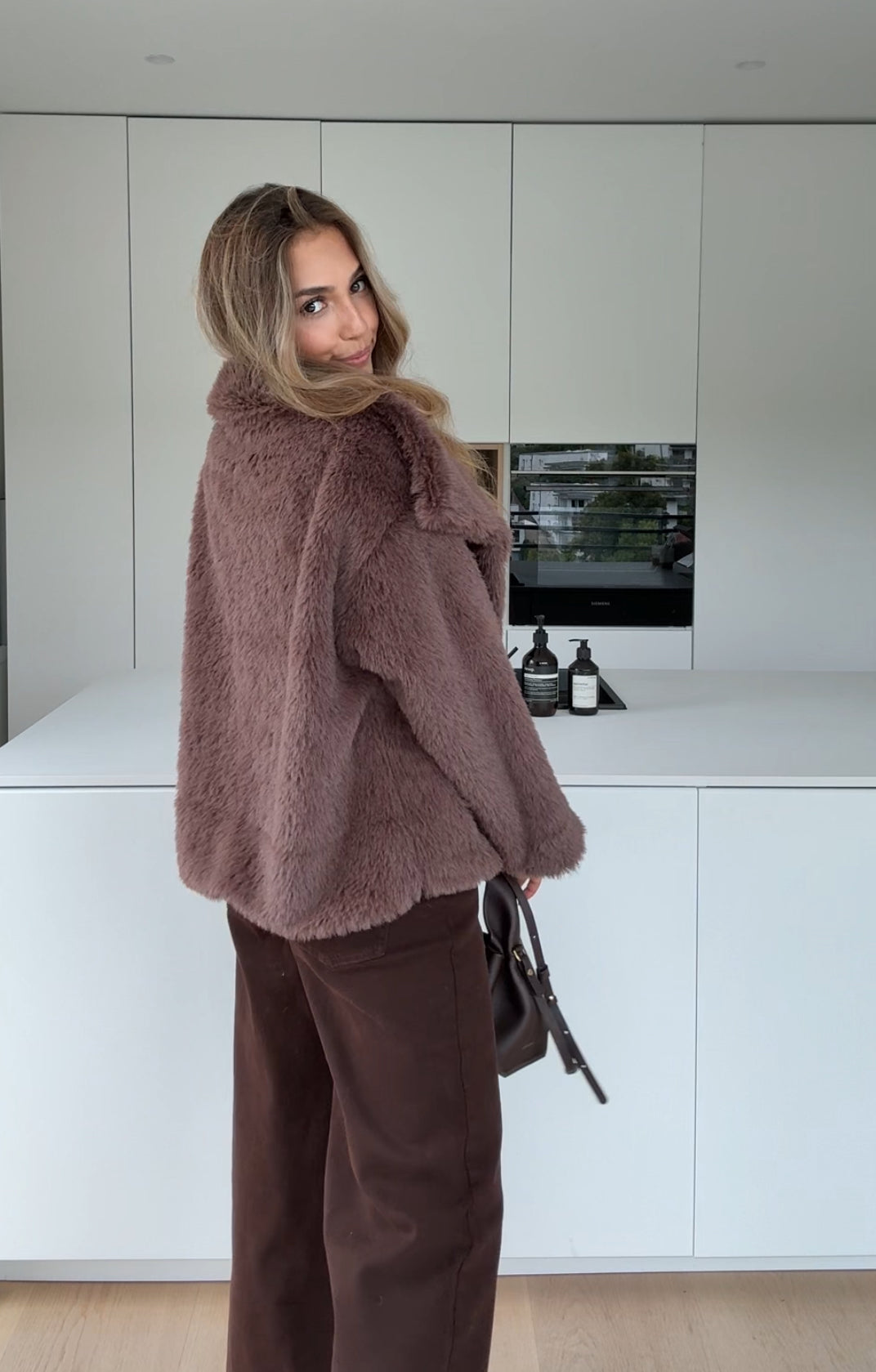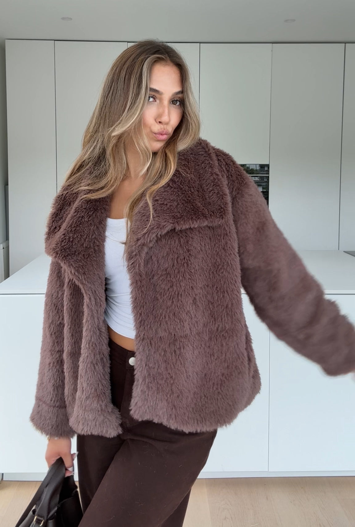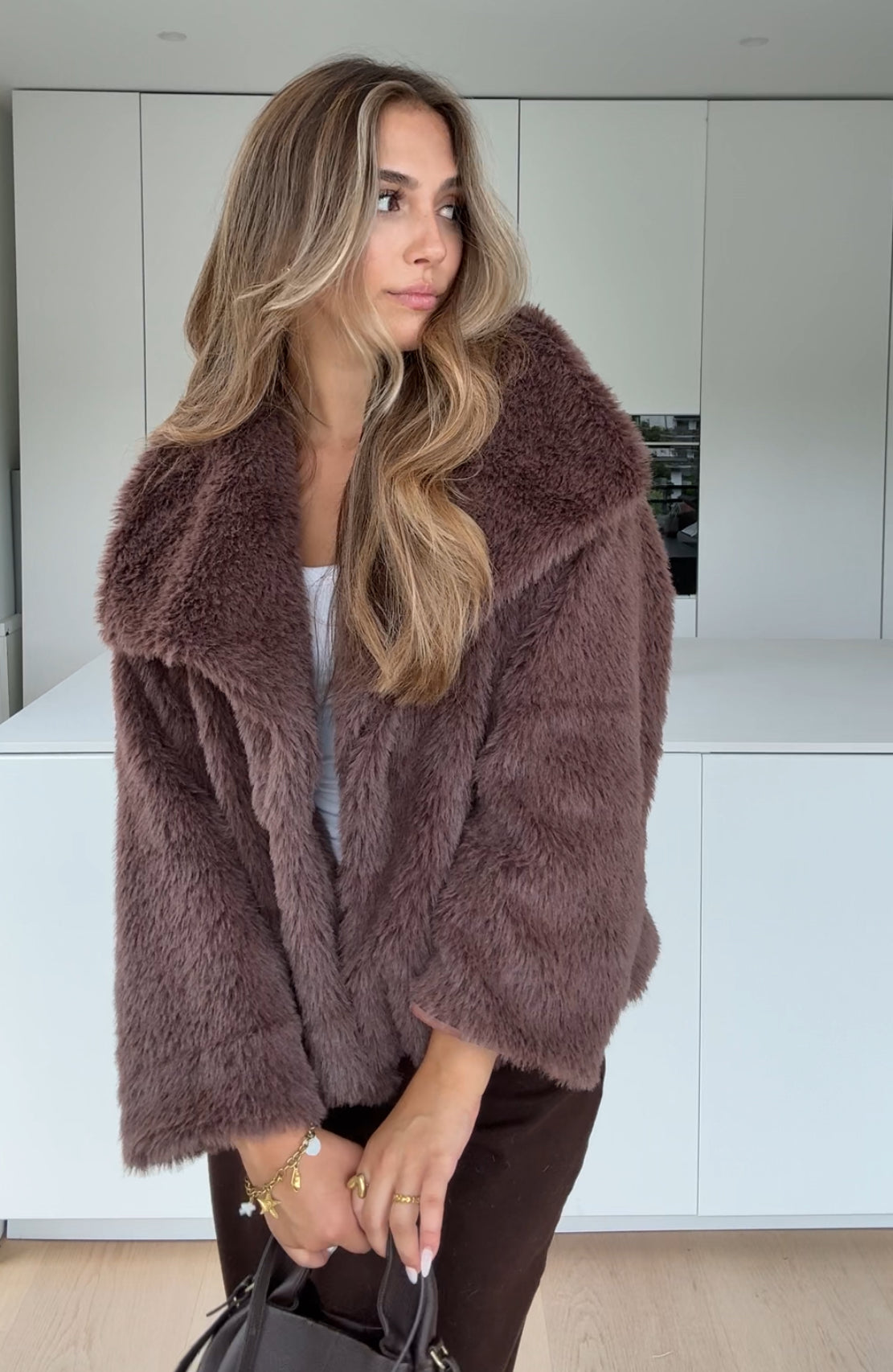 FAUX FUR COAT MILKCHOCOLATE