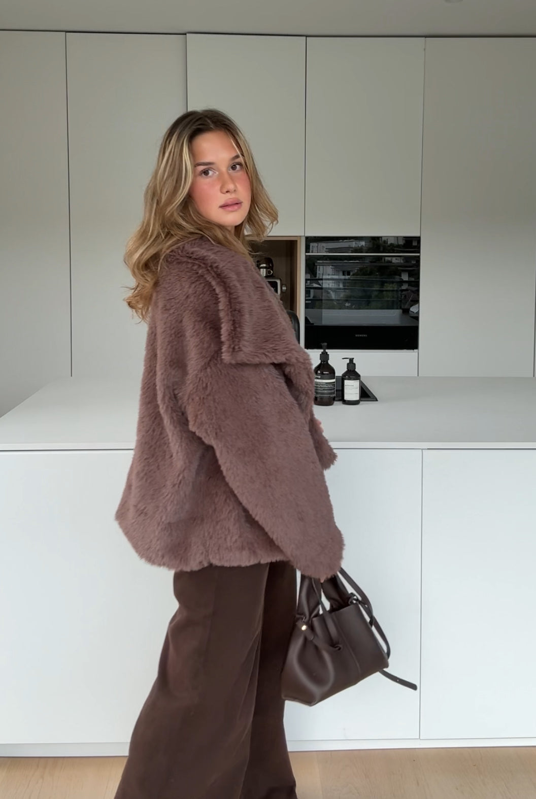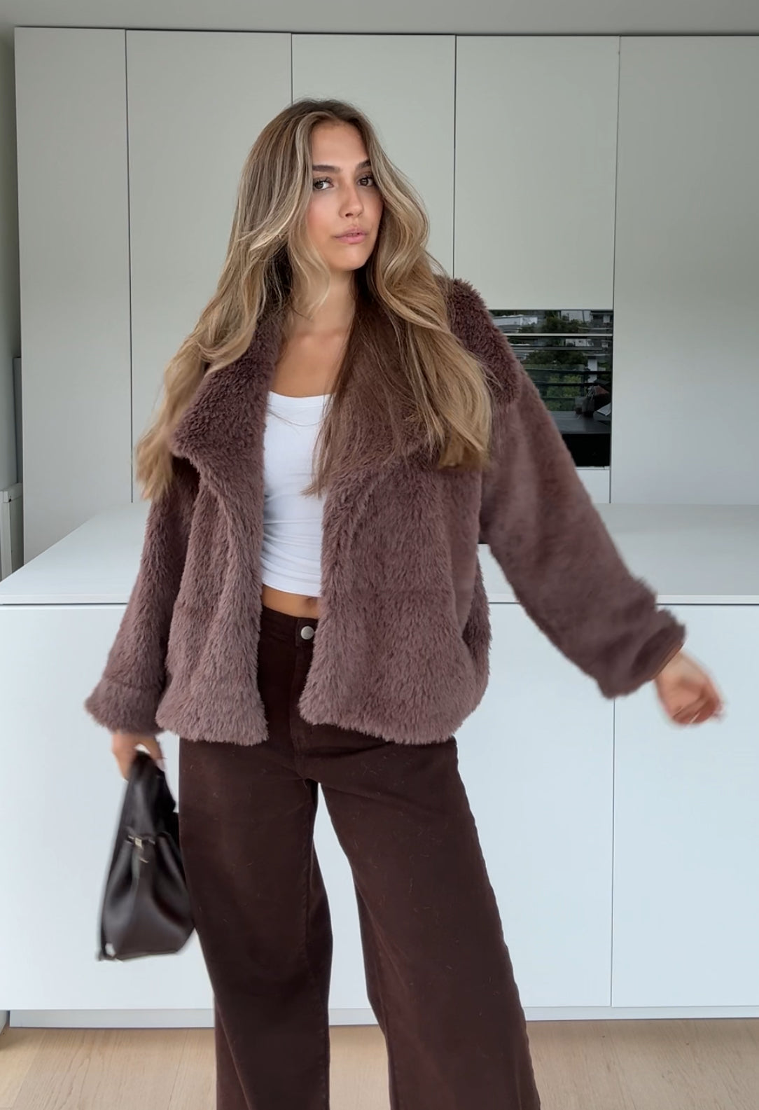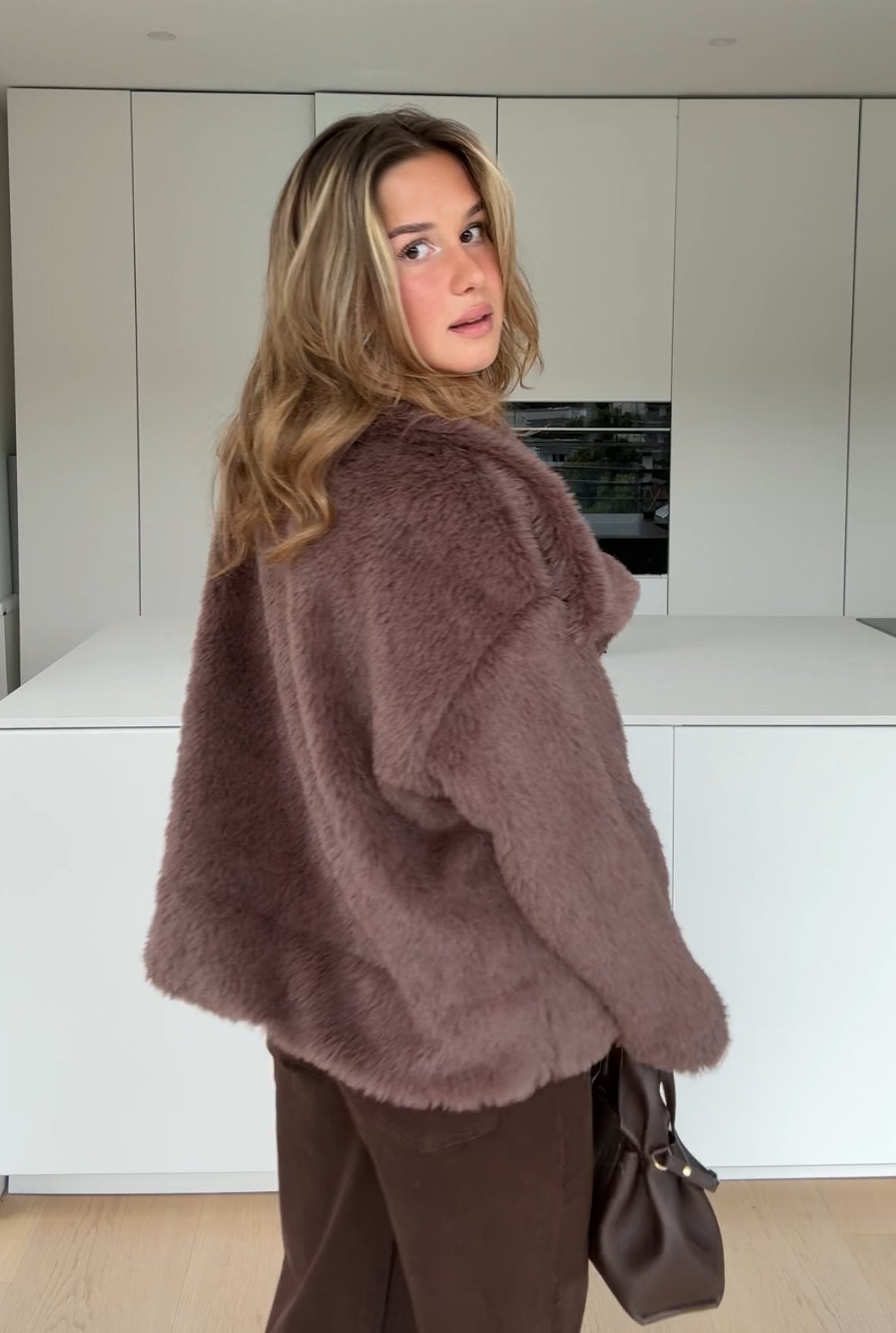 FAUX FUR COAT MILKCHOCOLATE