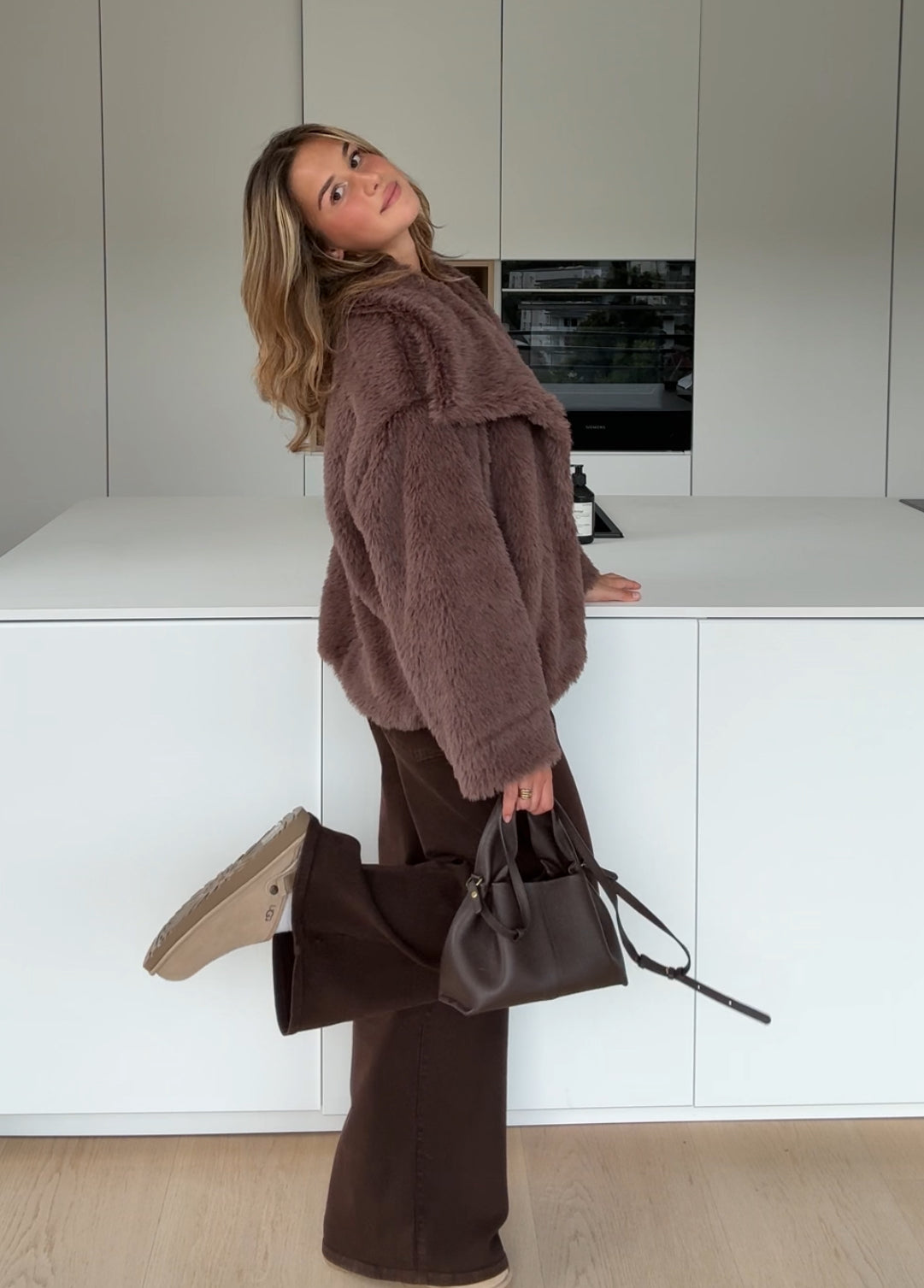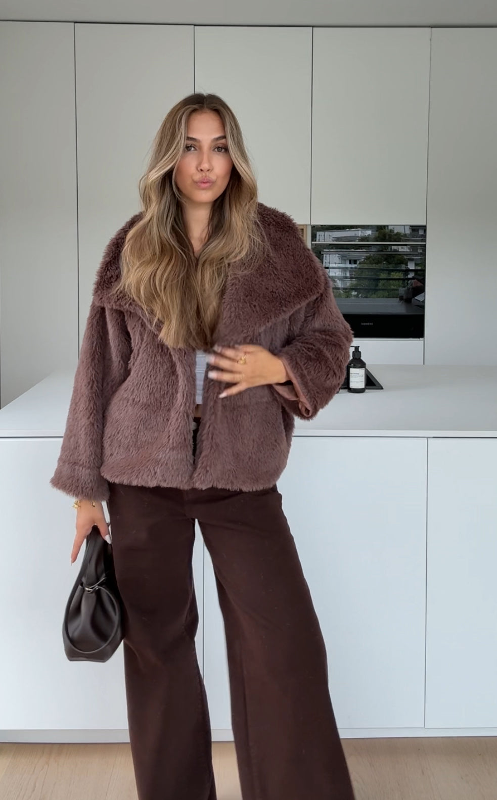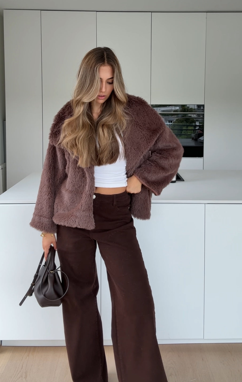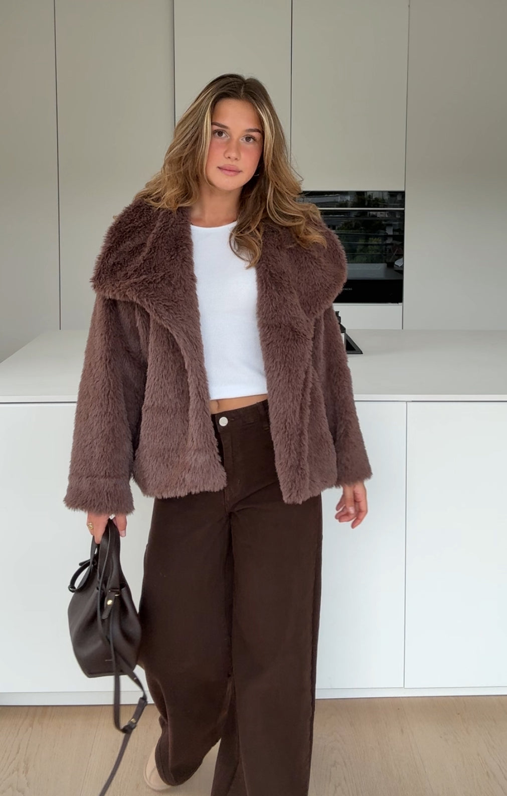 FAUX FUR COAT MILKCHOCOLATE