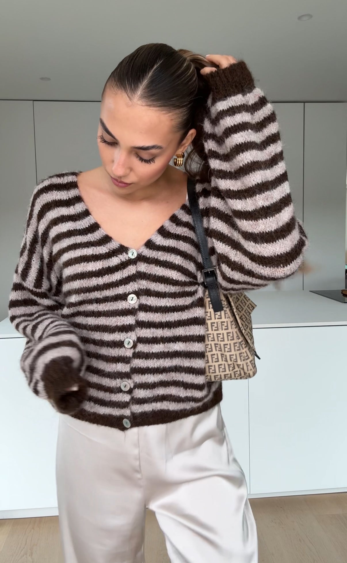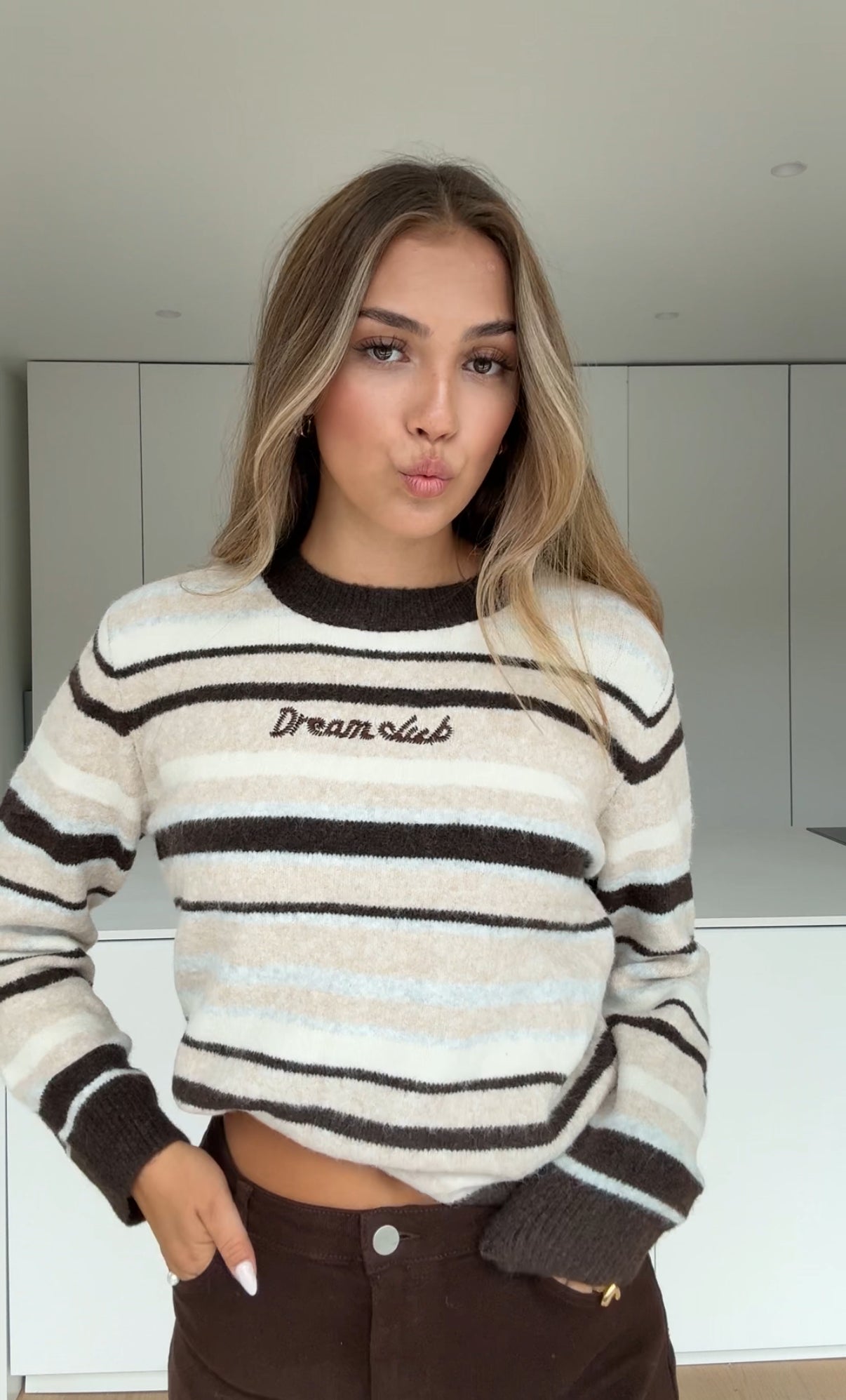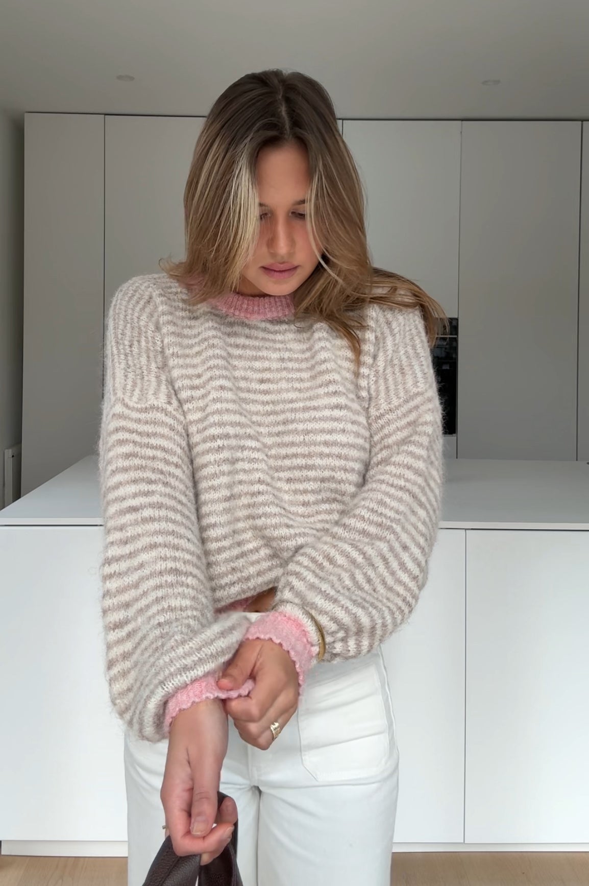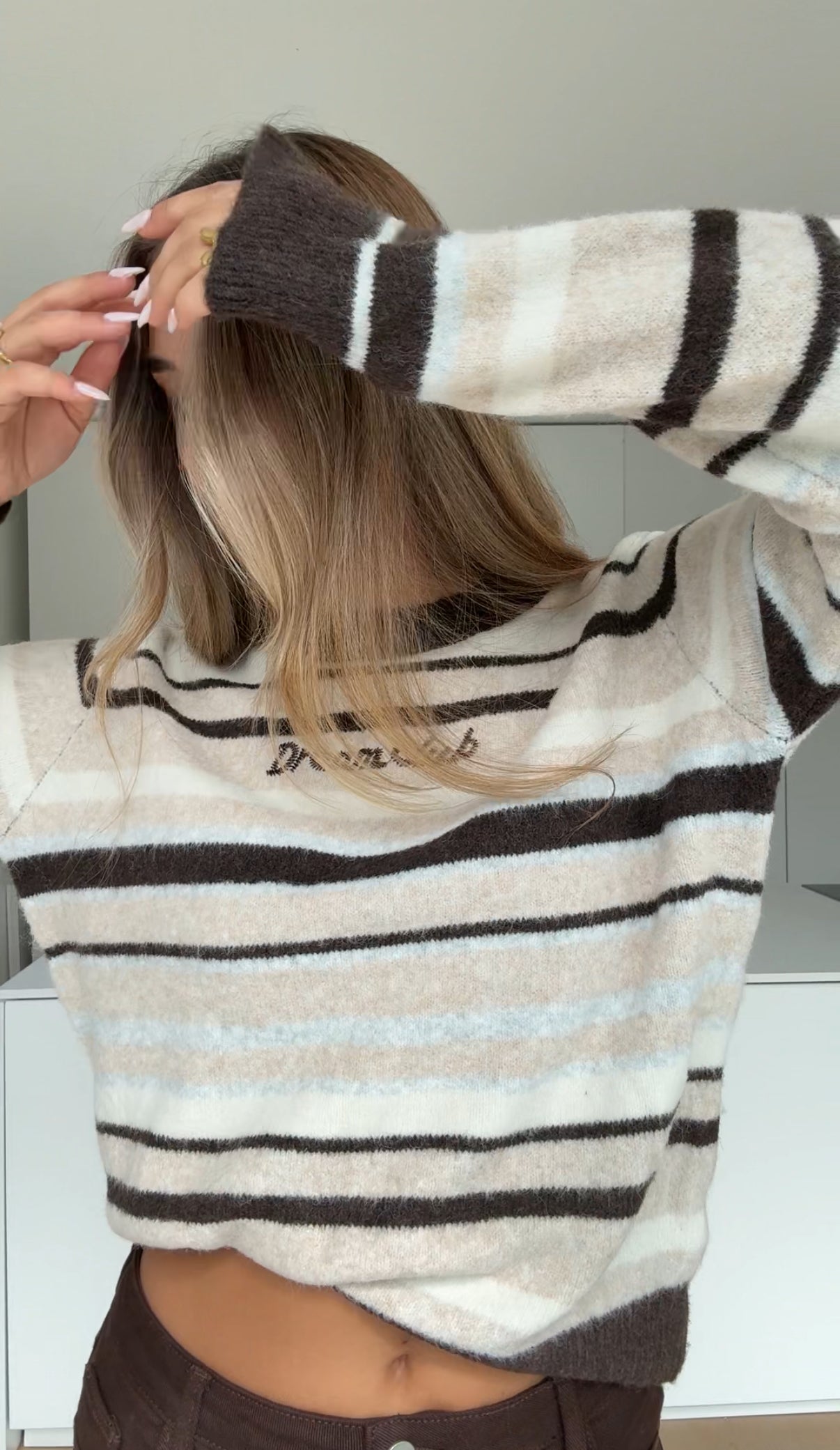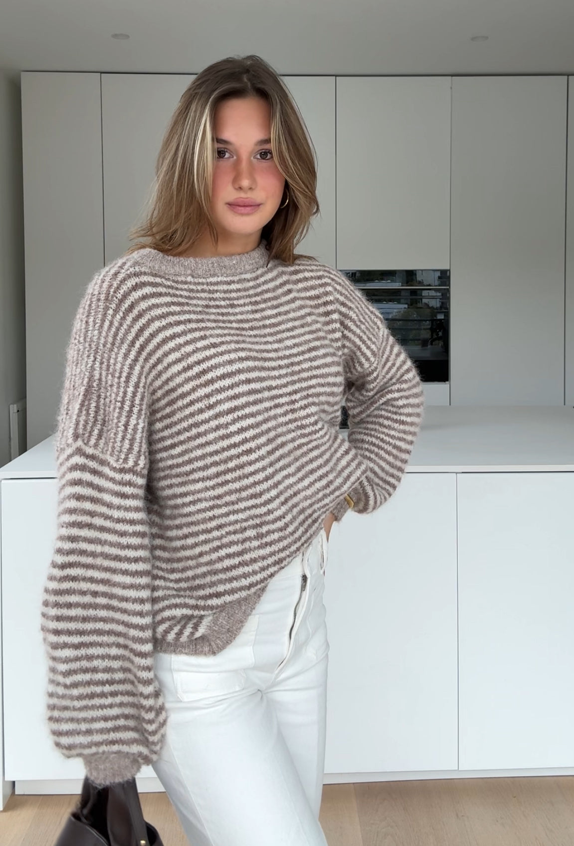 SOFT STRIPE PULLOVER TAUPE