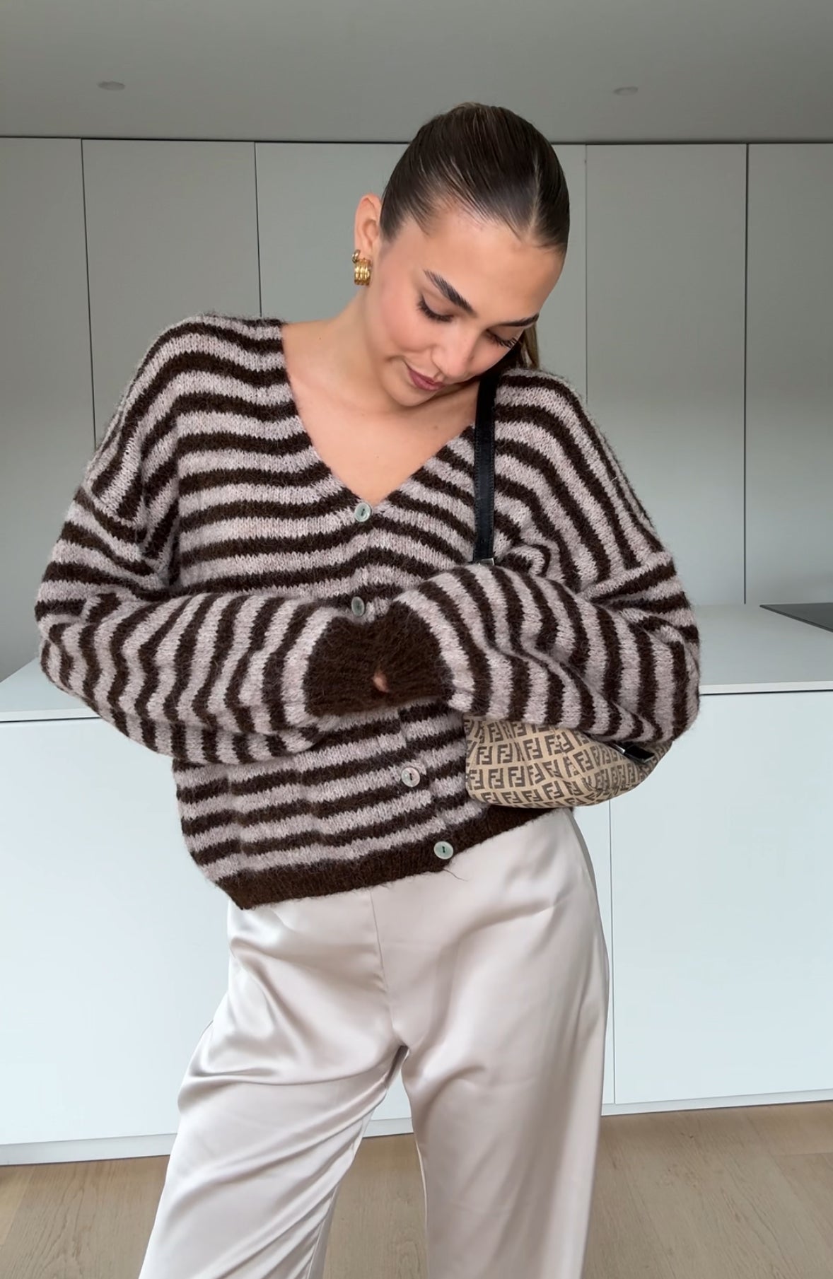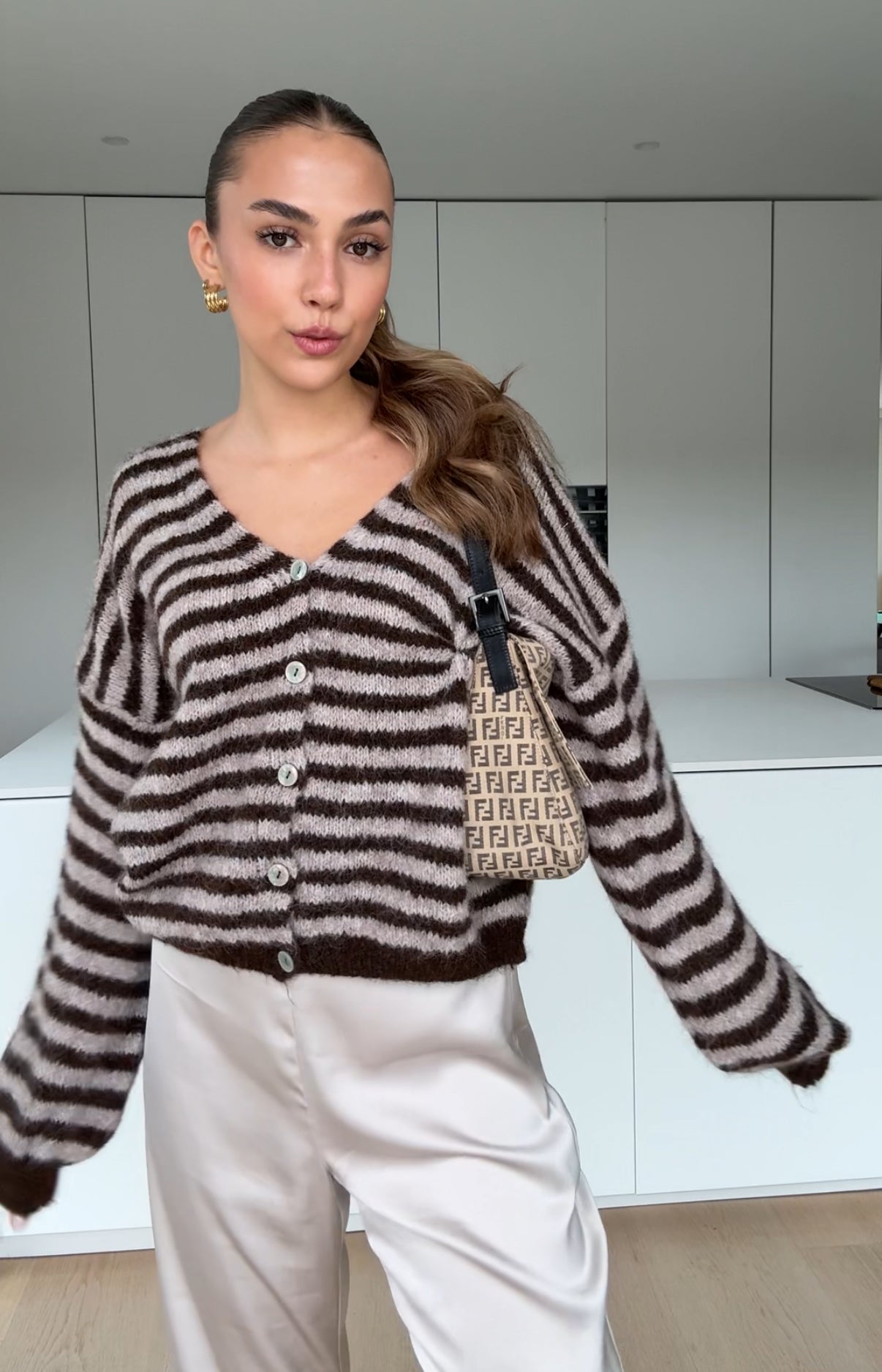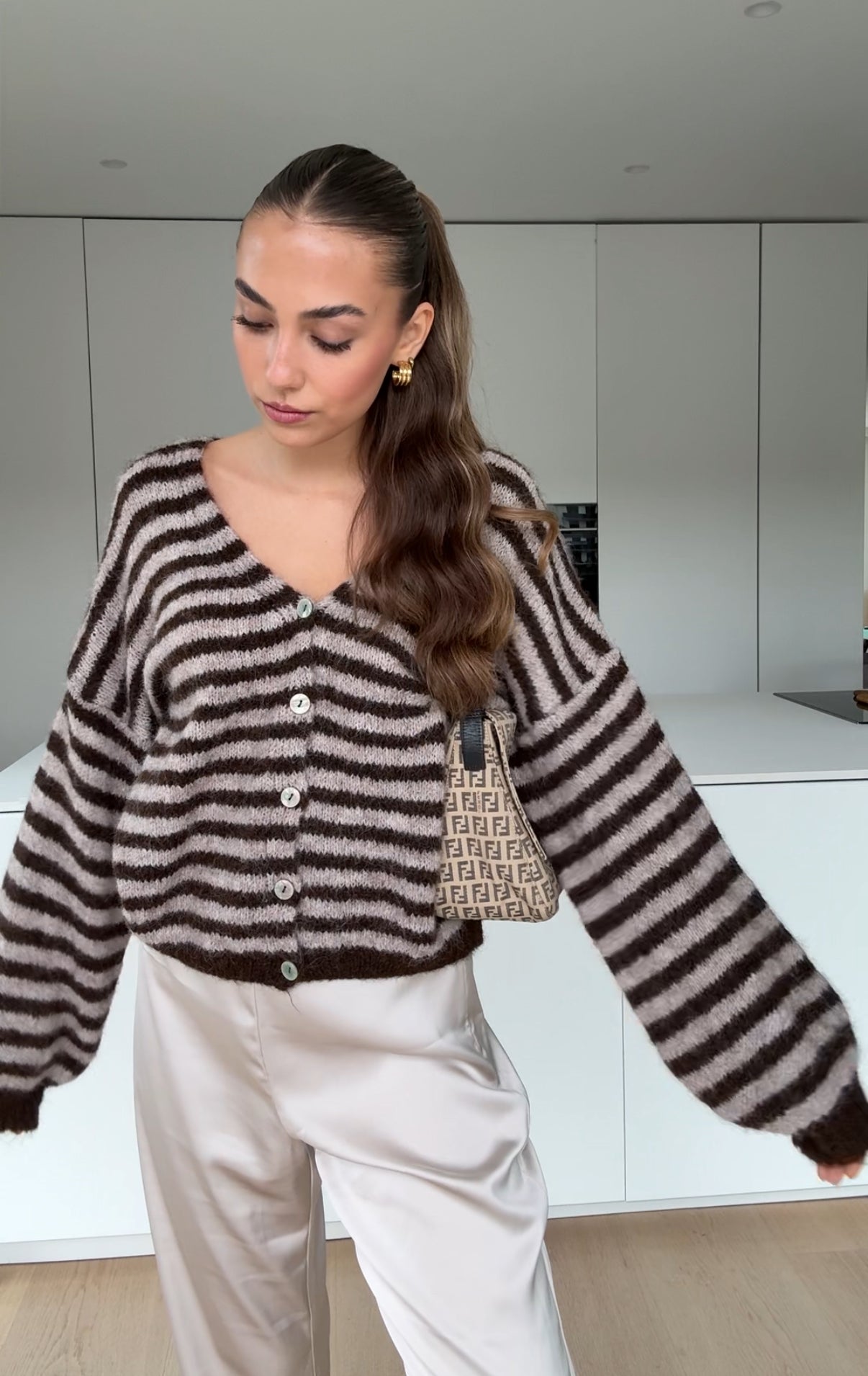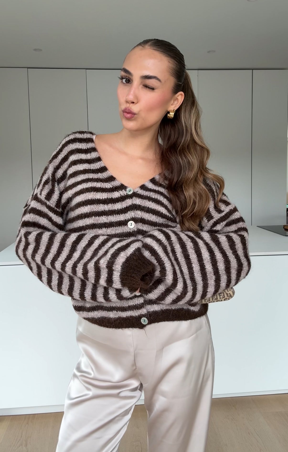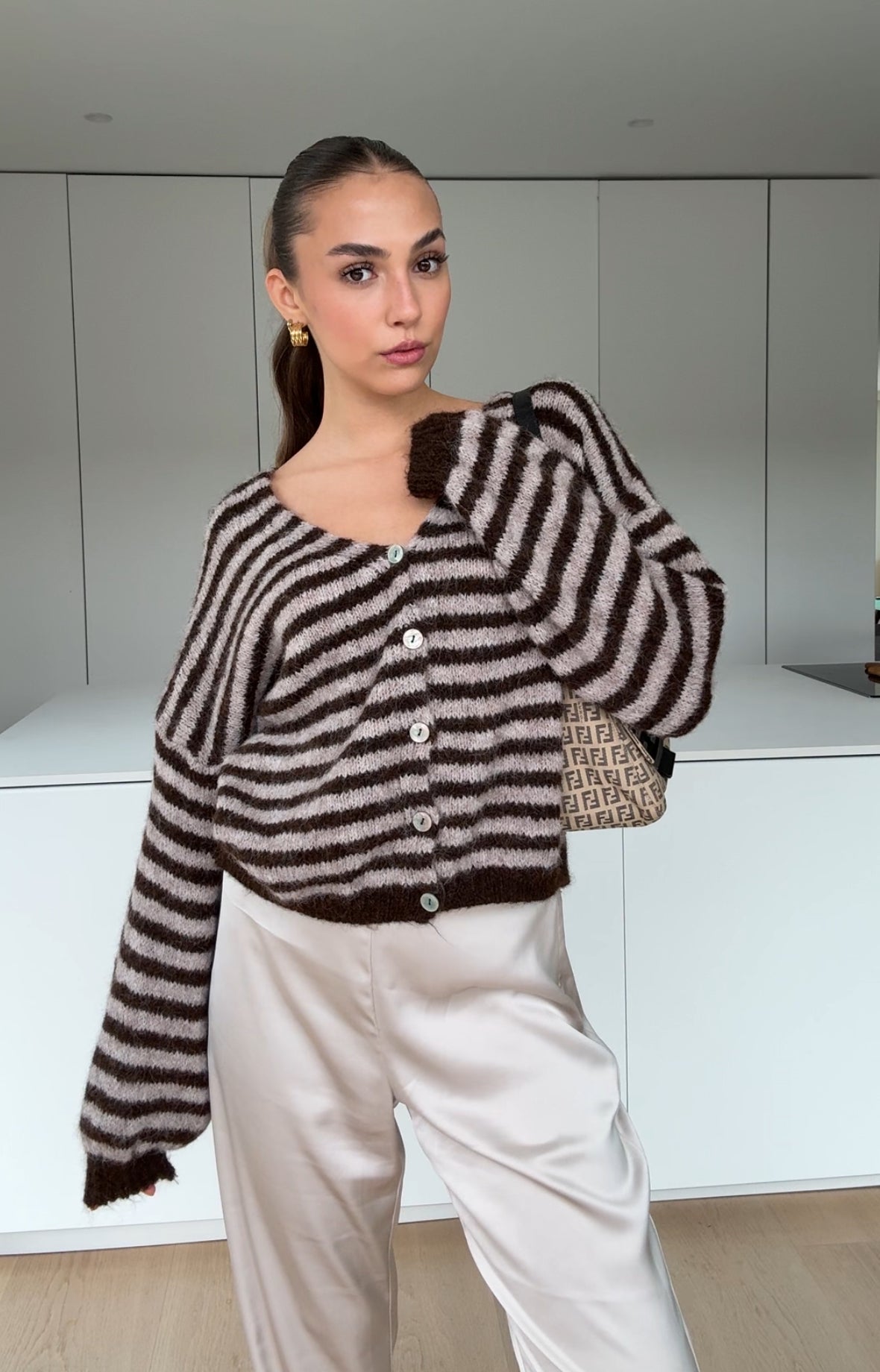 COLOR STRIPED CARDIGAN DARK CHOCOLATE