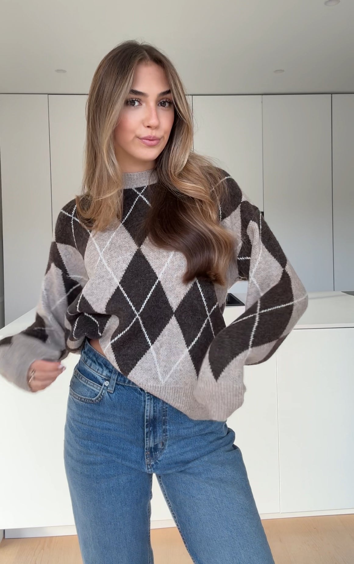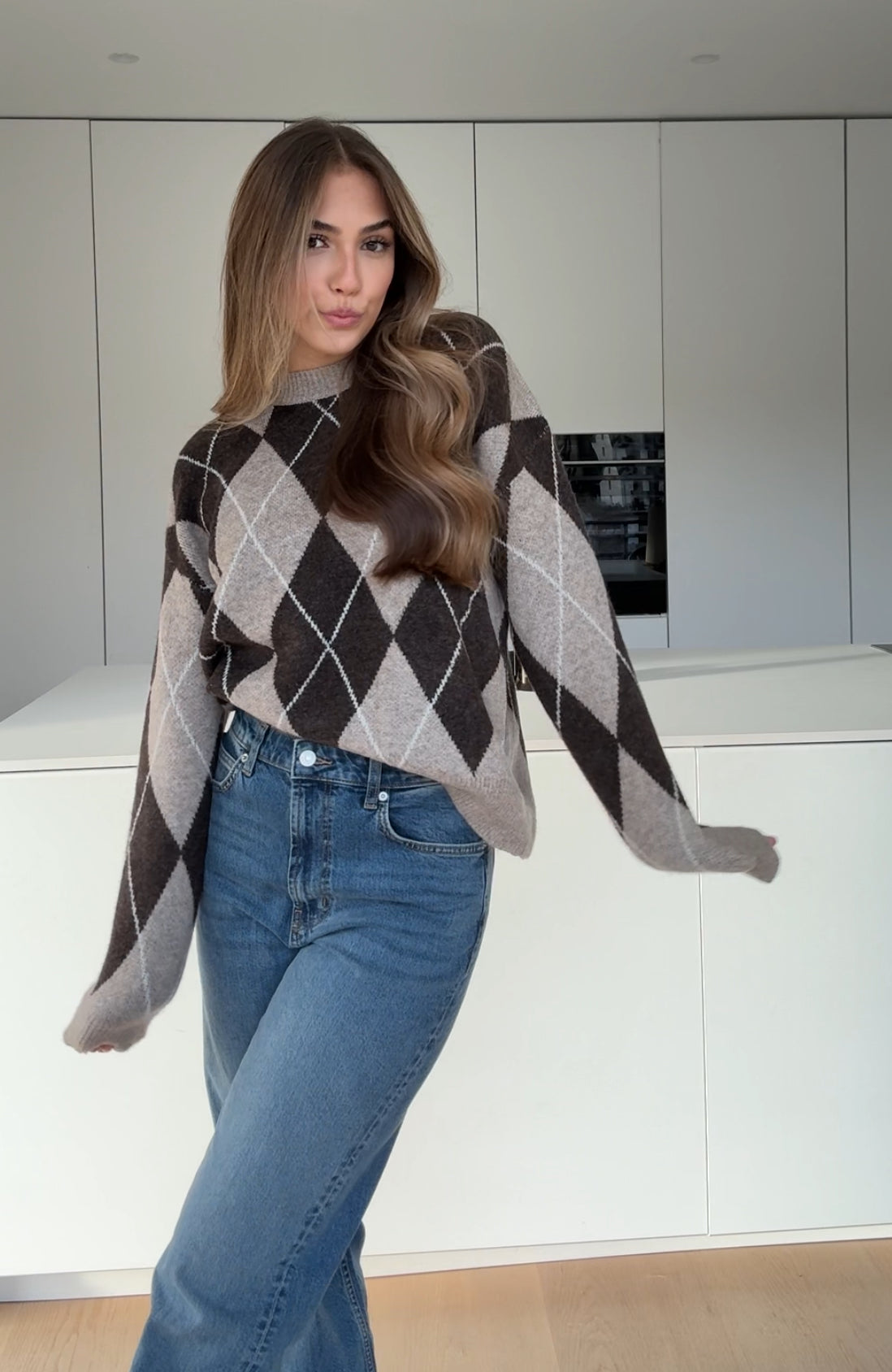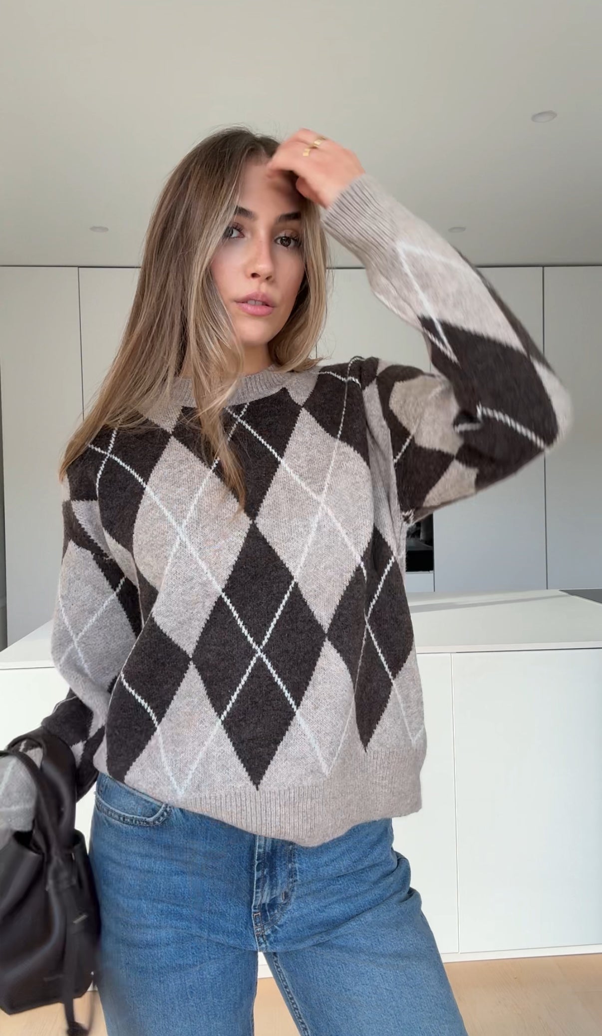 OVERSIZED PLAID PULLOVER COFFEE