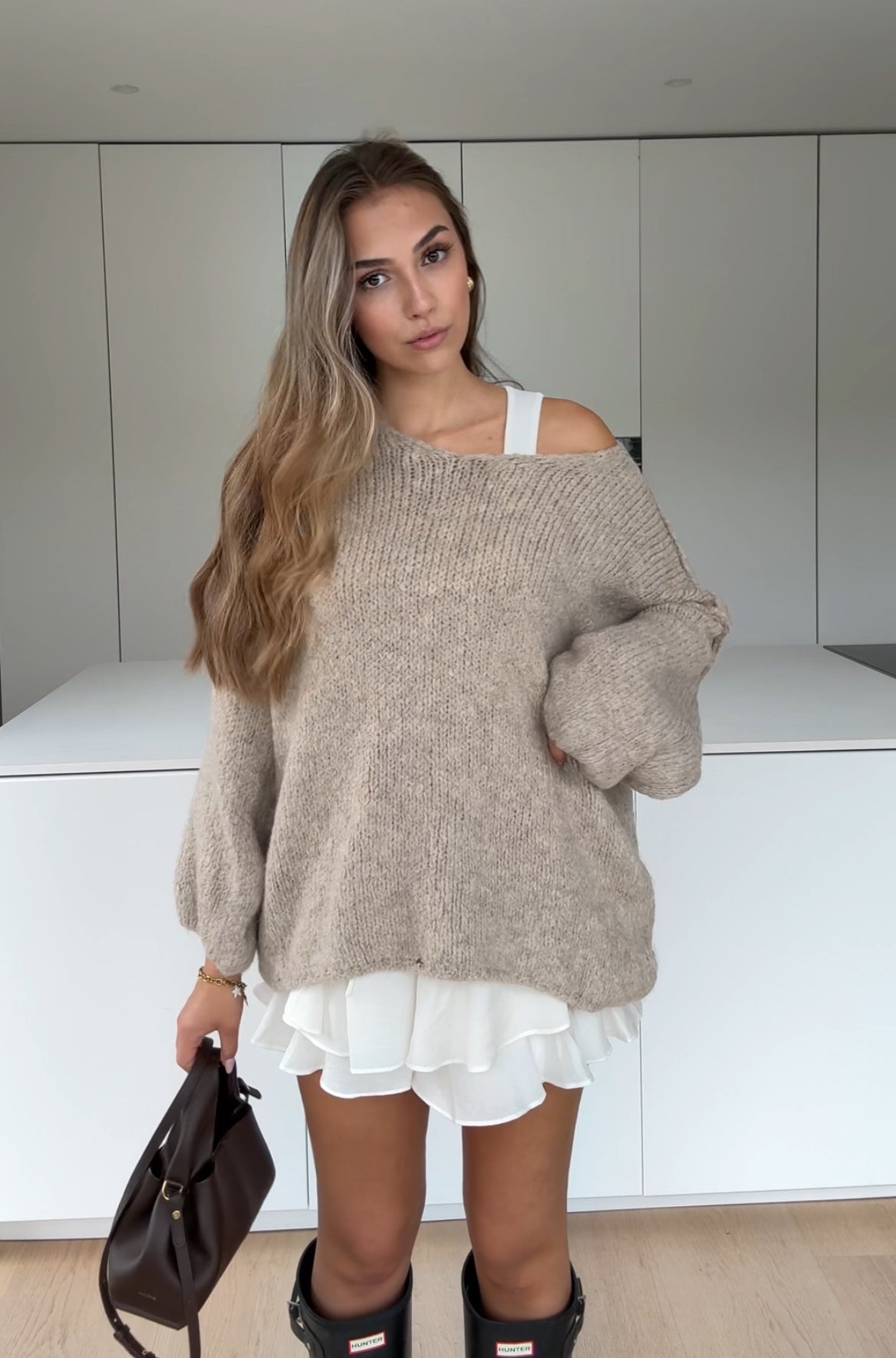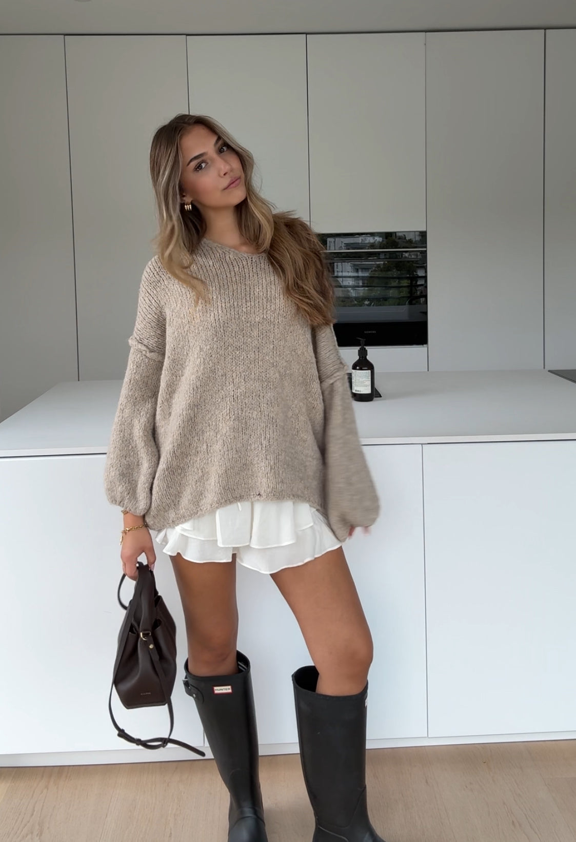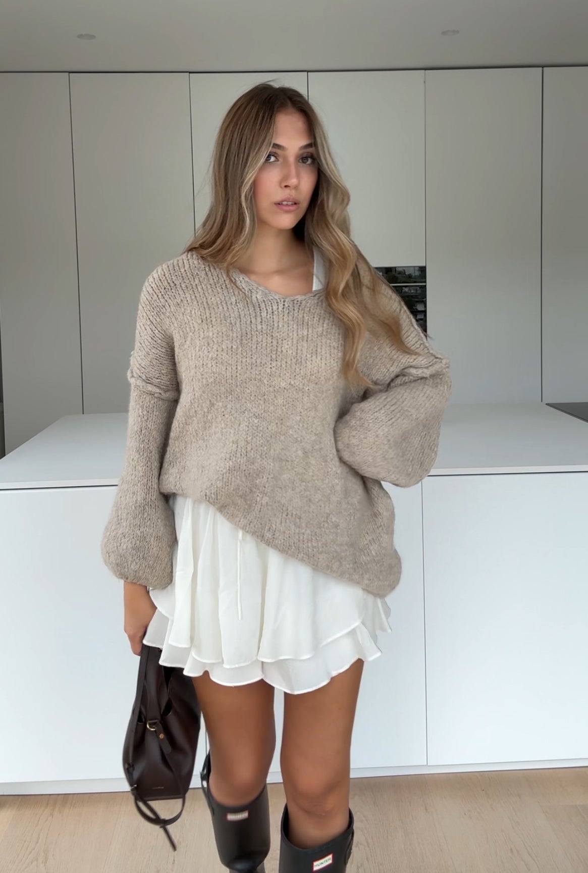 OVERSIZED V-NECK PULLOVER CINNAMON