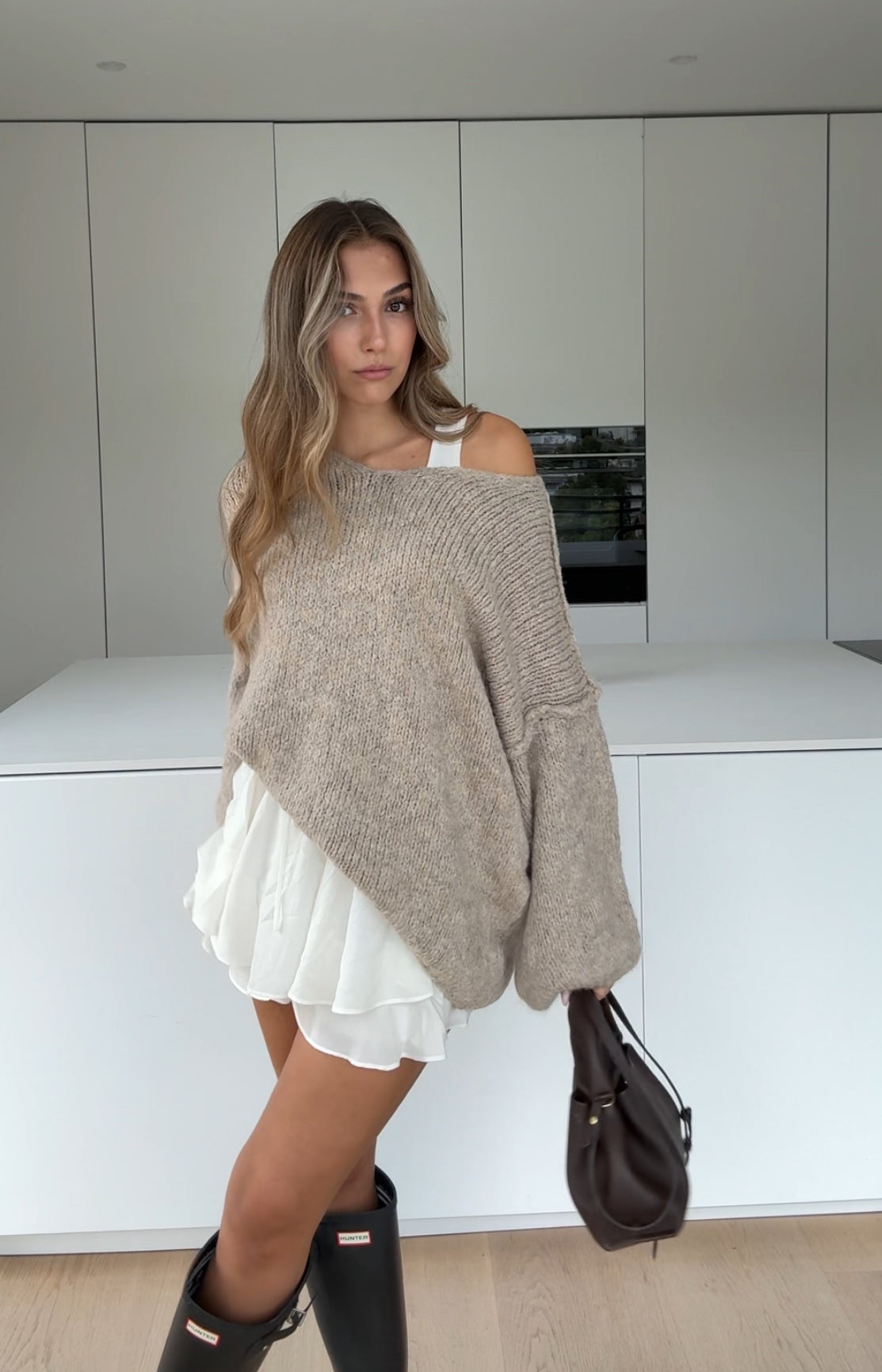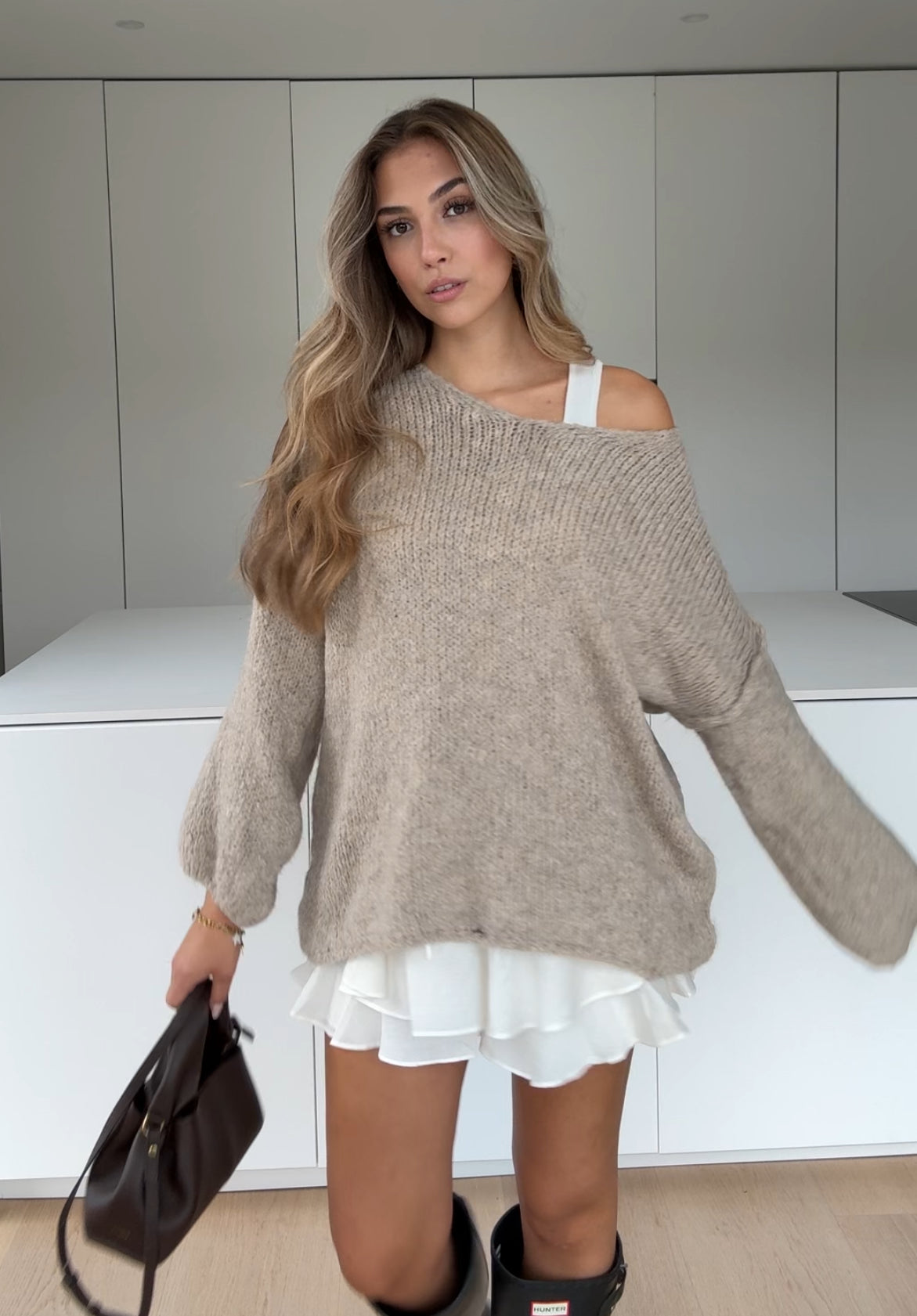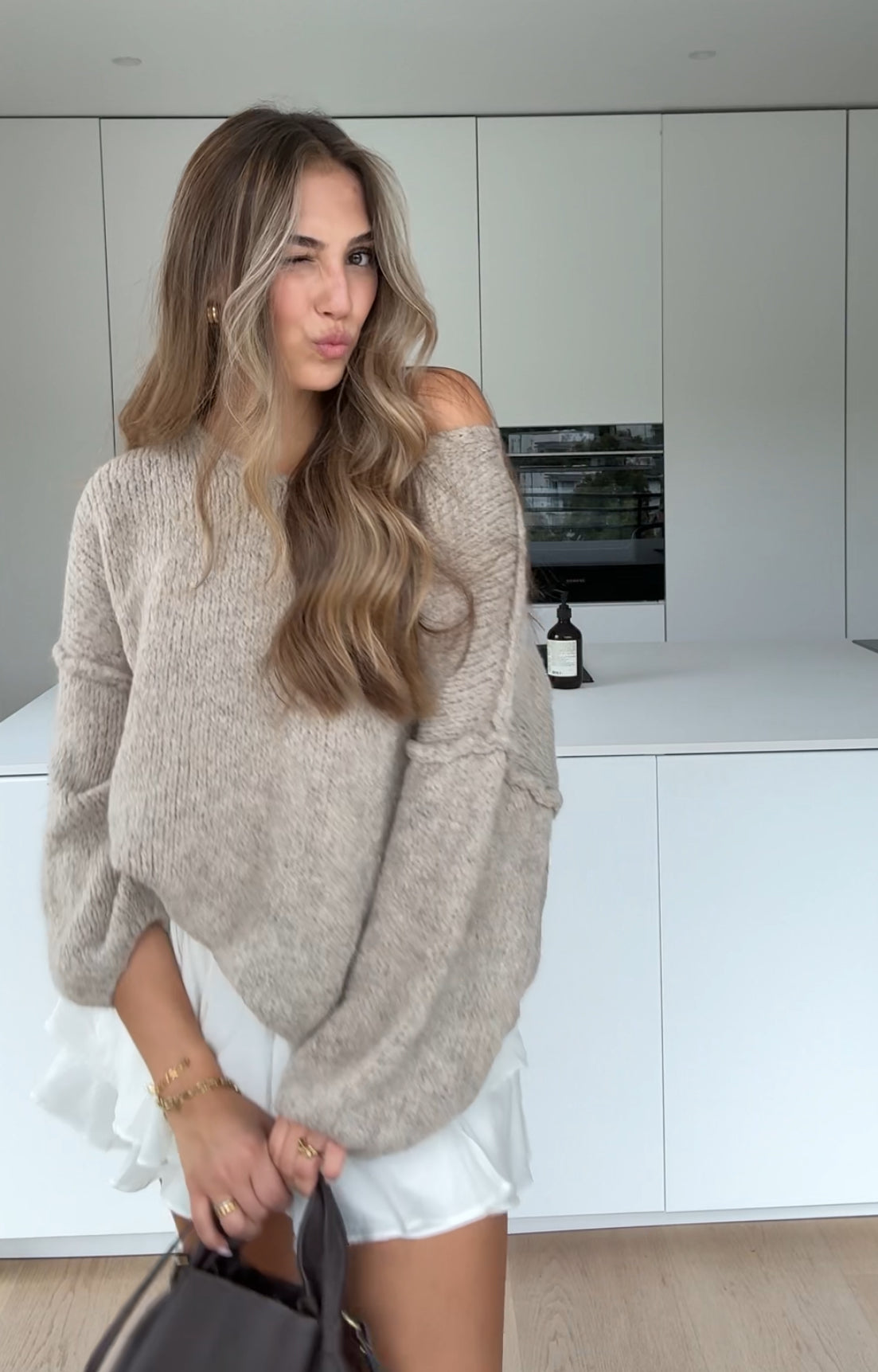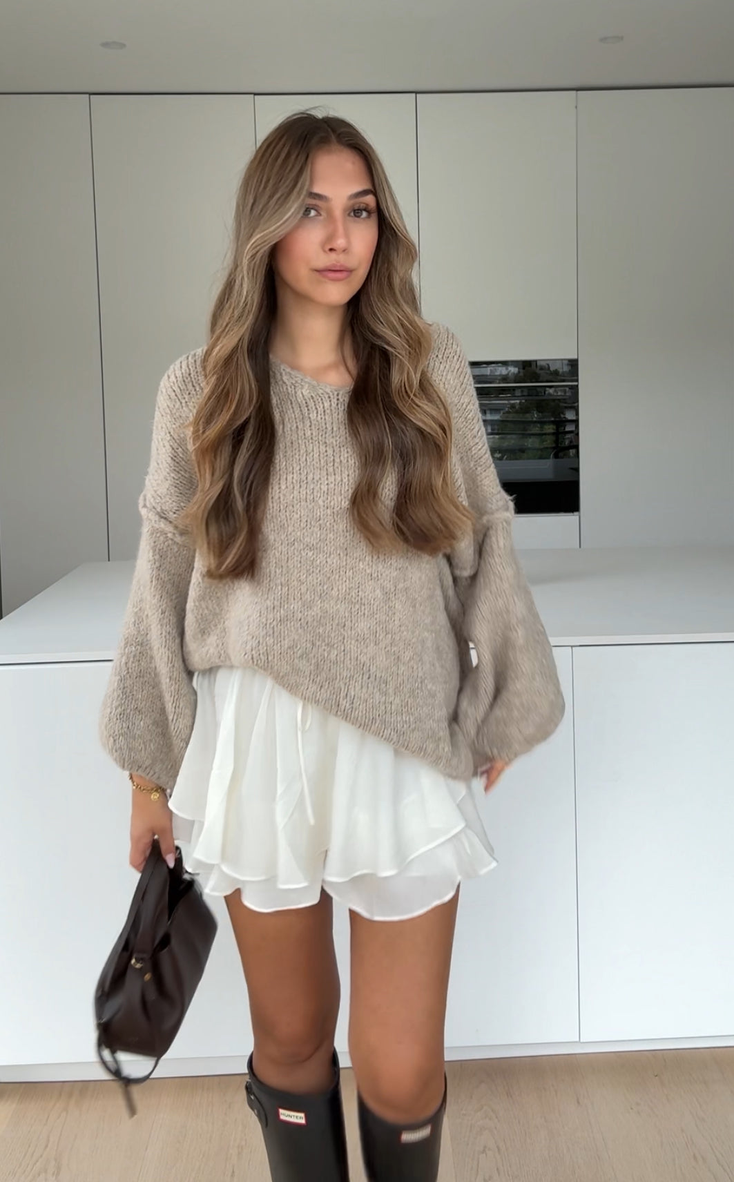 OVERSIZED V-NECK PULLOVER CINNAMON