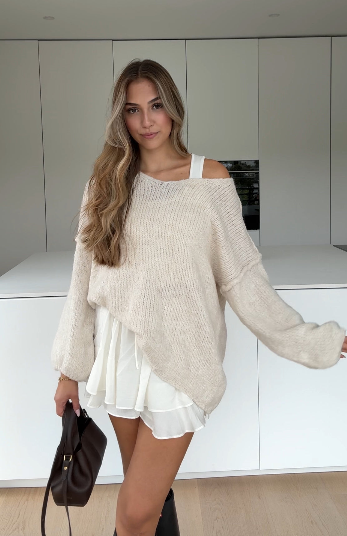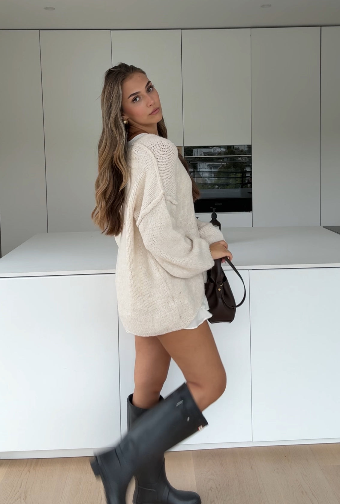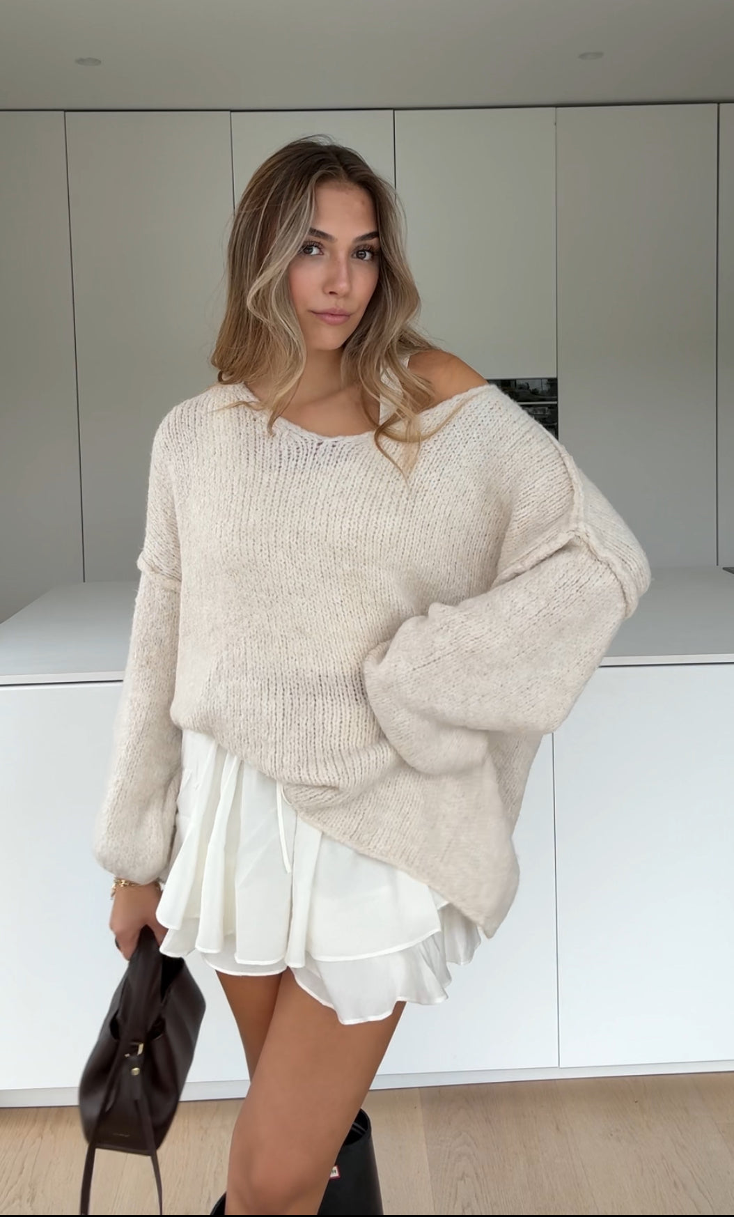 OVERSIZED V-NECK PULLOVER CHOCOLATE