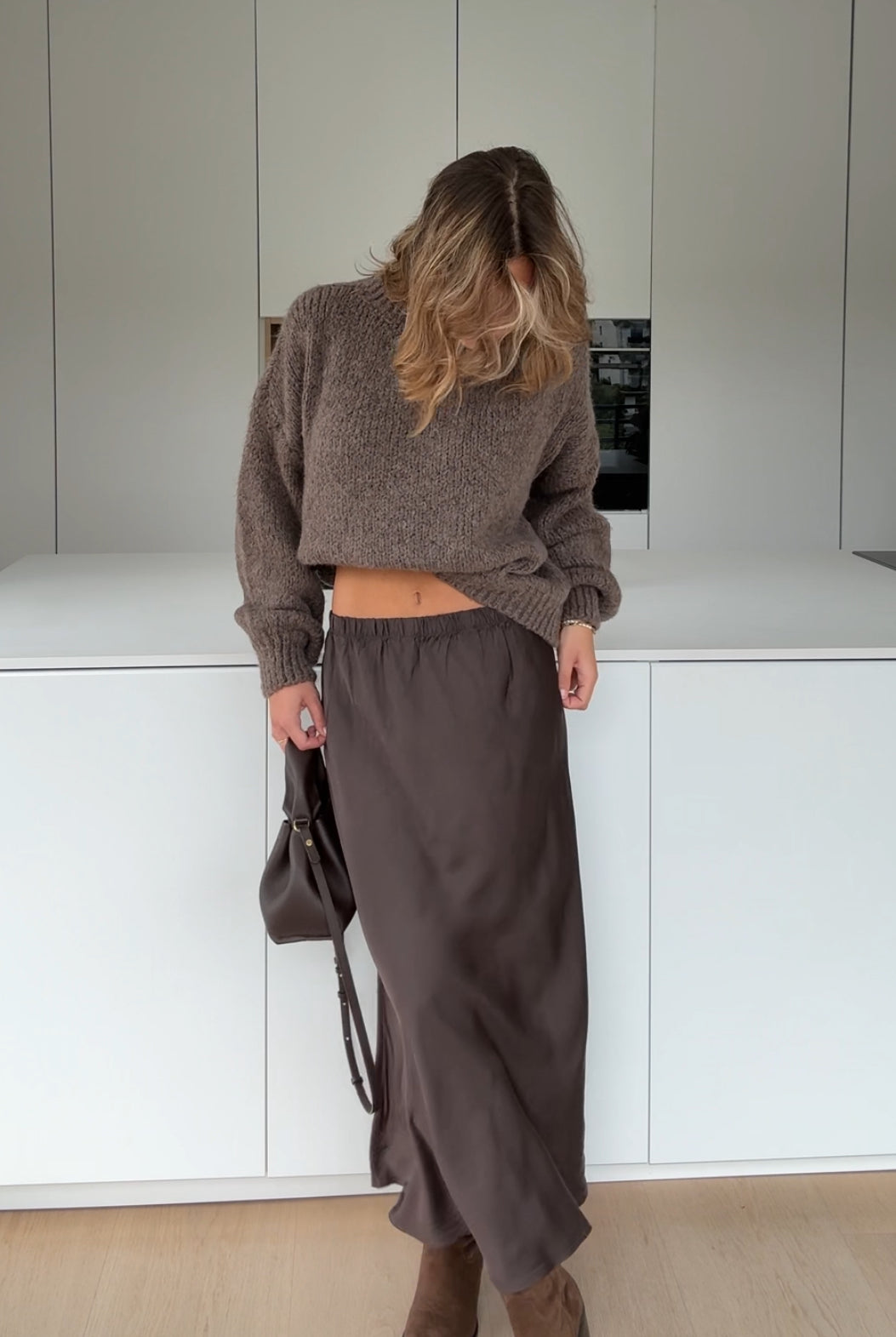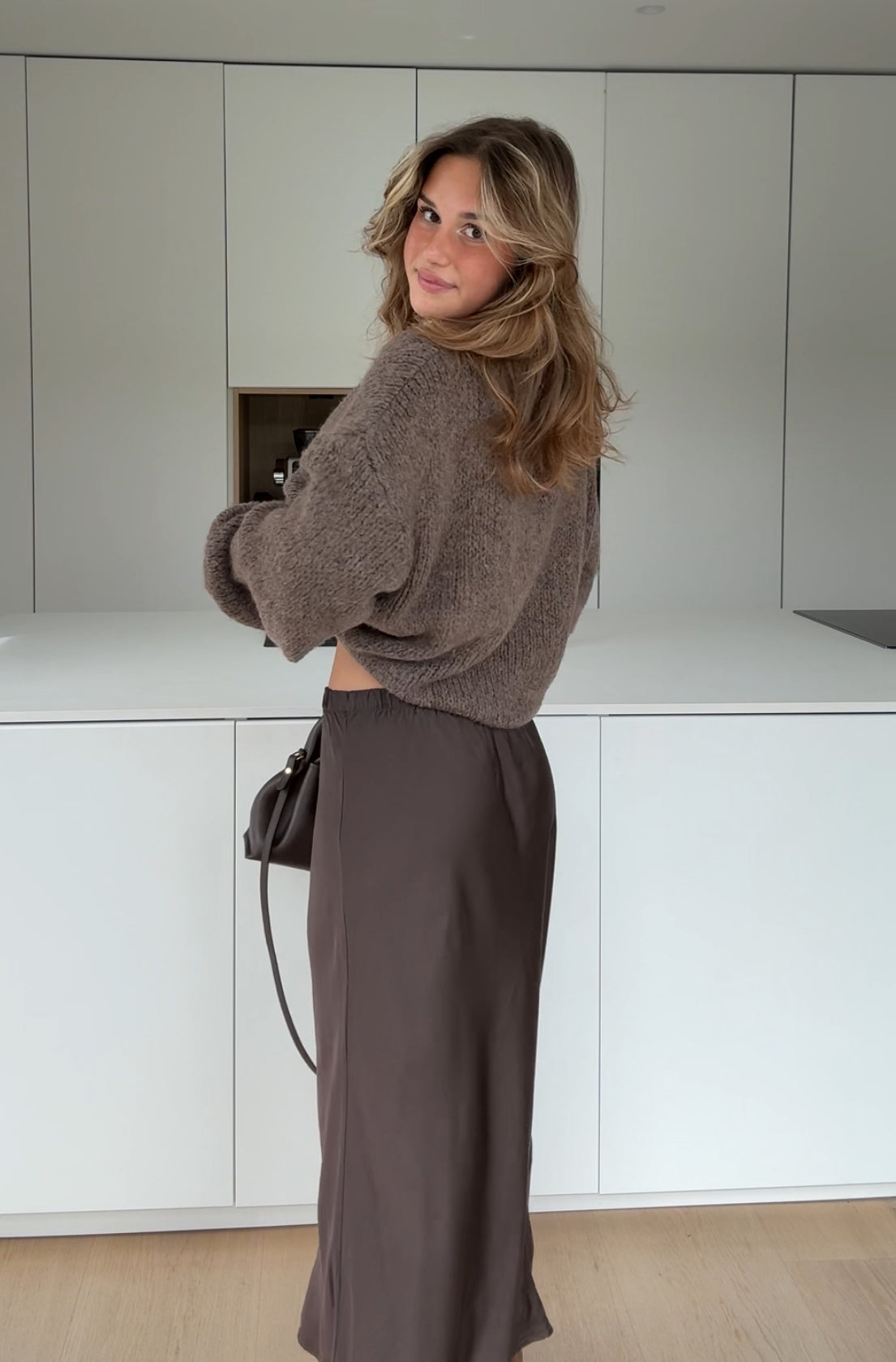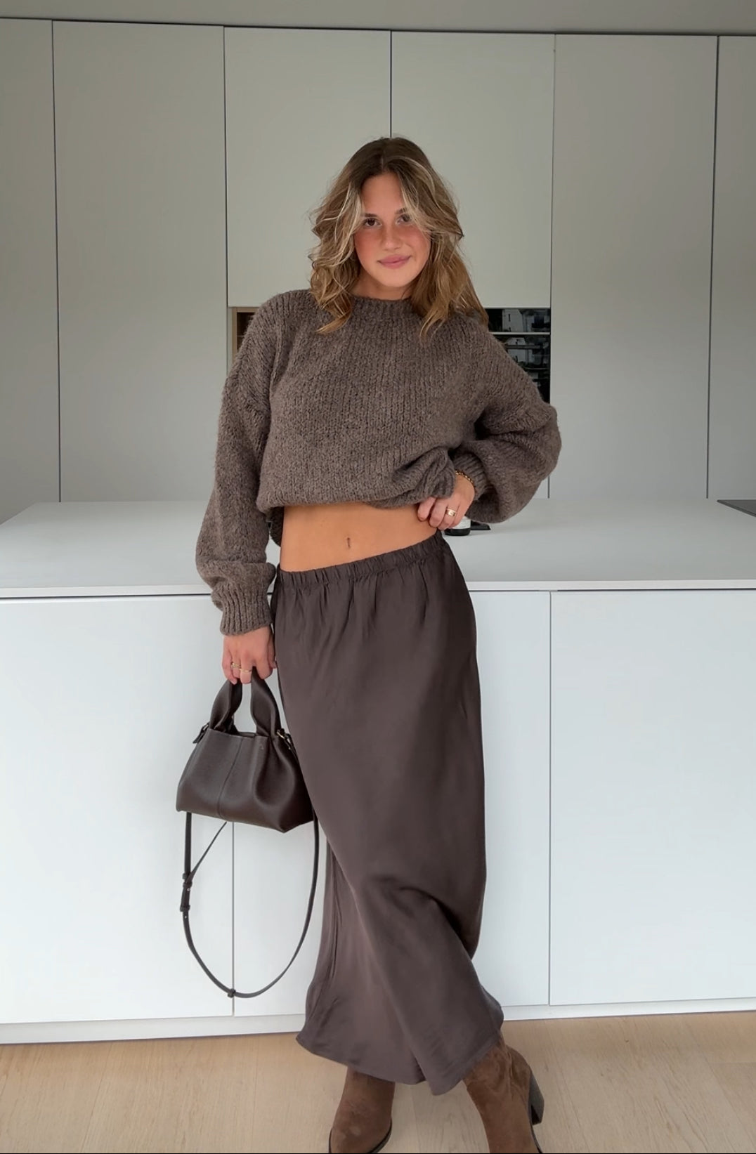 MAXI AVA SATIN SKIRT CHOCOLATE