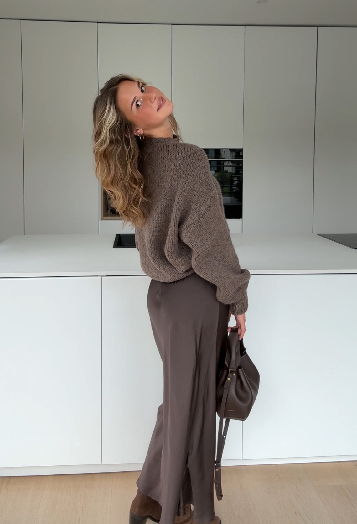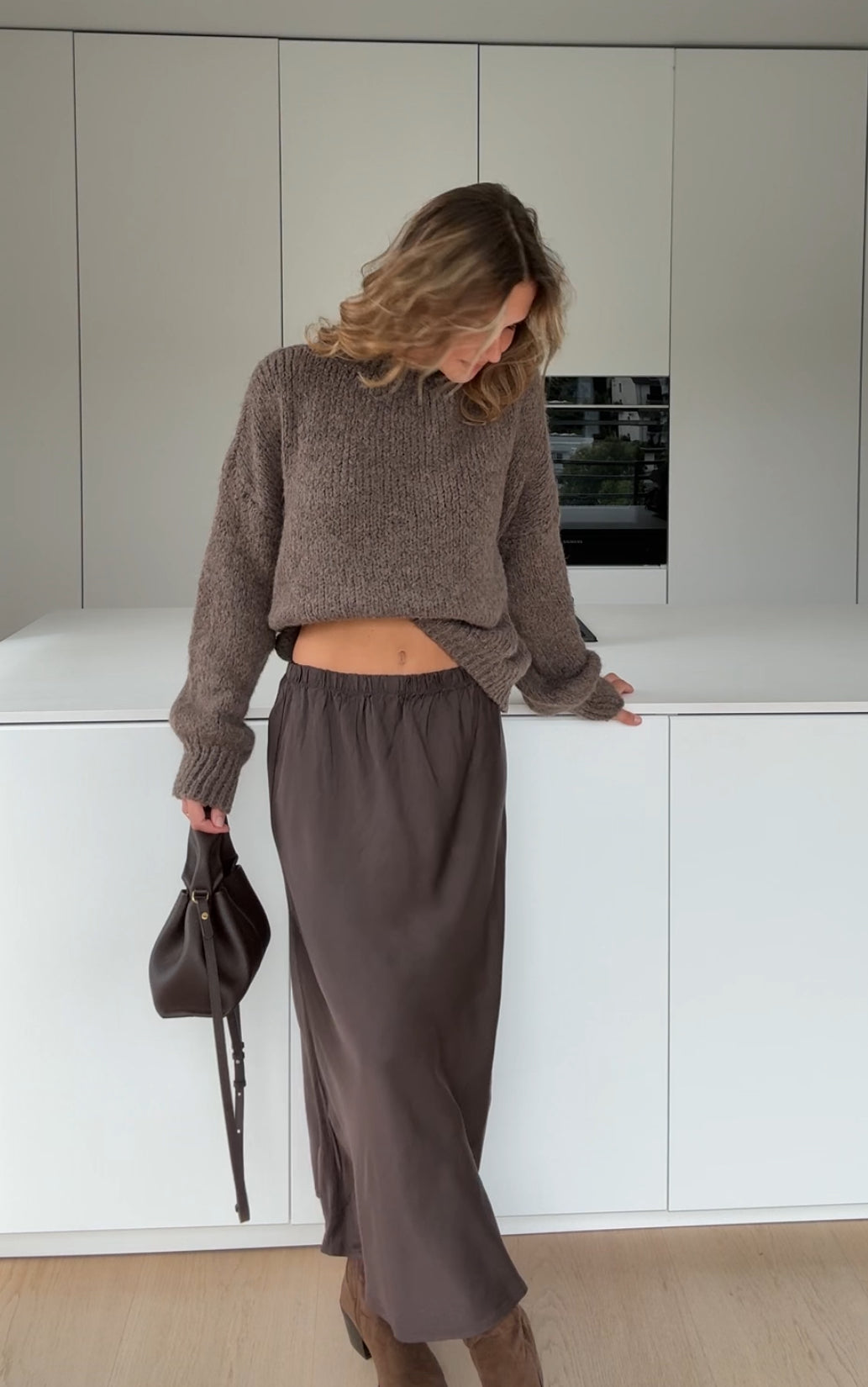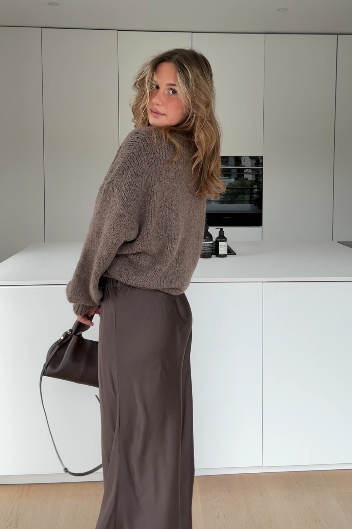 MAXI AVA SATIN SKIRT CHOCOLATE