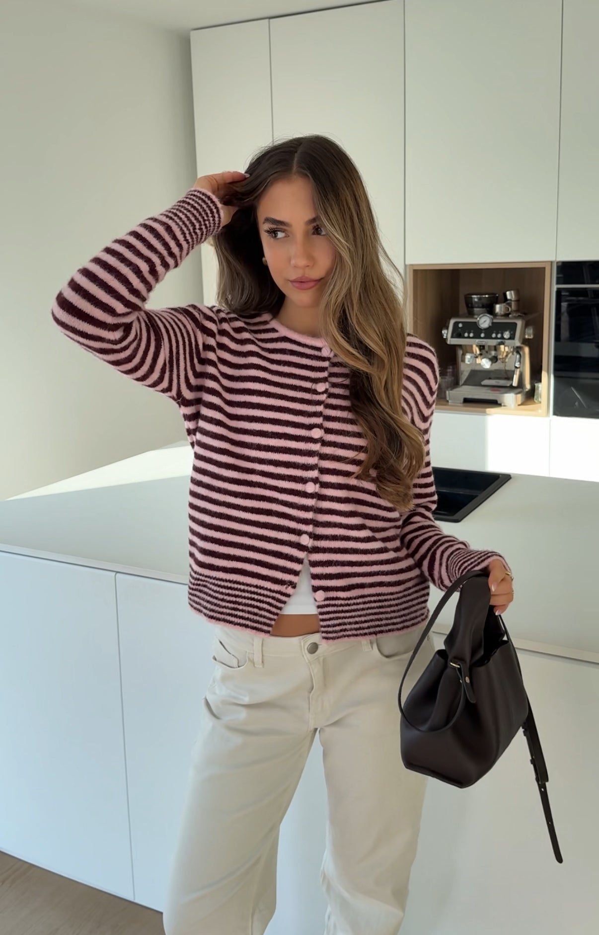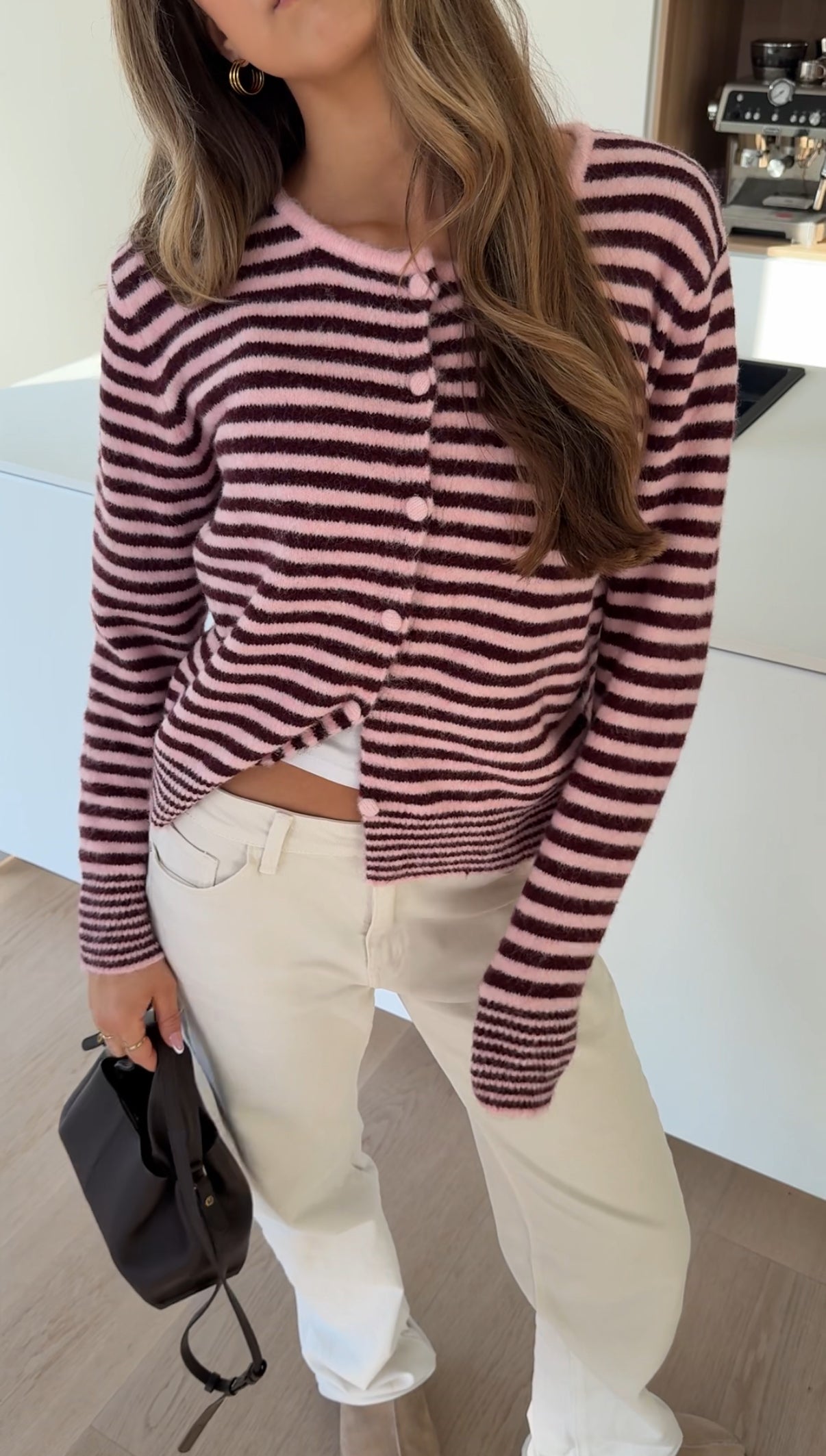 HIGHNECK STRIPE CARDIGAN WINTERBERRY