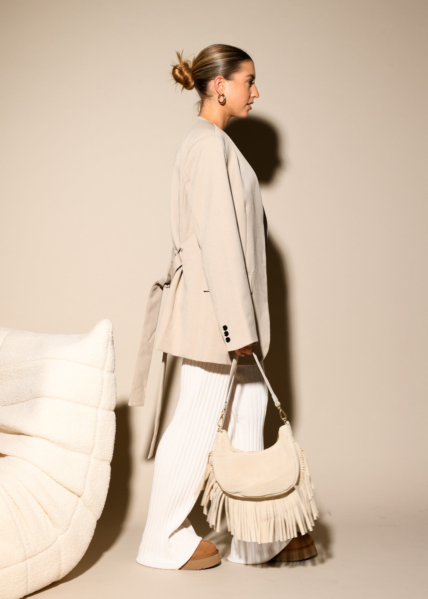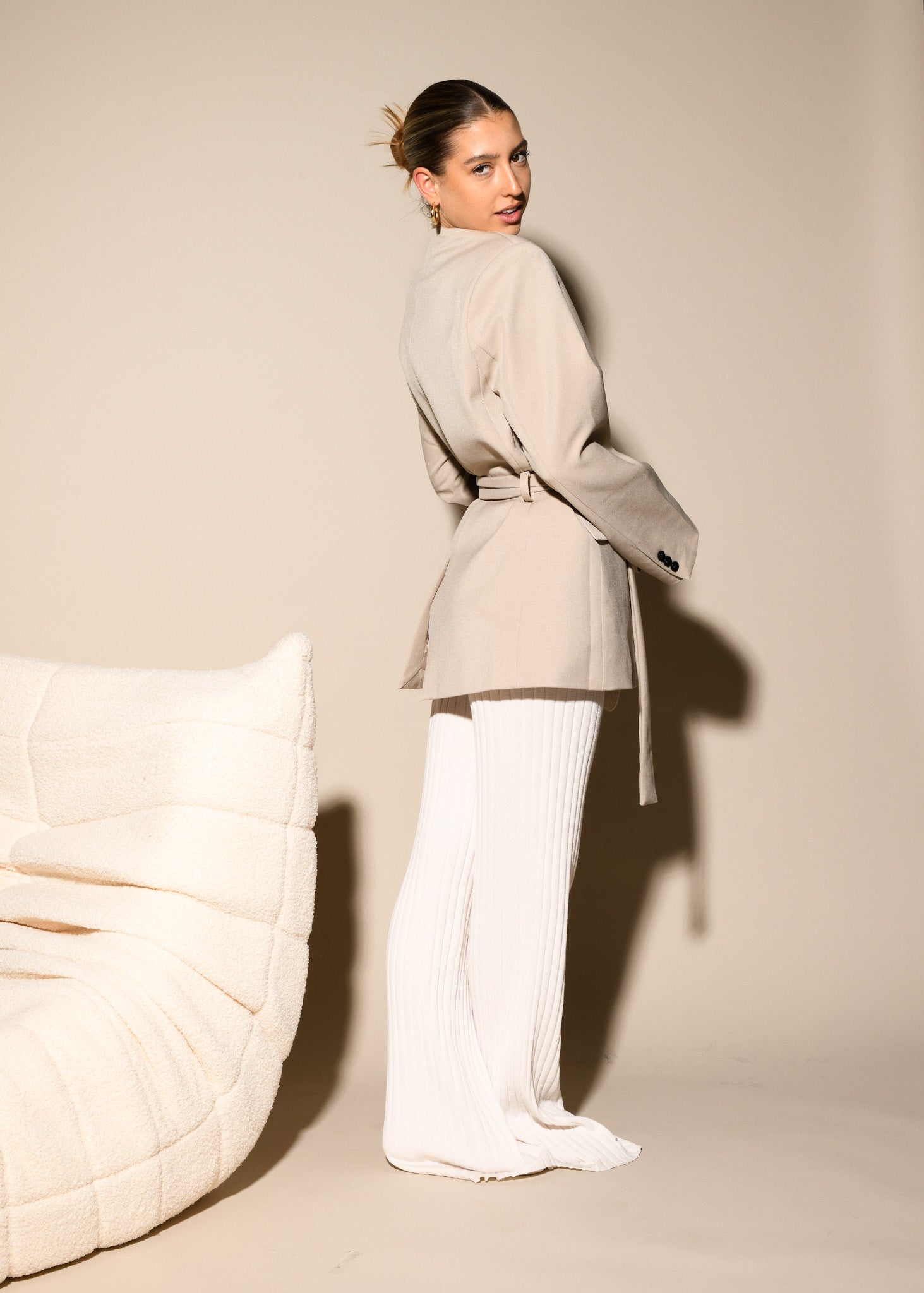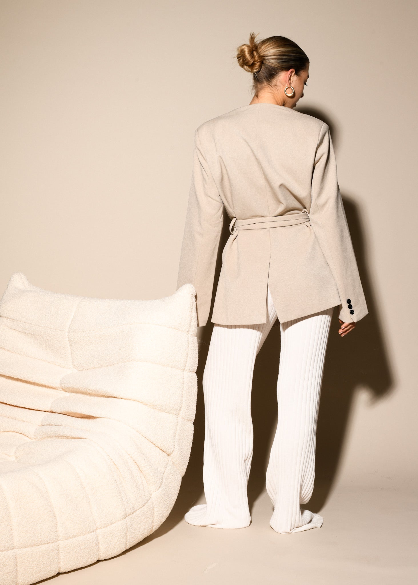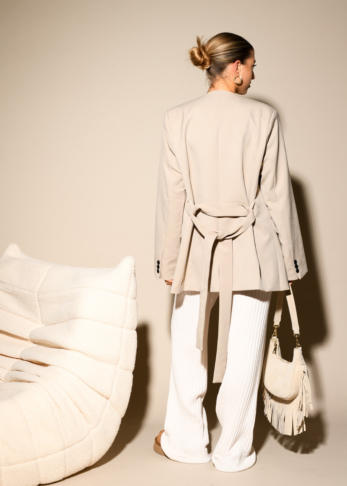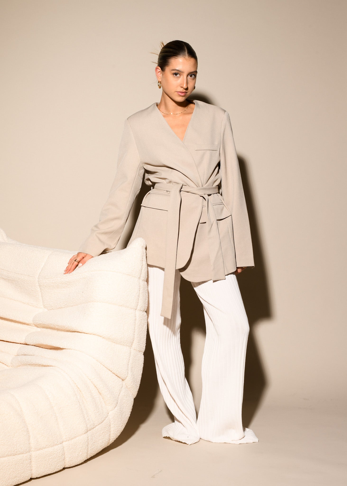 ARTIKELDETAILS: schicker Blazer mit Gürtel in der Farbe beige