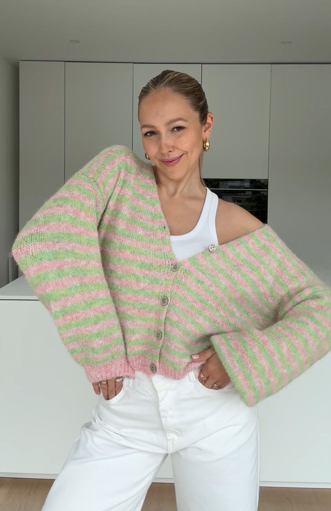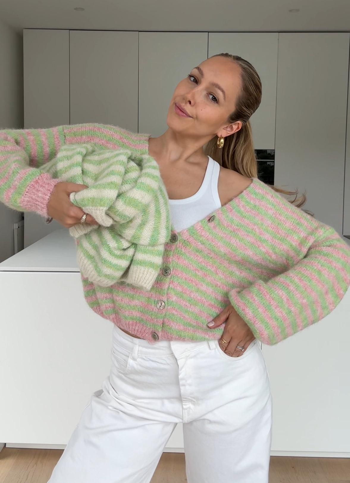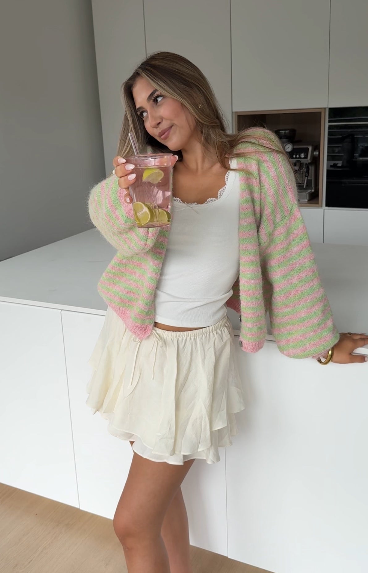 STRIPED COLOR CARDIGAN LIMETTE
