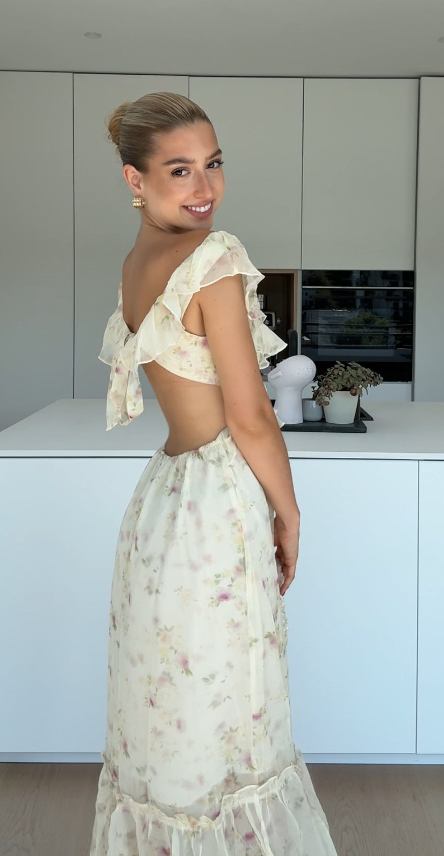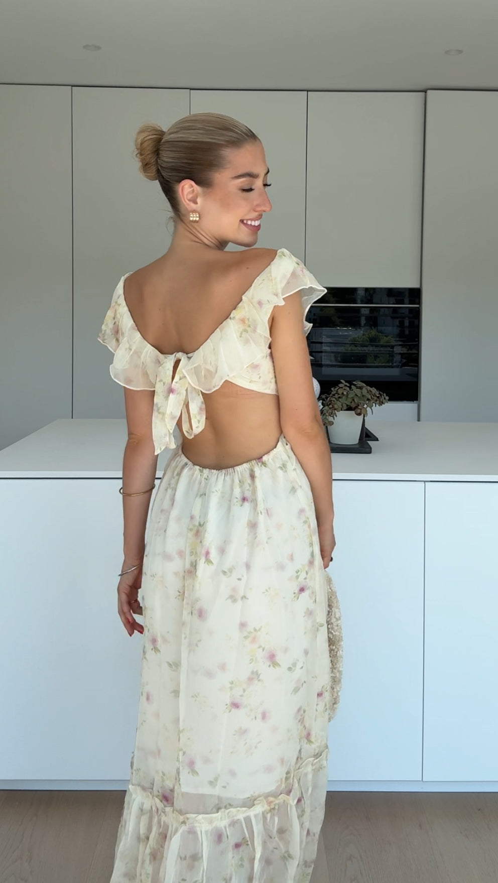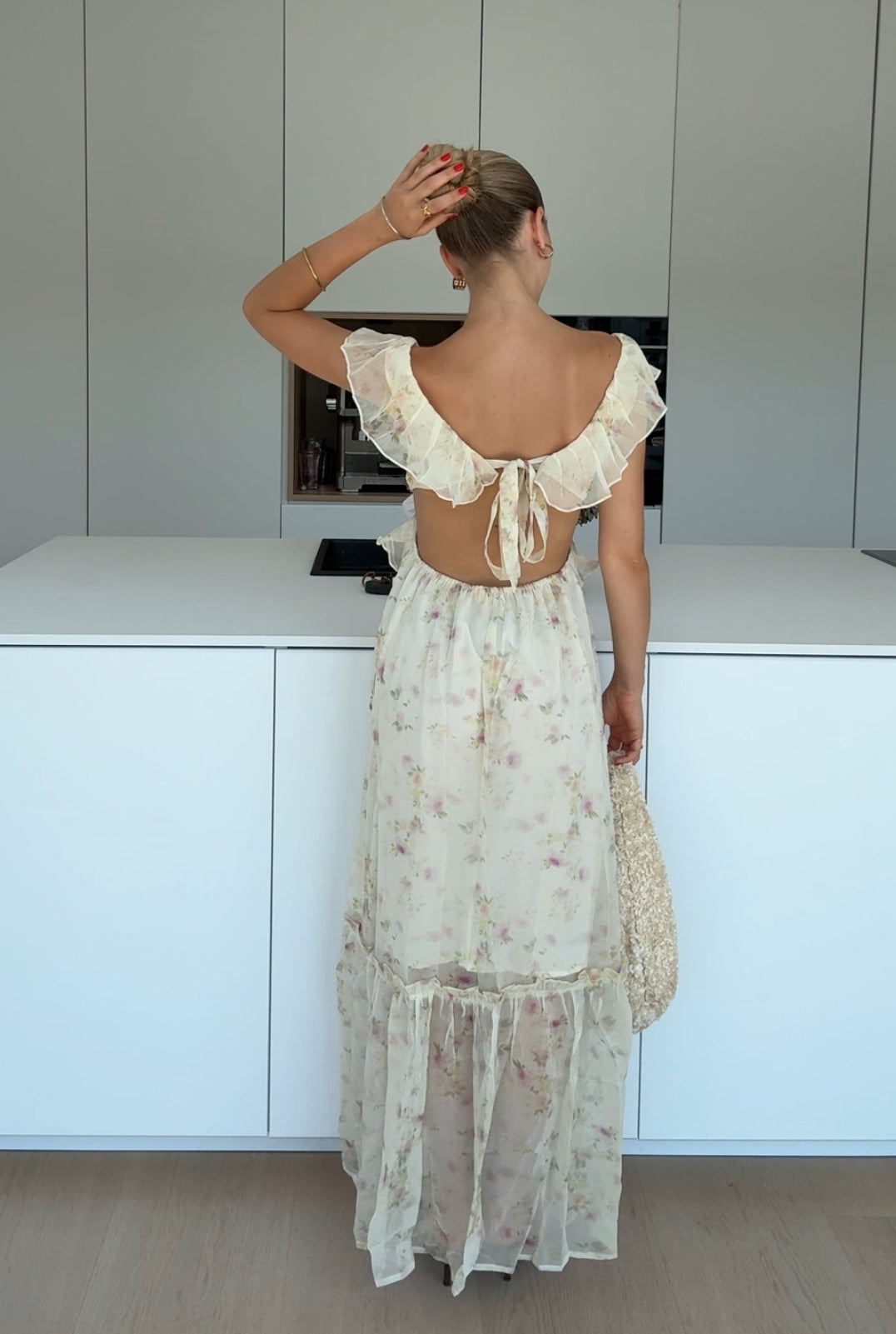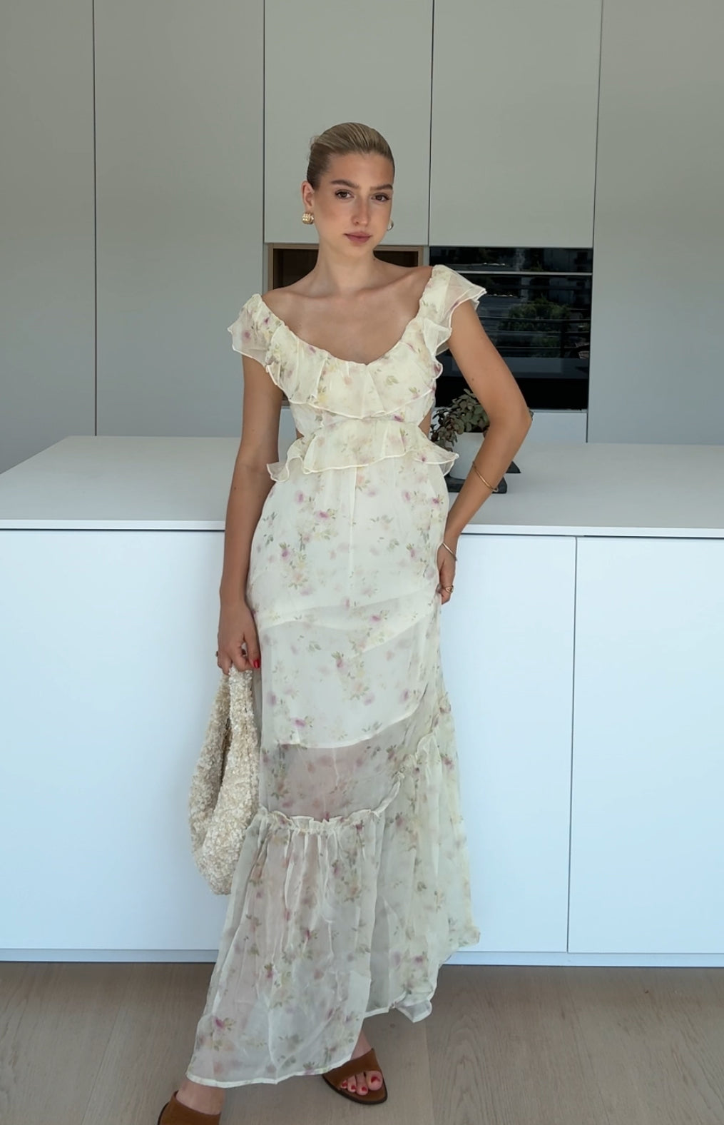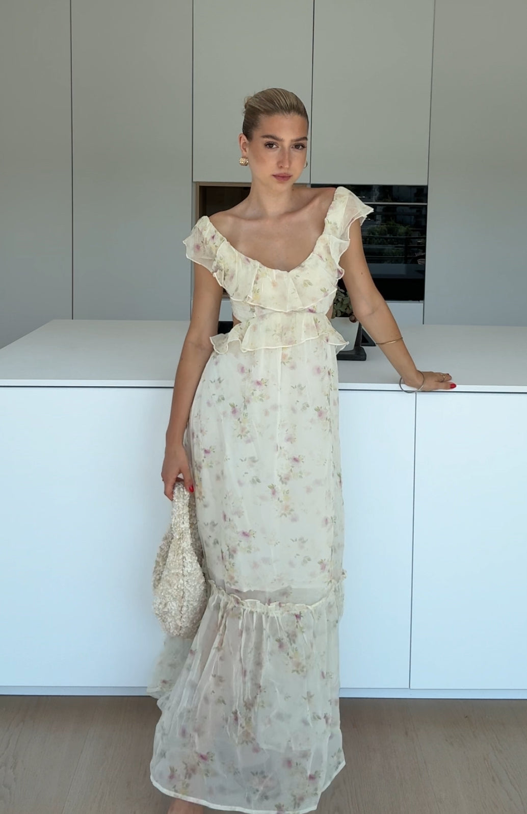 MAXI FLOWER DRESS LIGHT CREAM