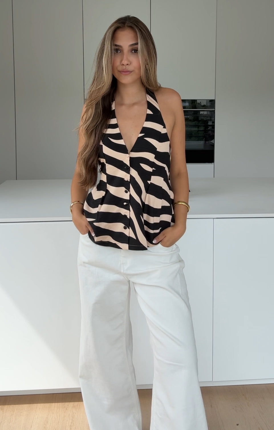 SUIT NECKHOLDER TOP ZEBRA