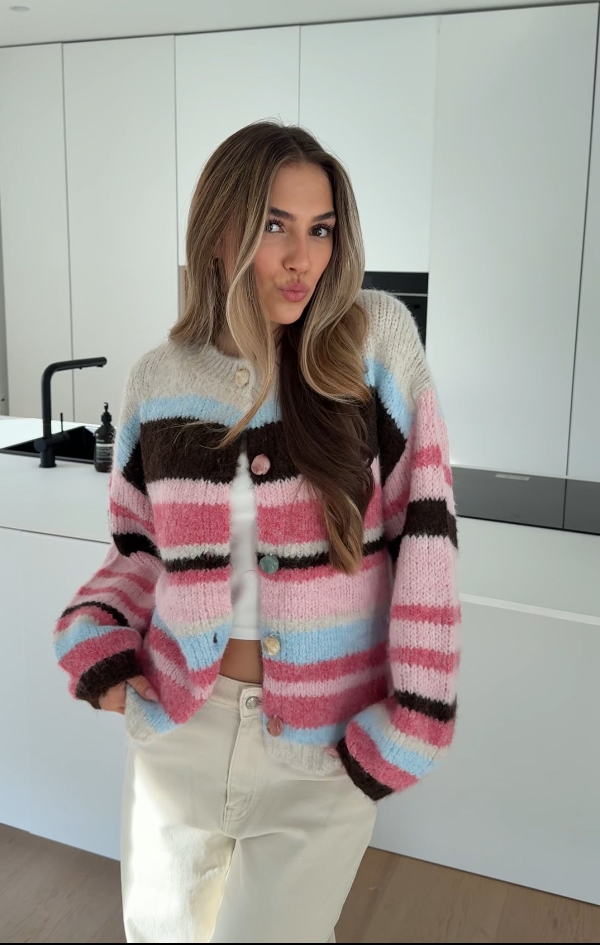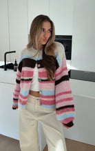 CHUNKY STRIPED CARDIGAN BERRY